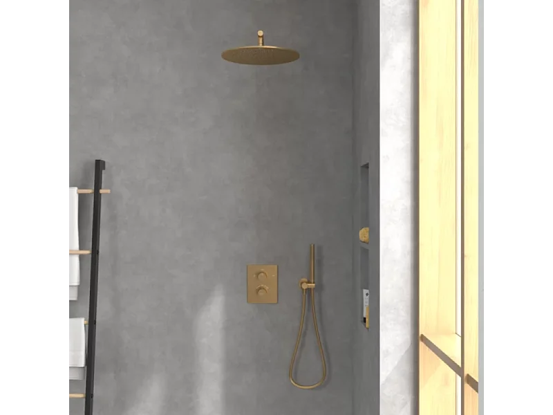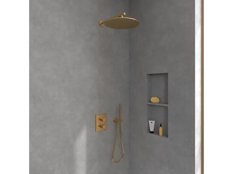 Façade thermostatique 2 voies VILLEROY ET BOCH Universal rectangle Or brossé + corps encastré