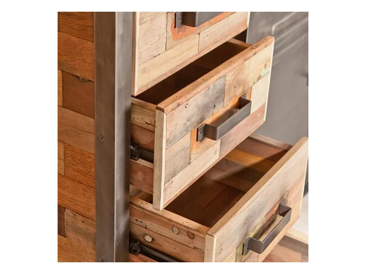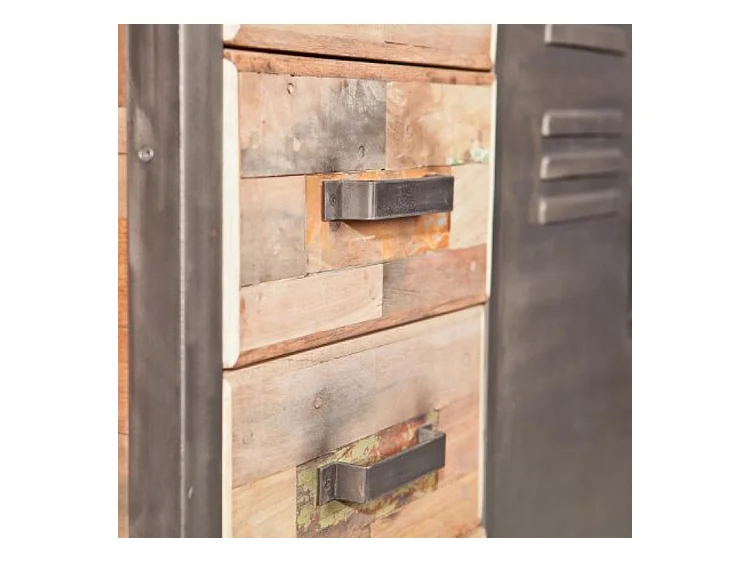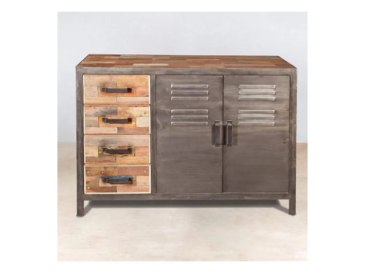 Factory buffet en bois de bateau recyclé - 2 Portes - 4 Tiroirs - Portes en métal noir - Style Industriel - L120