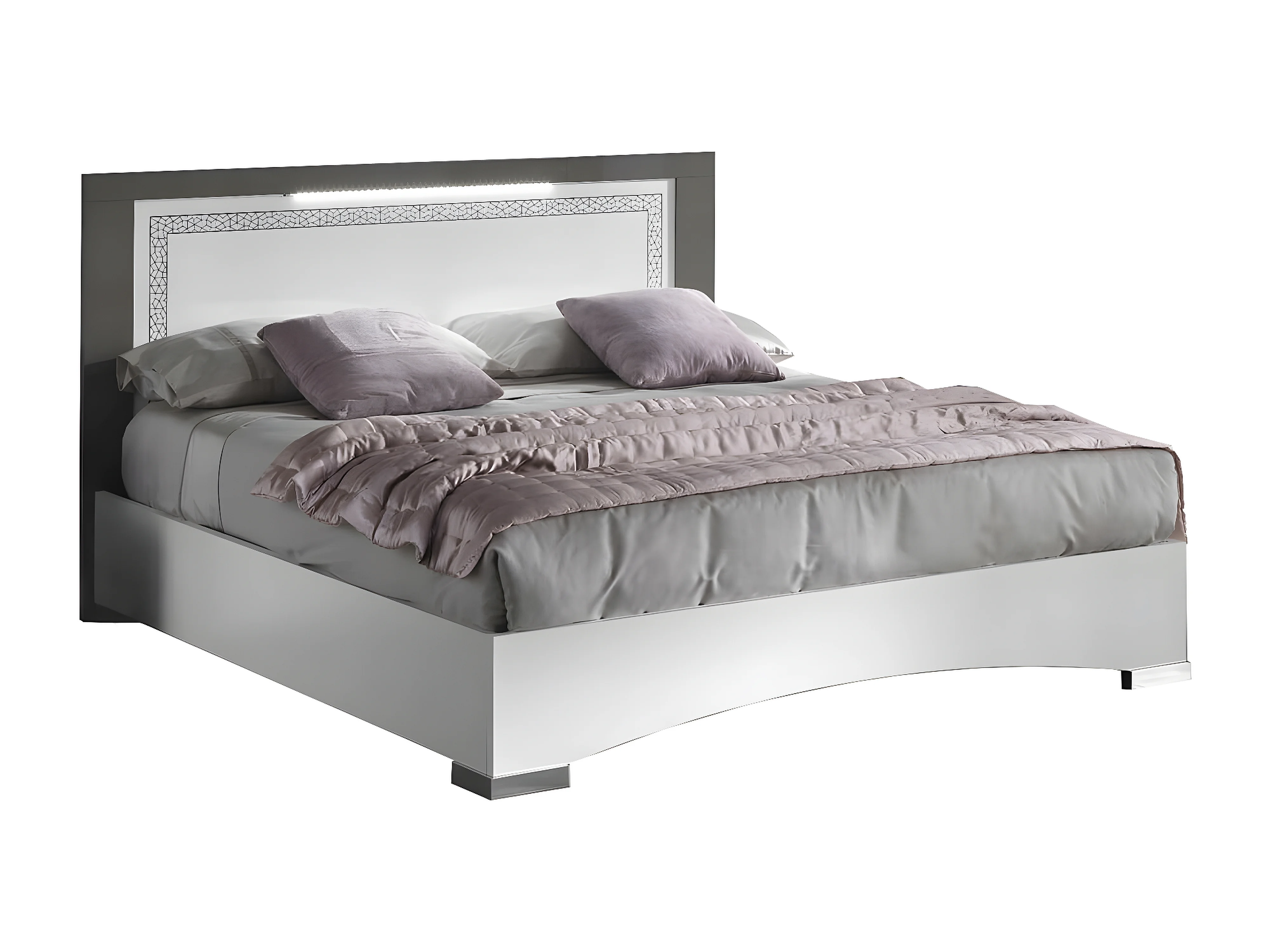 FADILY - Lit 140x190cm Laquée Blanc avec Eclairage Led