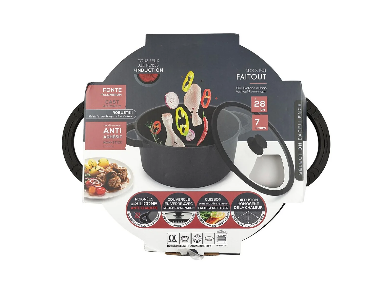 Faitout en Fonte Aluminium 28cm avec Couvercle en Verre et Aeration - SULON