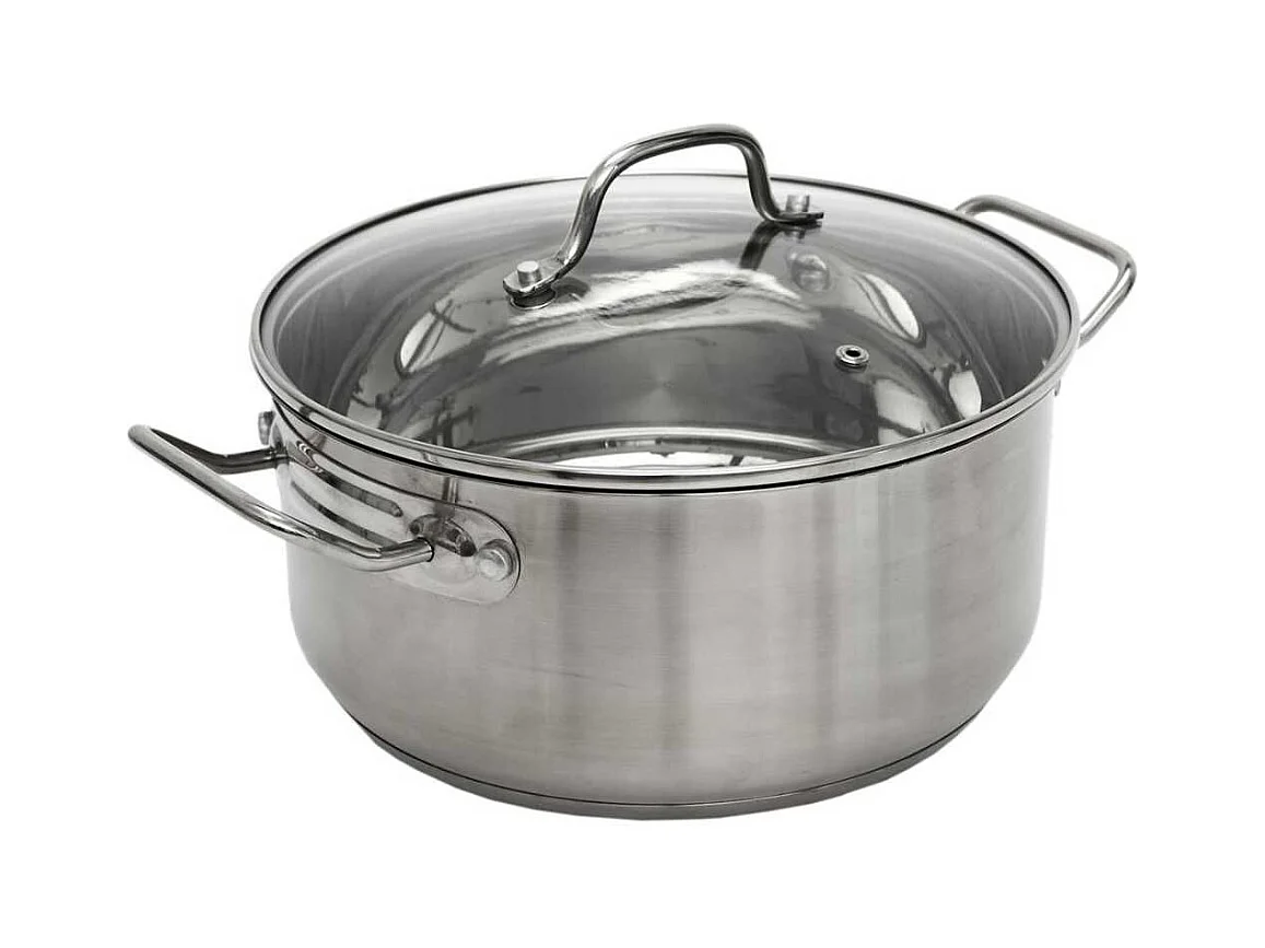 Faitout en Inox avec Couvercle en Verre 24cm - Inox, Tous Feux, Lave-Vaisselle, Cuisson Homogène - TIVON