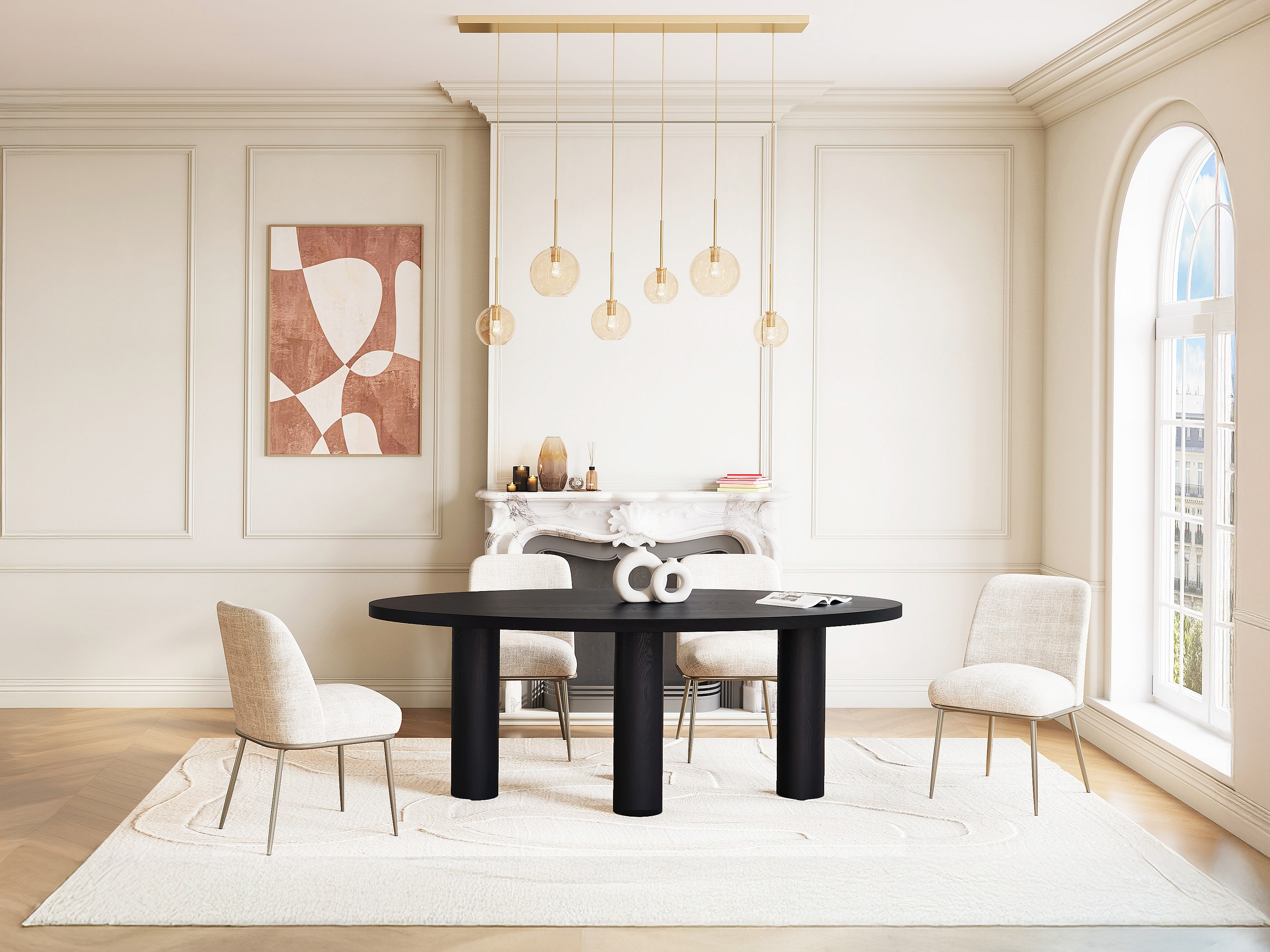 Table à manger 8 personnes placage frêne - Noir - FALYN