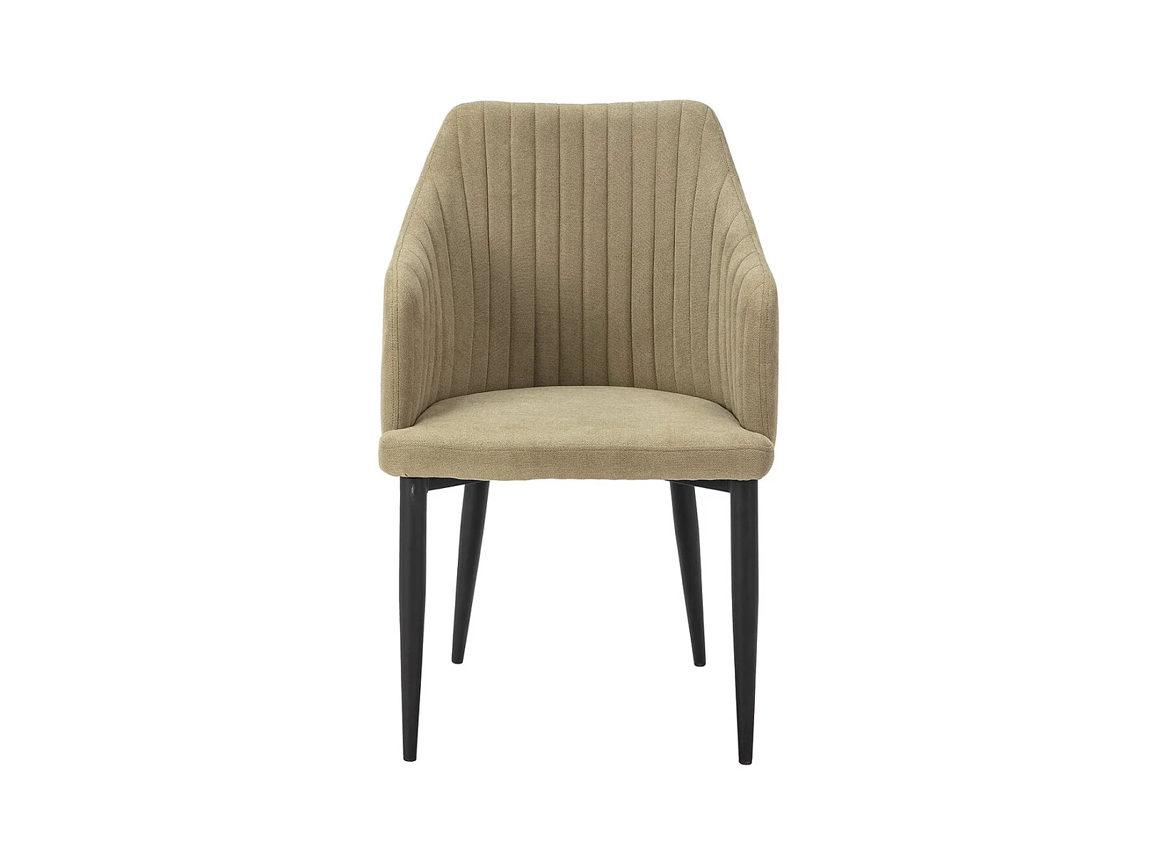 FASCA - Lot de 4 Fauteuils Tissu Vert Surpiqures Verticales Pieds Métal Noir
