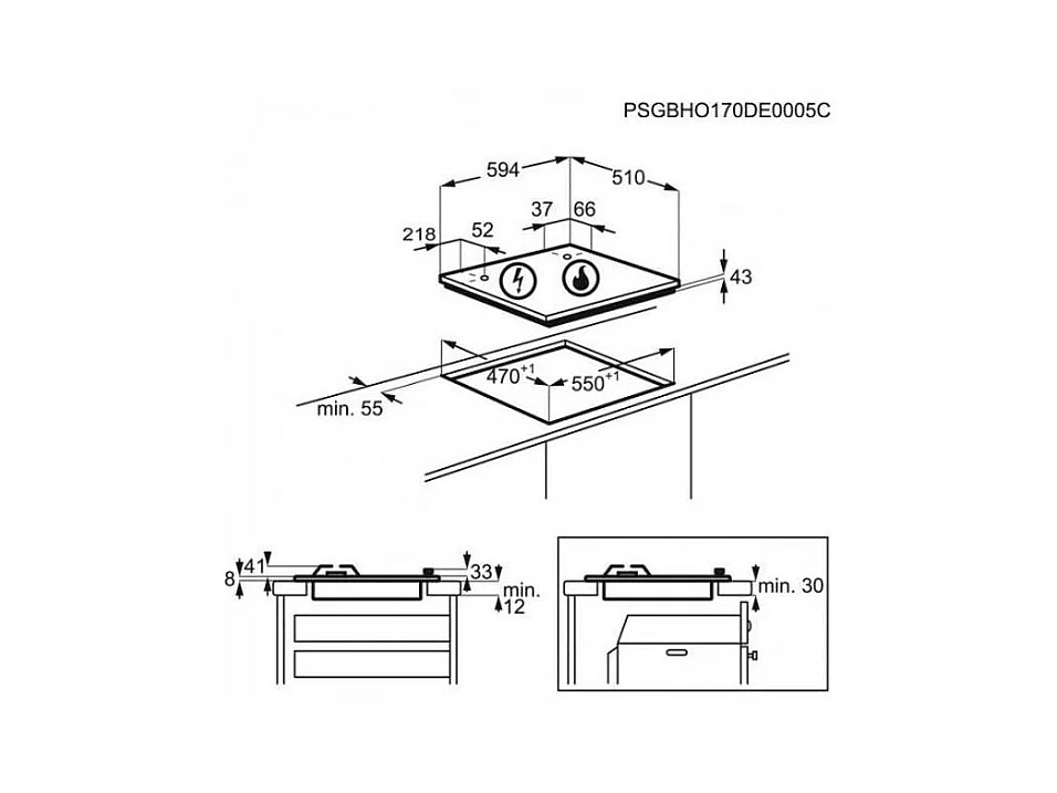 Plaque gaz FAURE 8000W 59.4cm, FGH62414WA