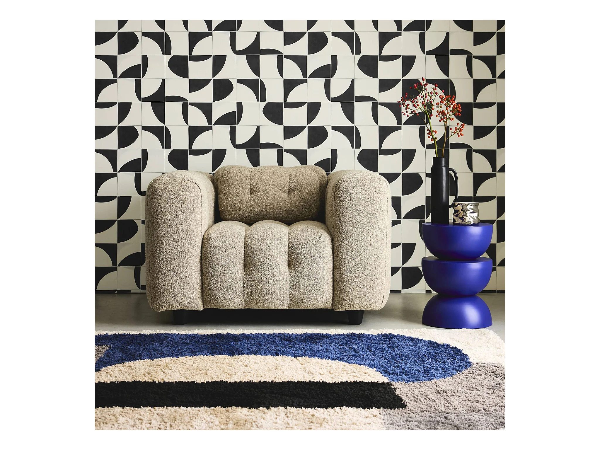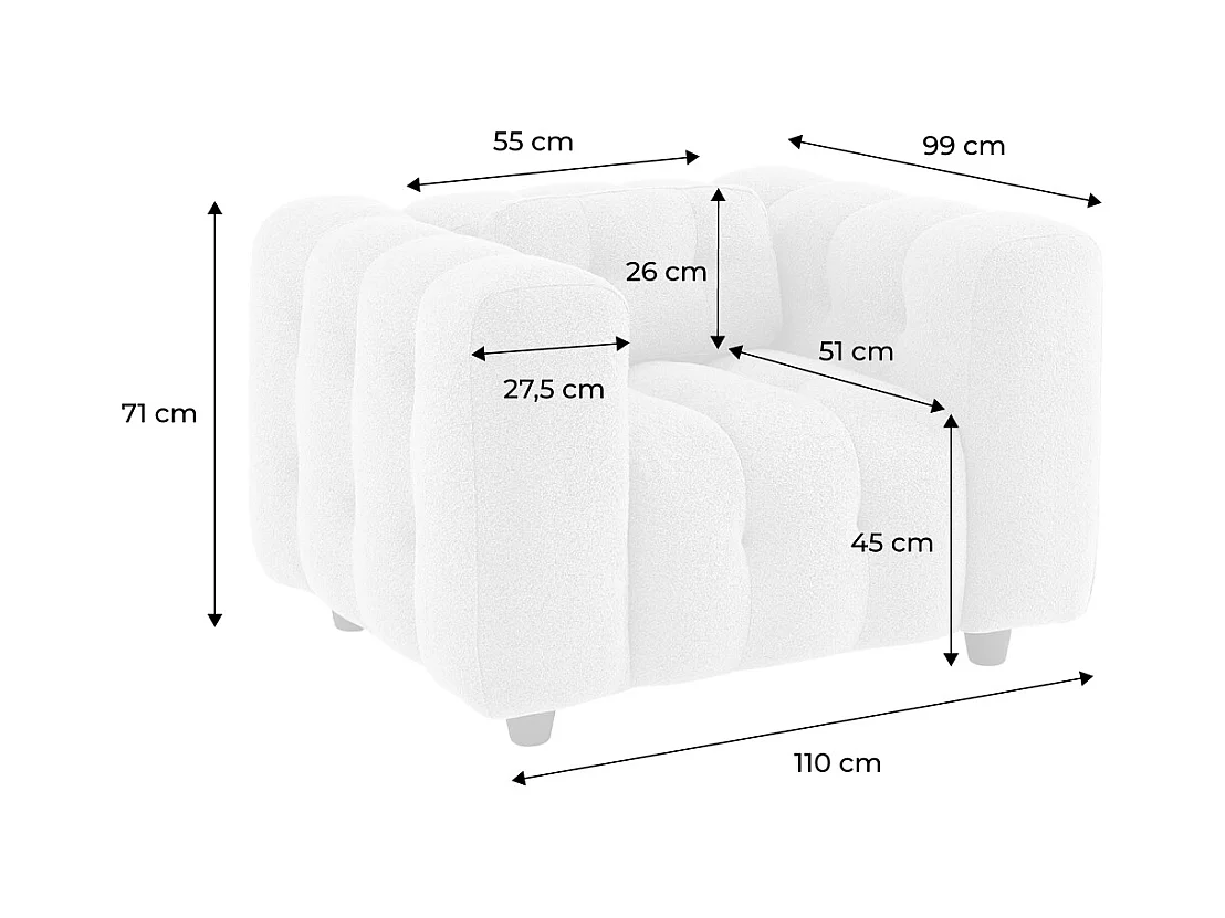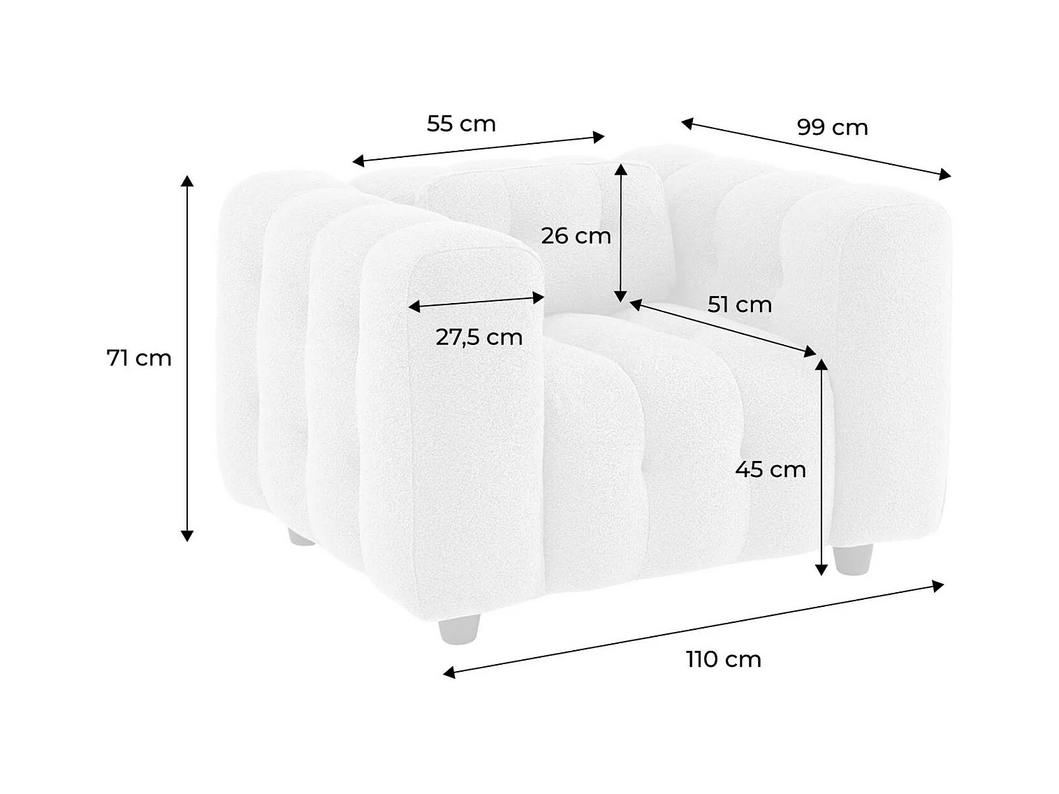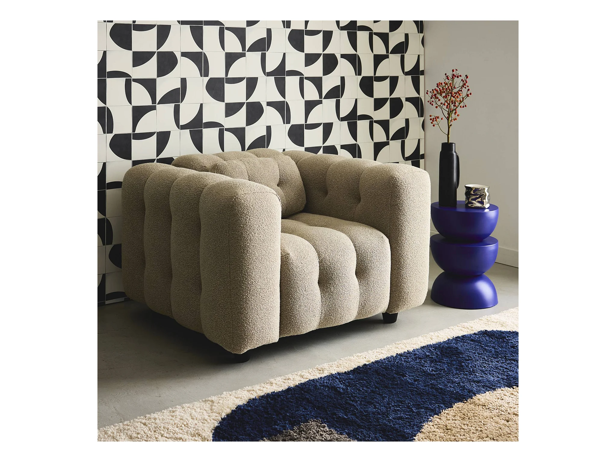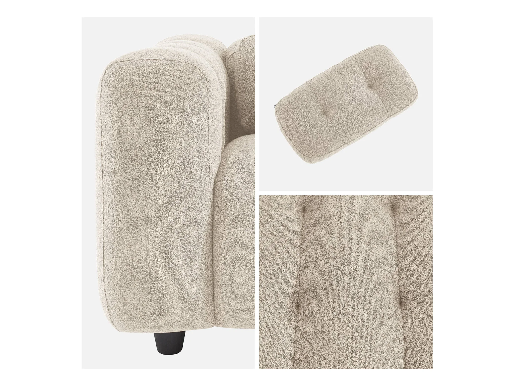Fauteuil 1 place en bouclette texturée capitonné beige structure bois d'eucalyptus et contreplaqué