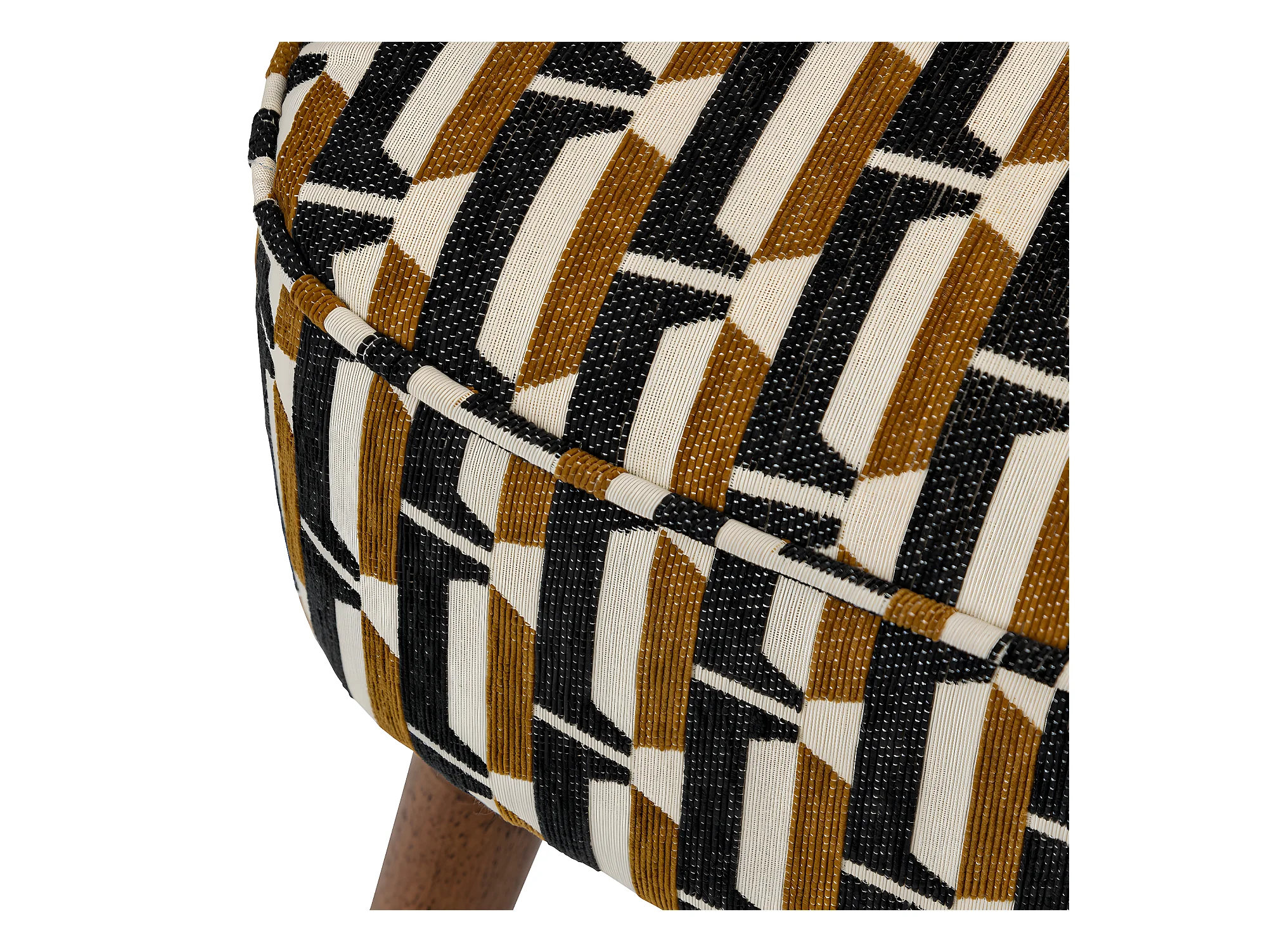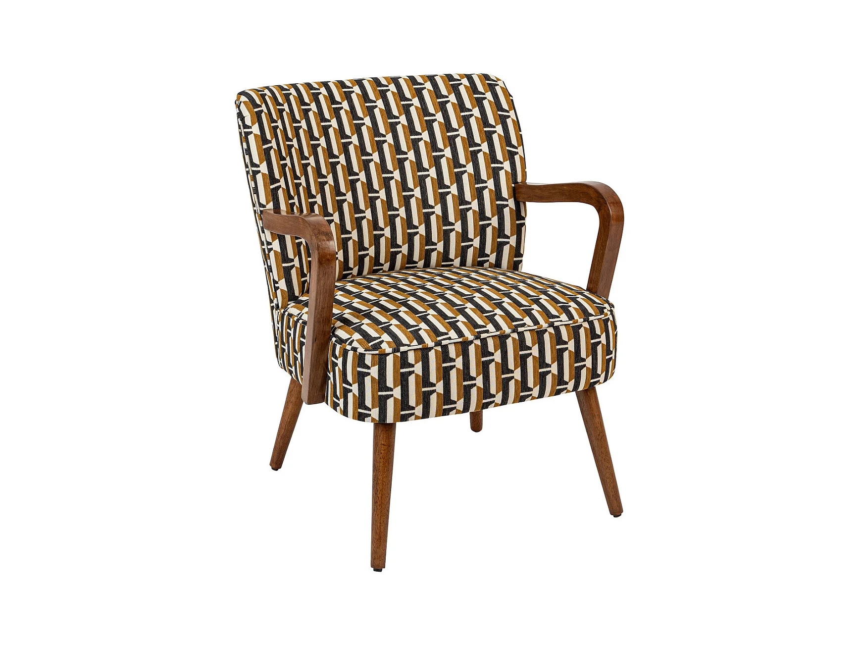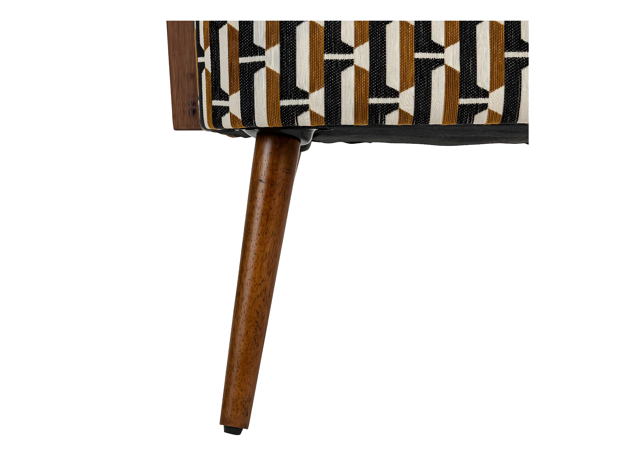 Fauteuil à accoudoirs en Bois et tissu chenille Noir, Jaune ocre et Blanc