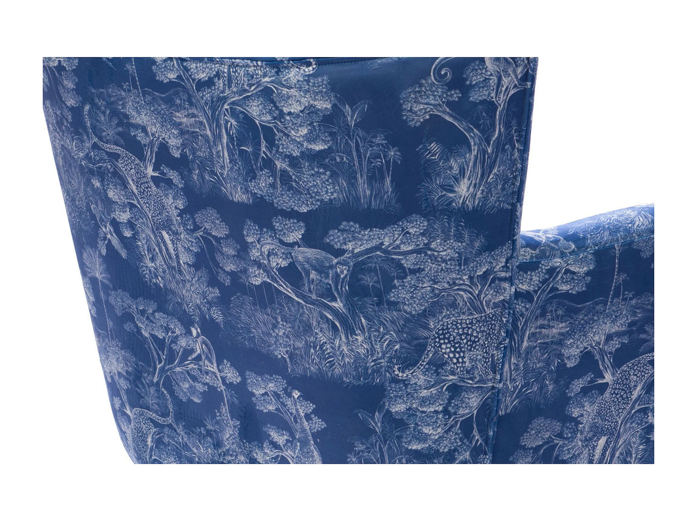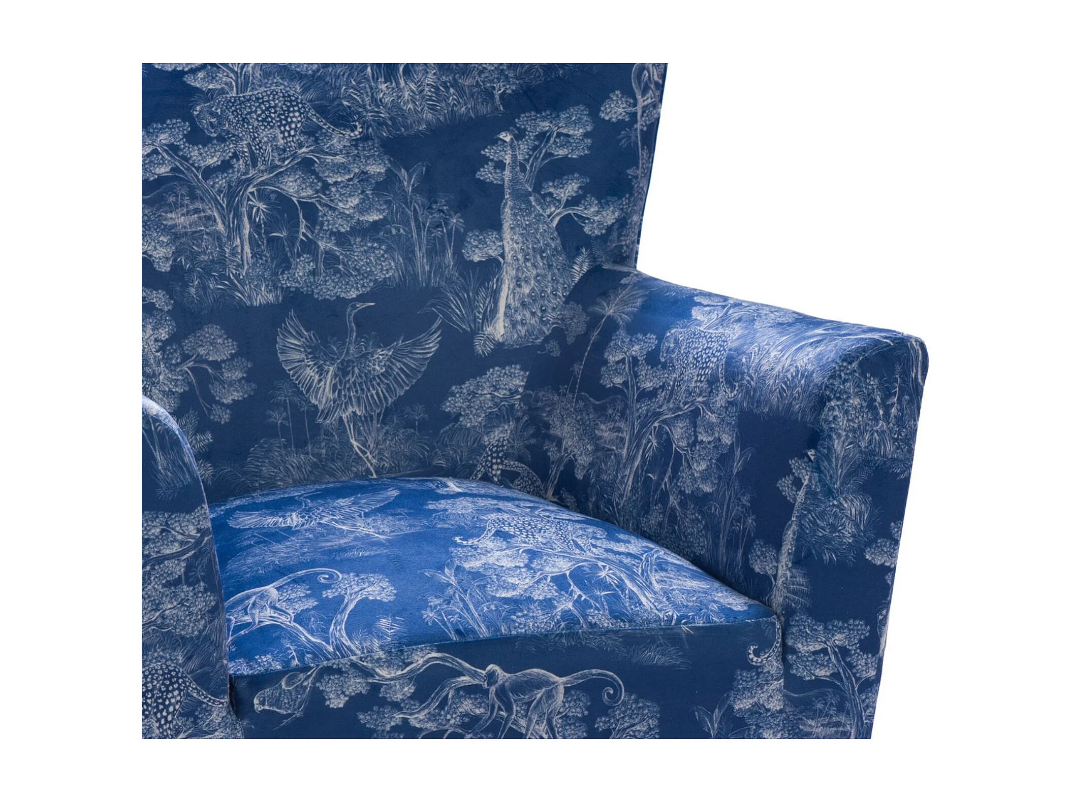 Fauteuil à accoudoirs en tissu peau de pêche bleu à motifs - HERON