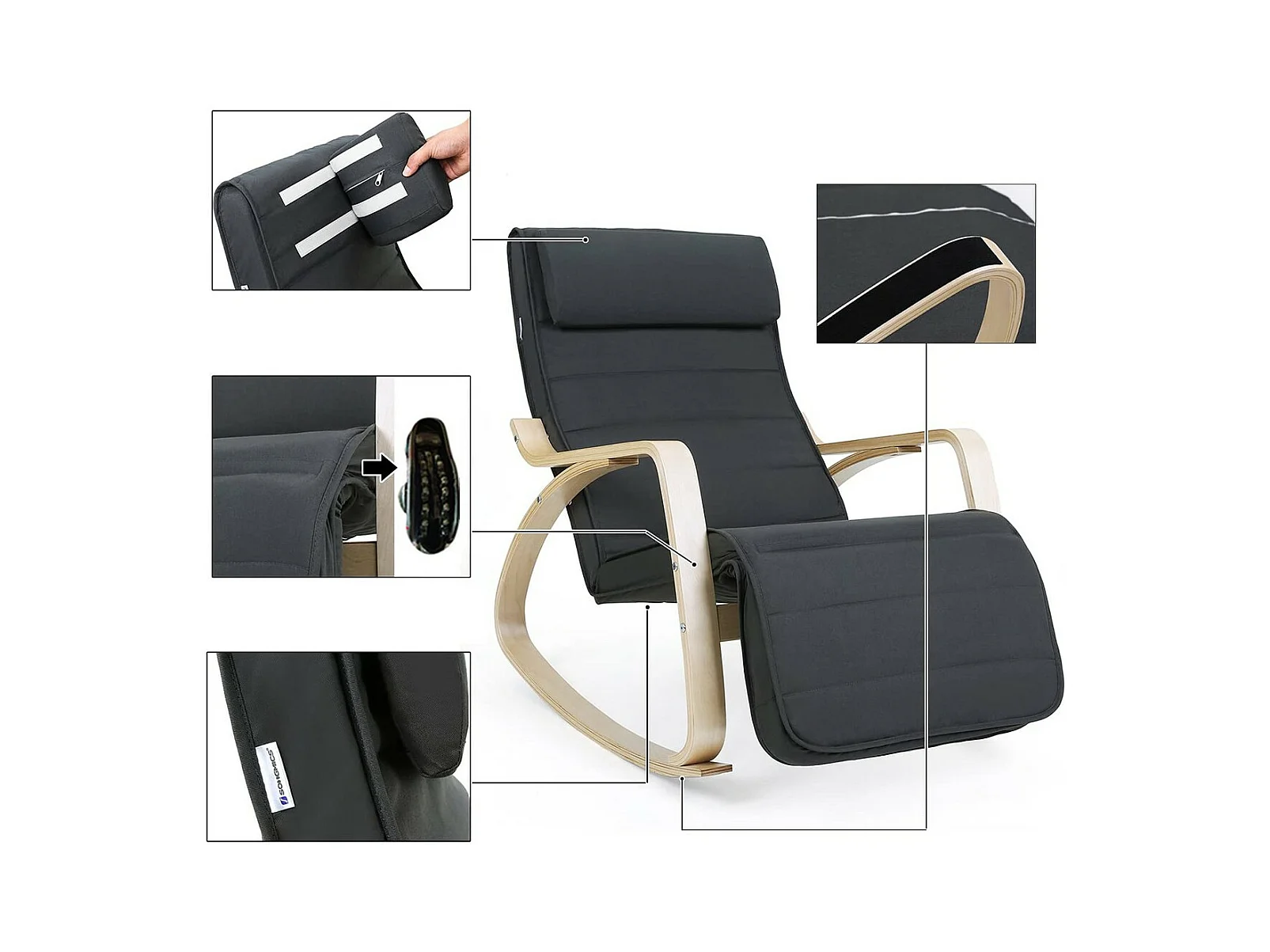 Fauteuil à bascule avec accoudoirs et repose-pieds 5 positions - L55 x H91 cm