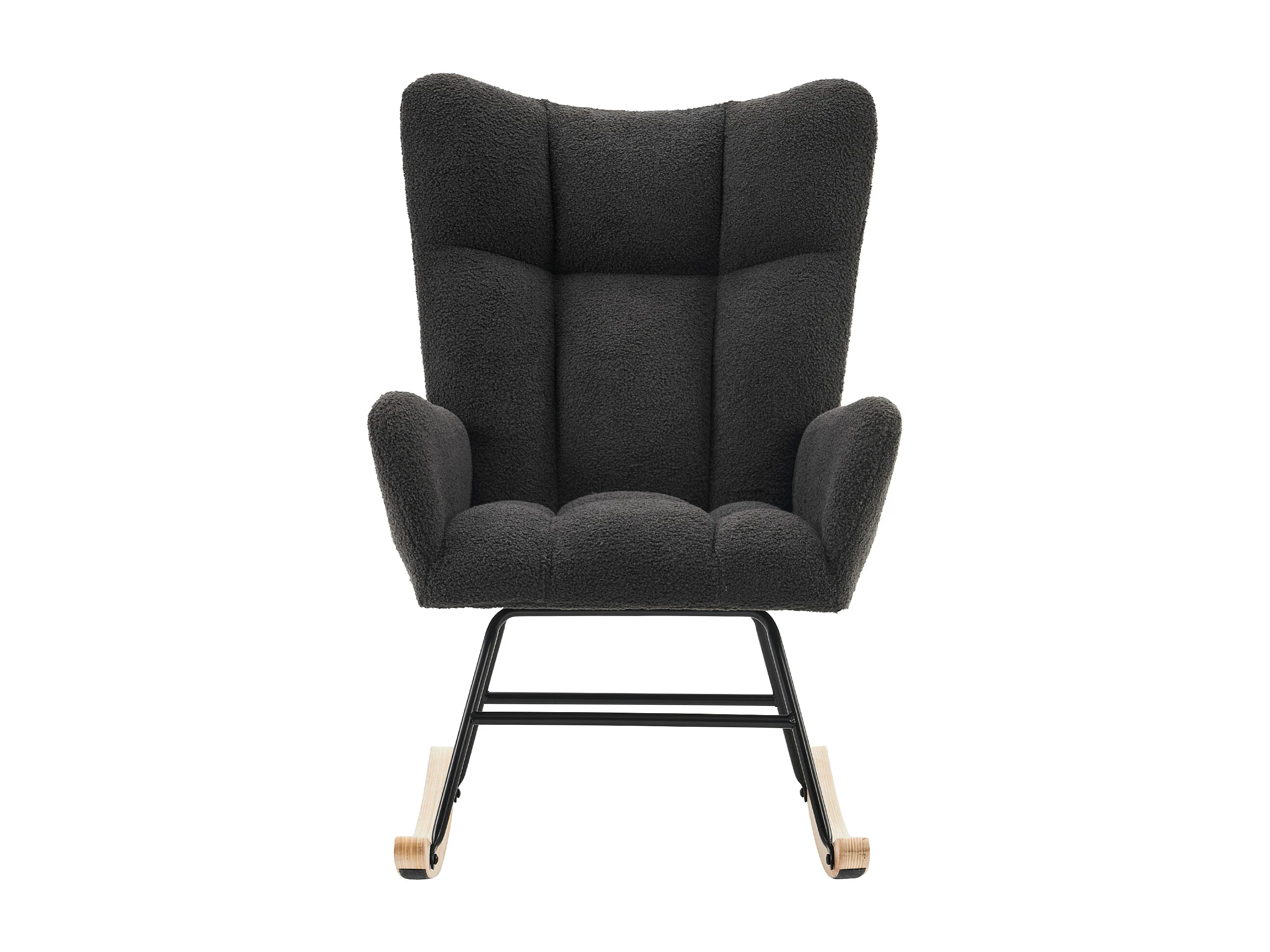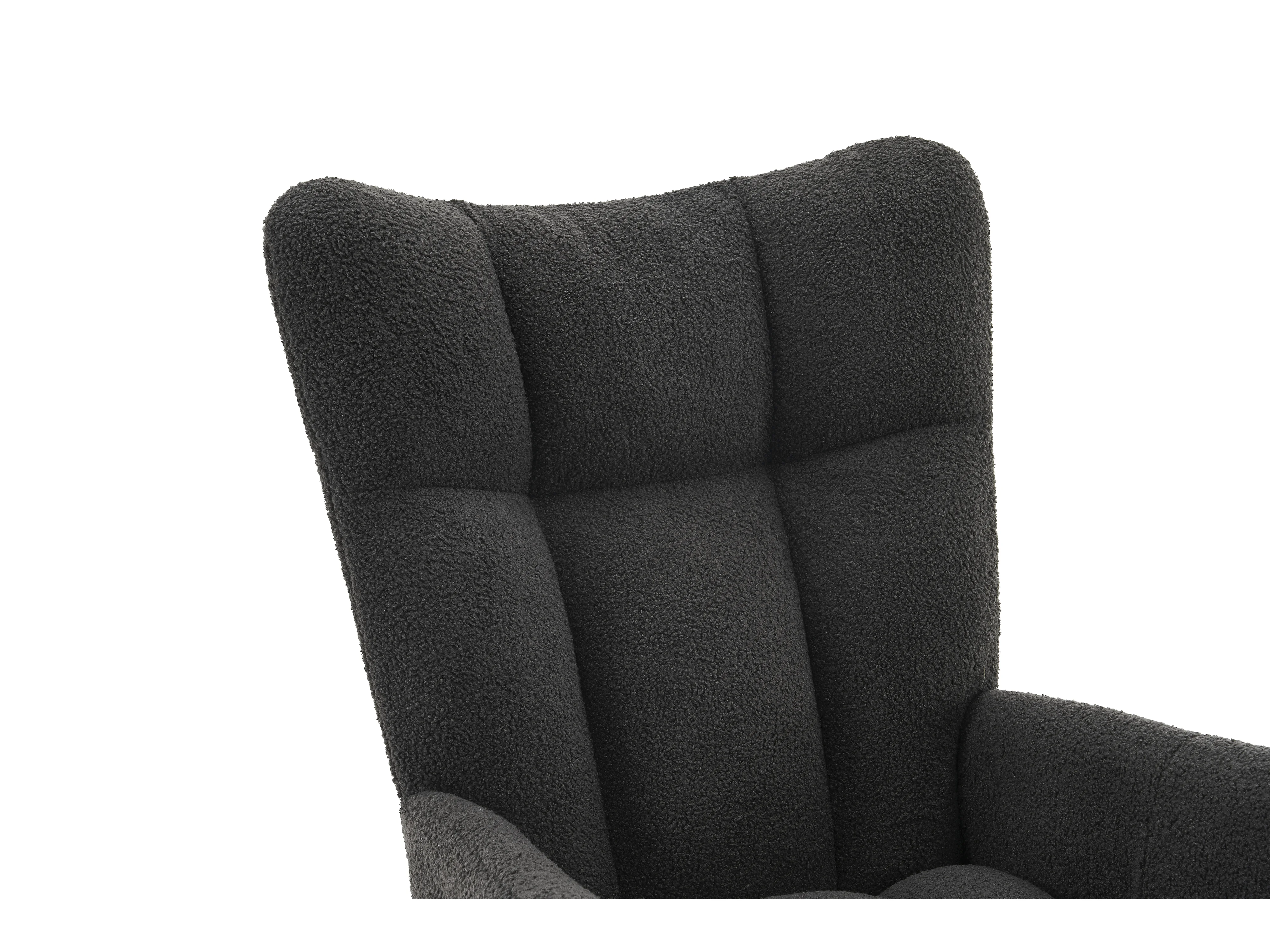 Fauteuil à bascule avec dossier haut et accoudoirs- Rocking chair en tissu Teddy gris