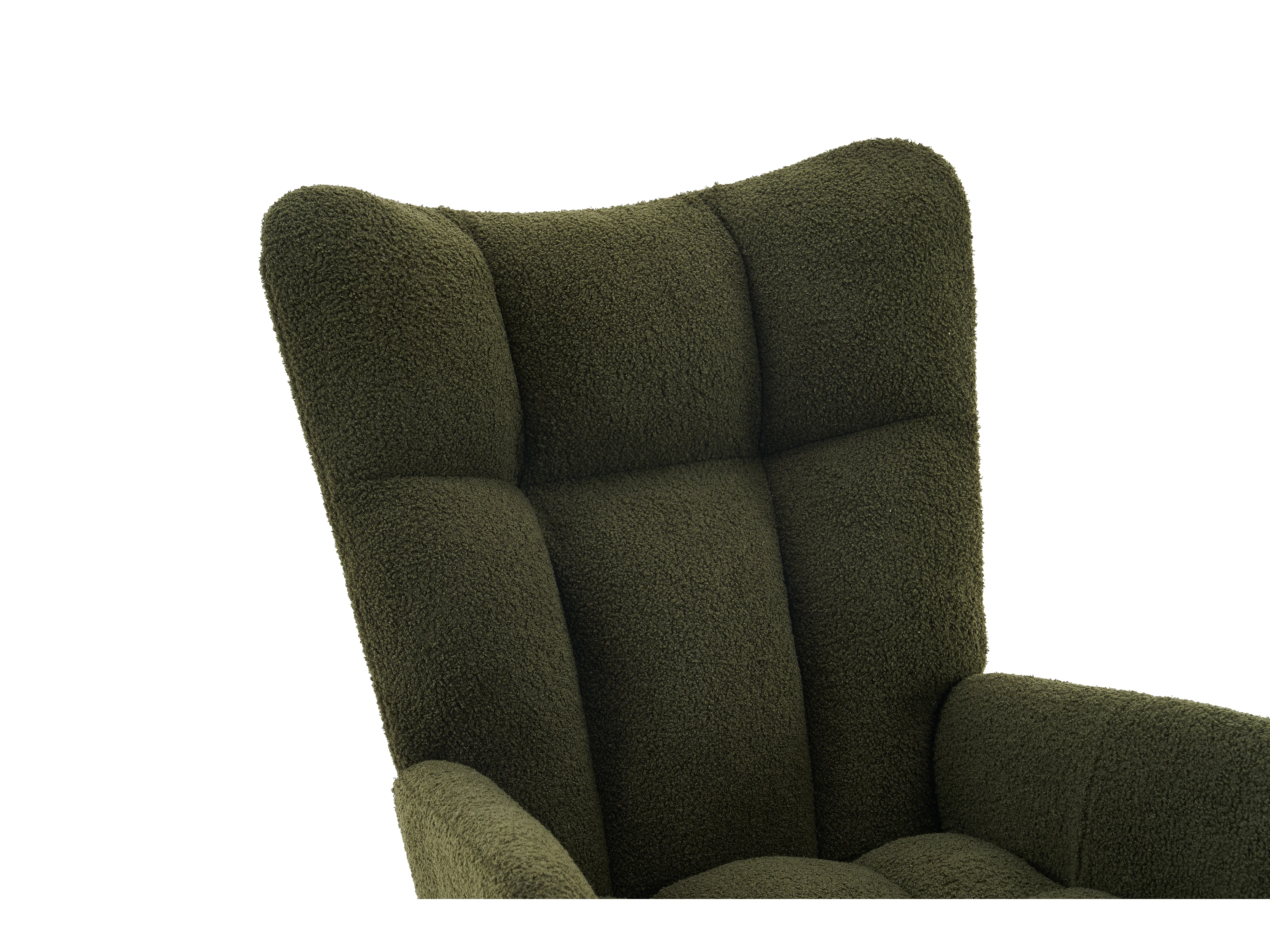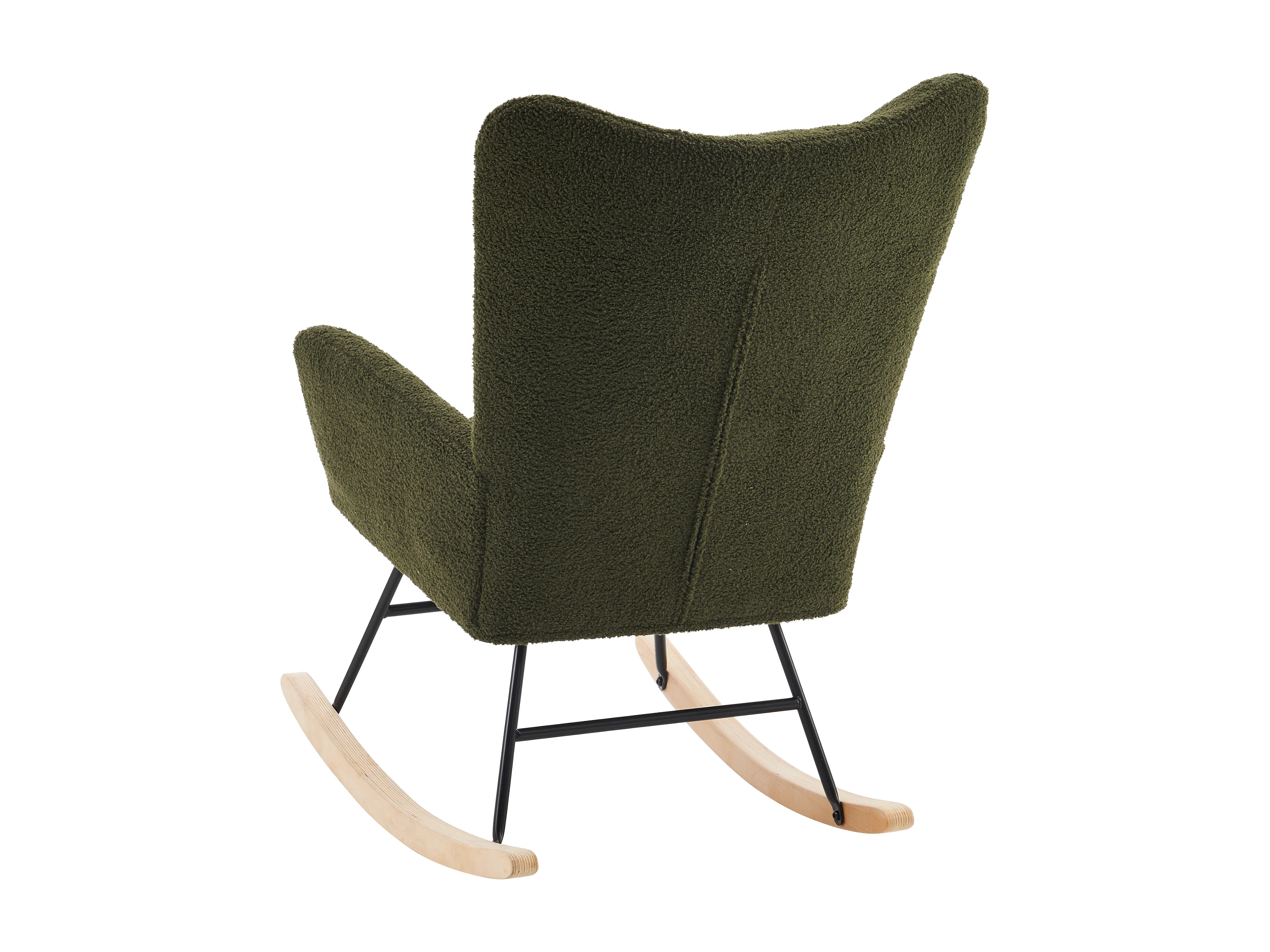 Fauteuil à bascule avec dossier haut et accoudoirs- Rocking chair en tissu Teddy vert
