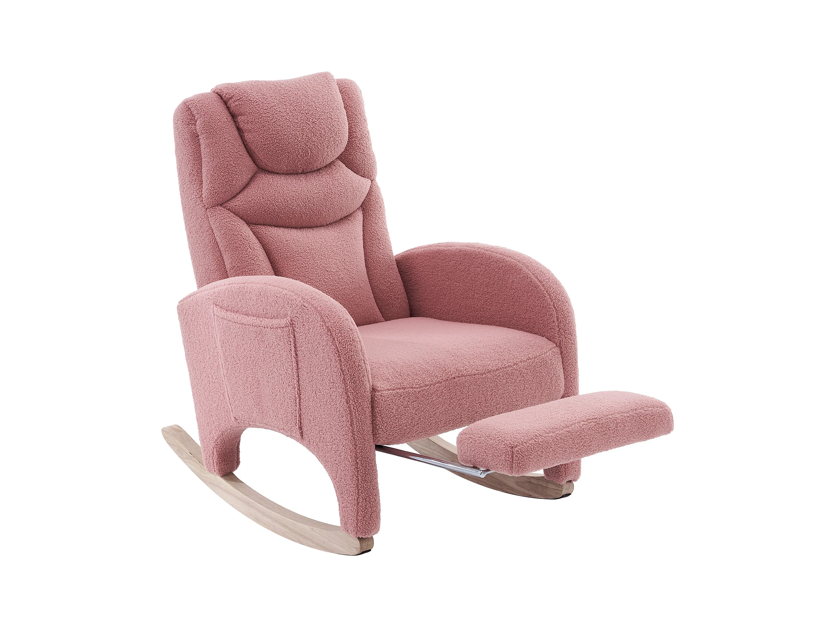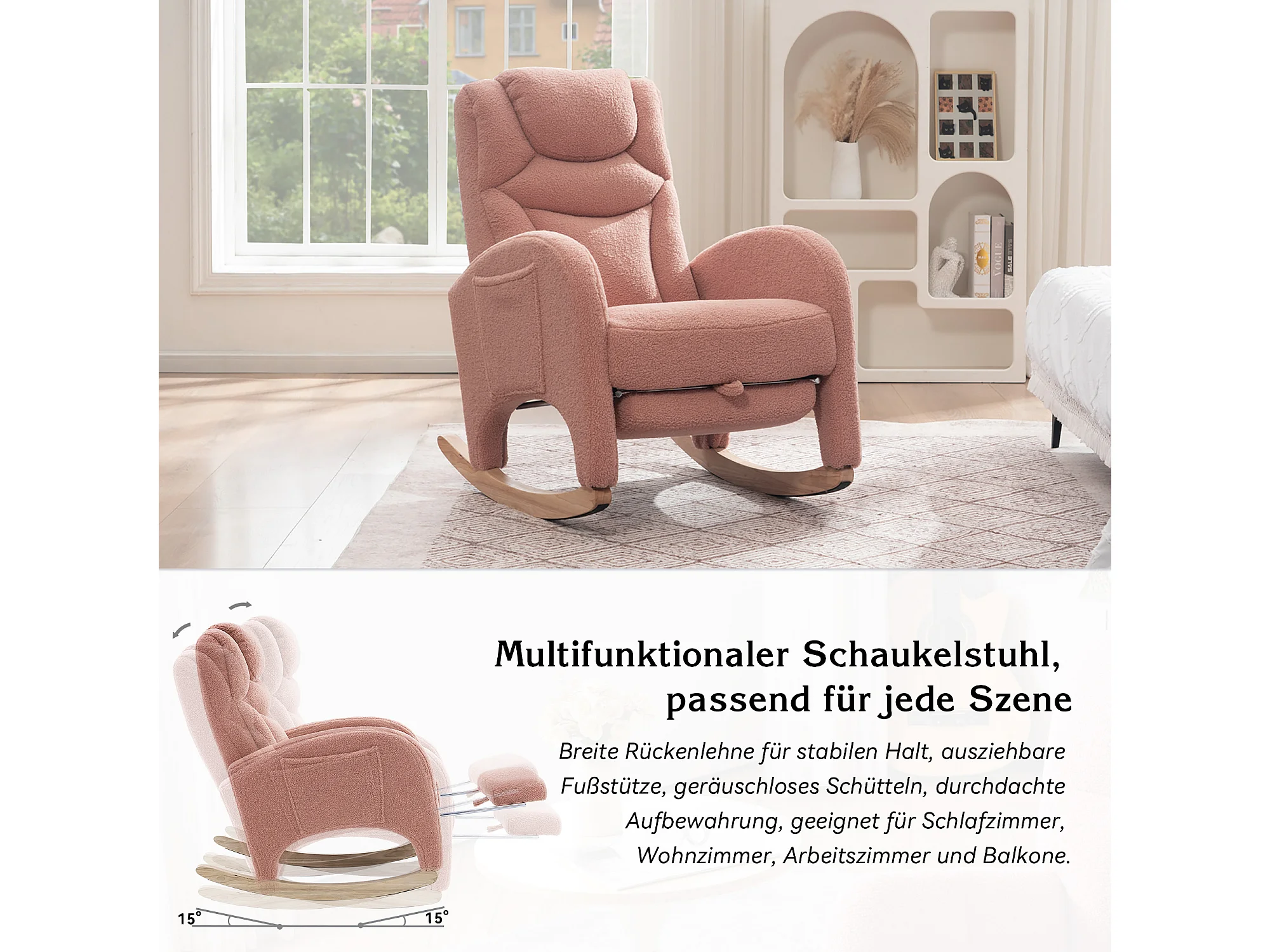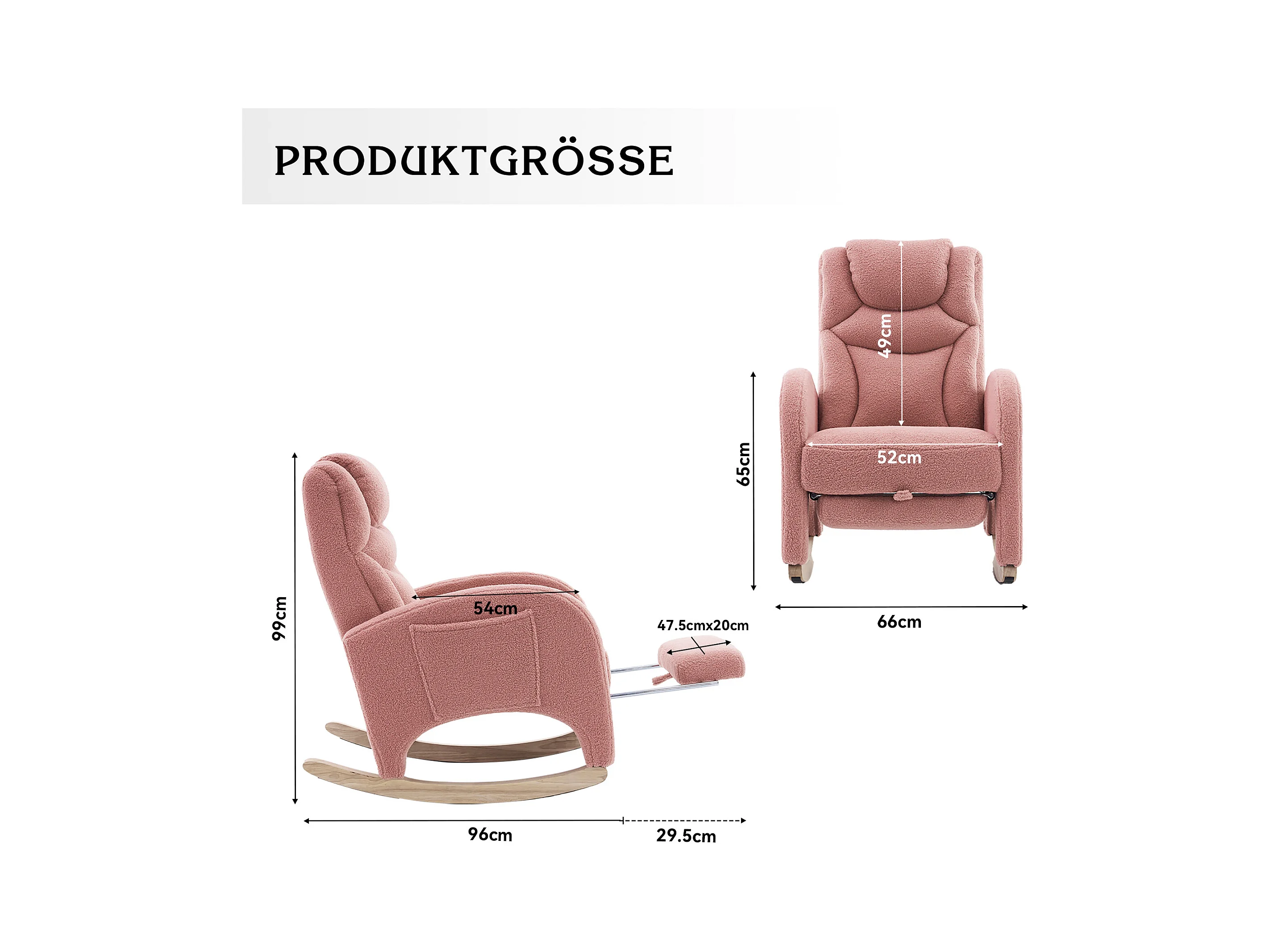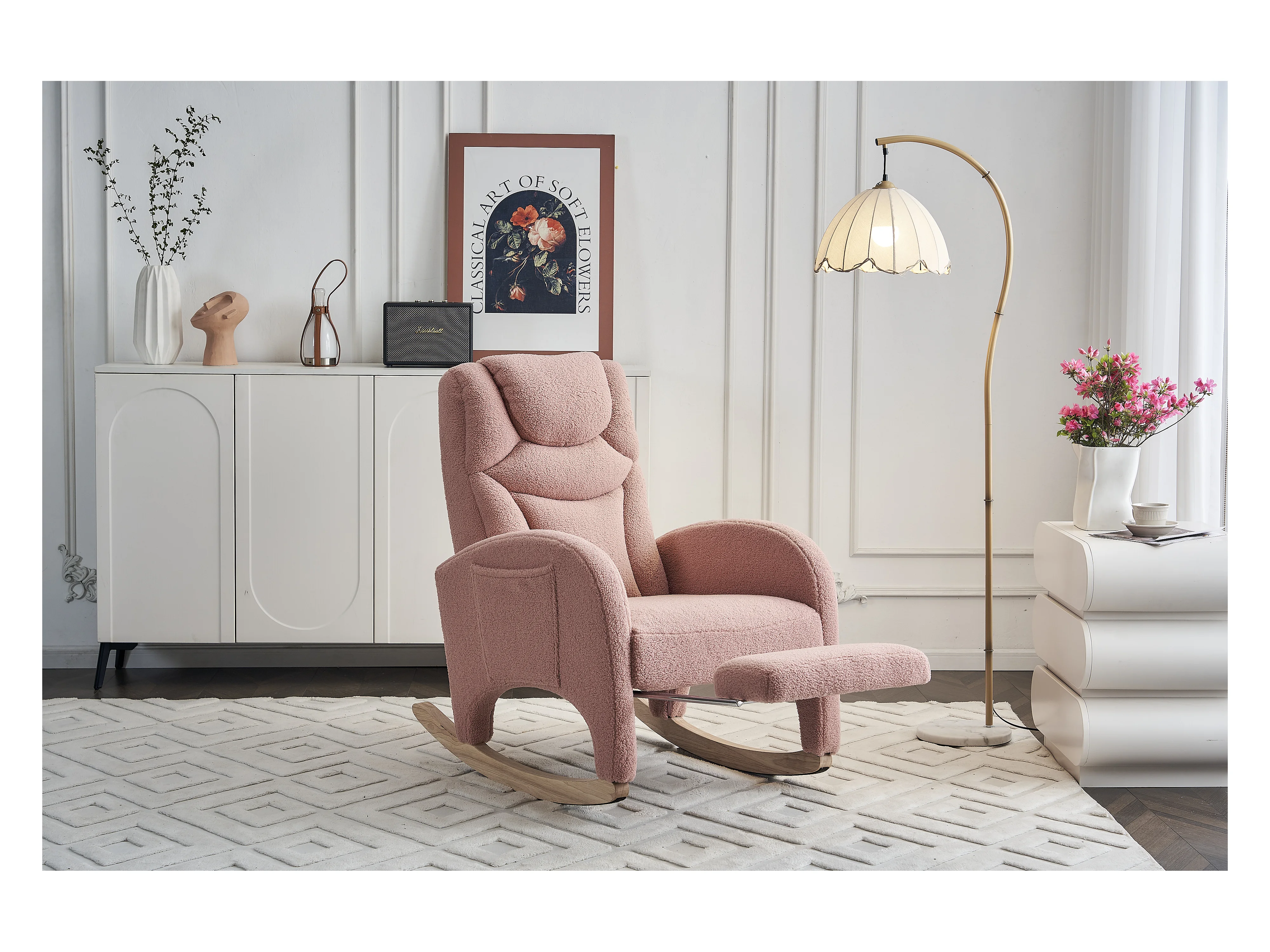 Fauteuil à bascule avec Poufe, Relax fauteuil, haut dossier, en Tissu peluche blanc (66x125x101 cm)