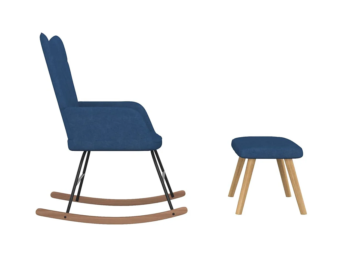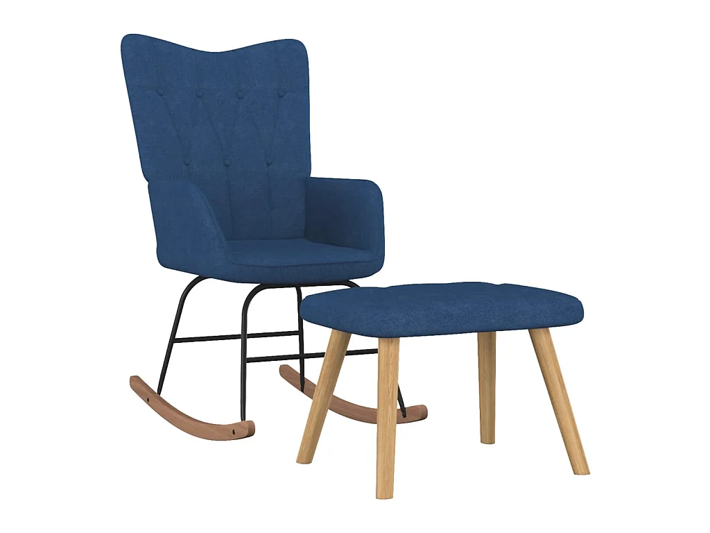 Chaise à bascule avec tabouret Bleu Tissu 2