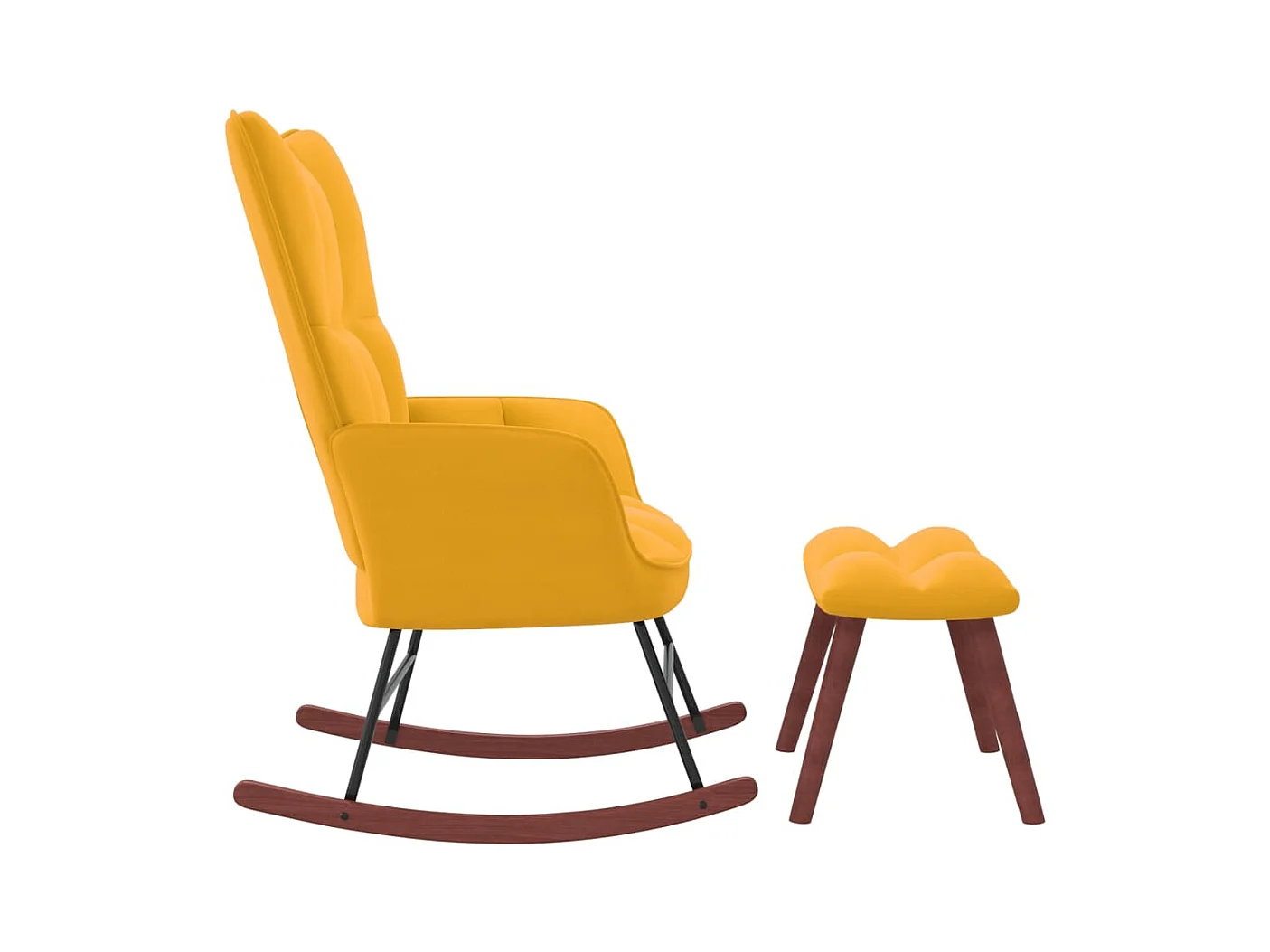 Fauteuil à bascule avec repose-pied Jaune moutarde Velours BE80834