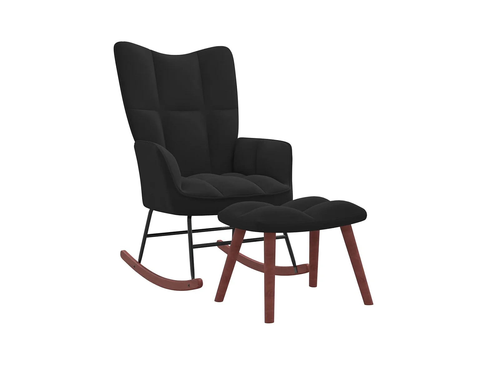 Fauteuil à bascule avec repose-pied Noir Velours BE17413