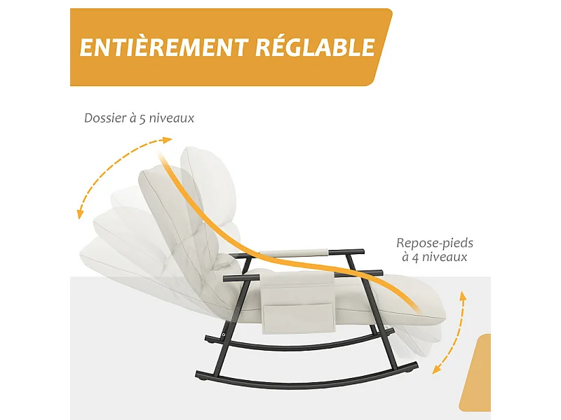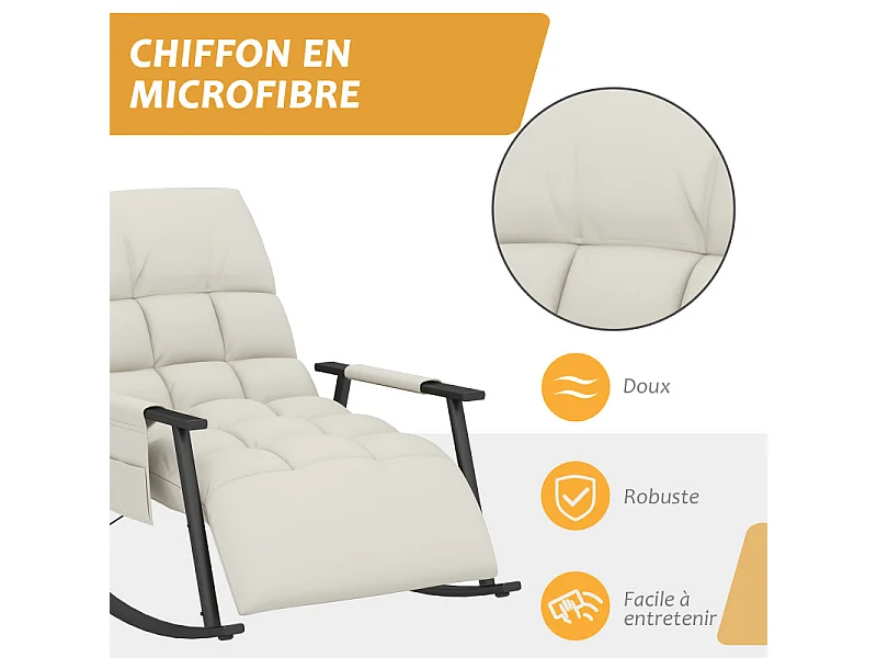 Fauteuil à bascule Chesterfield inclinable repose-pied réglable grège