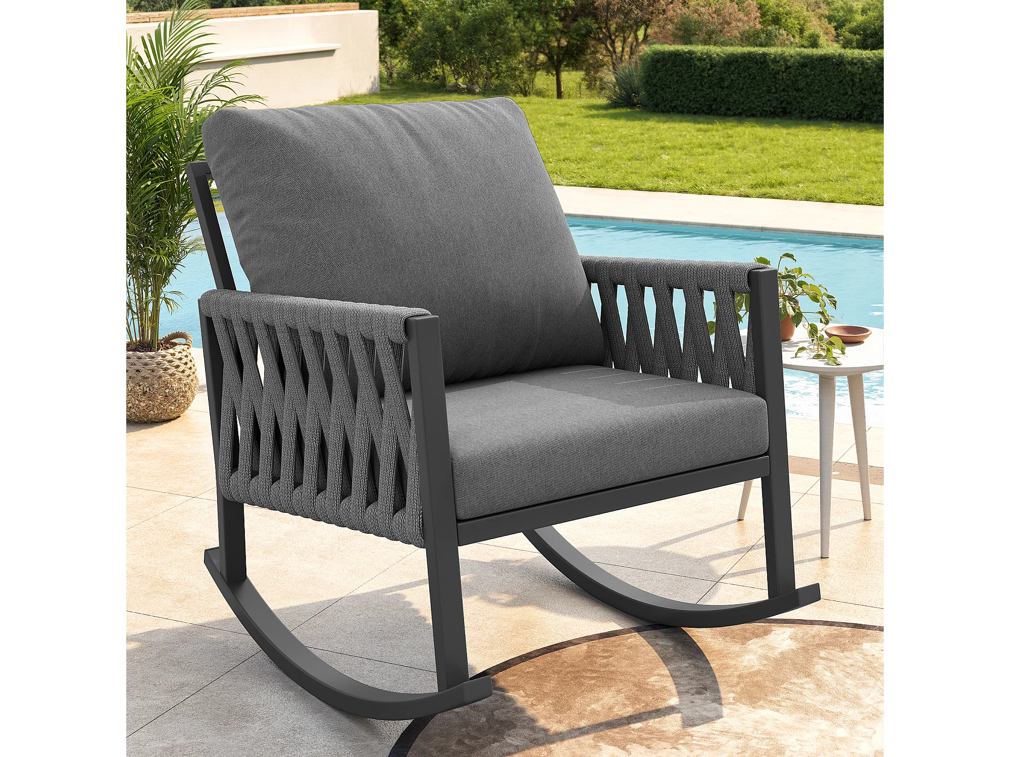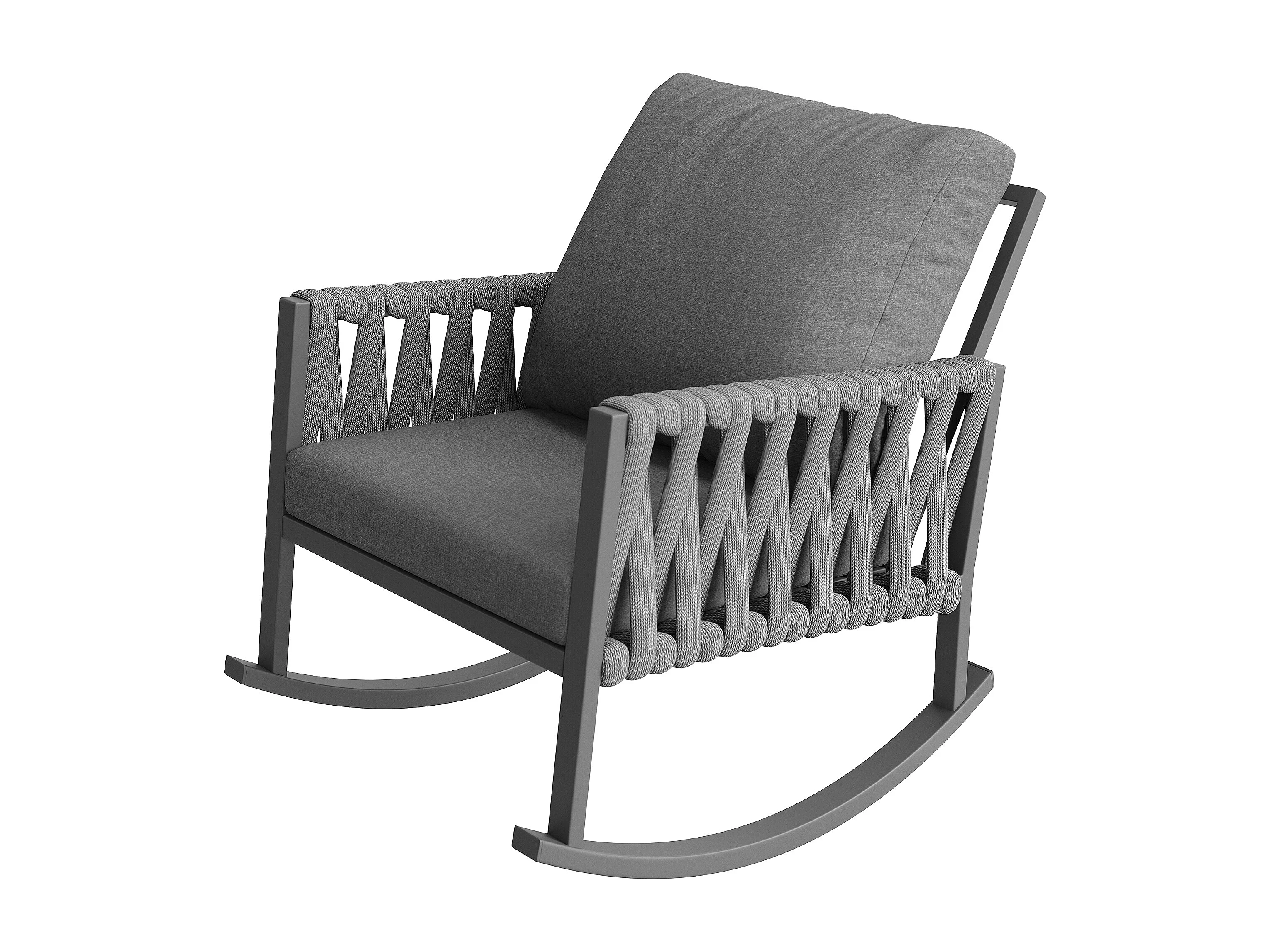 Fauteuil à Bascule de Jardin avec Dossier en Corde Tressée Croisée - Rocking Chair d'Extérieur Design Moderne - Structure Métal - Gris