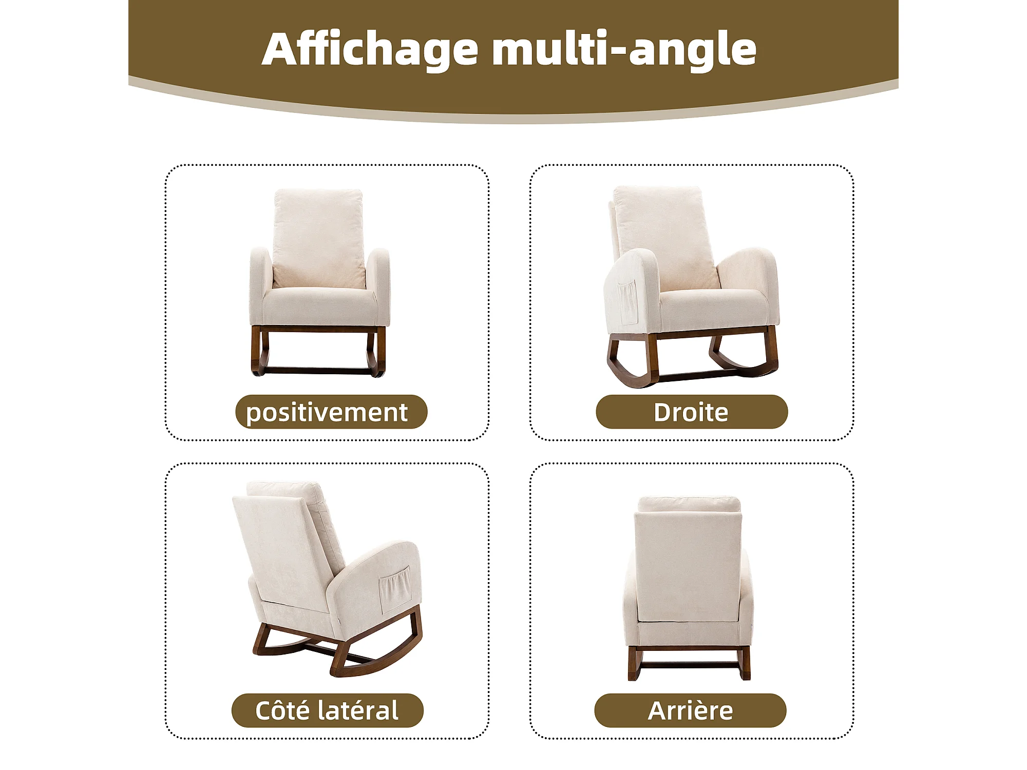 Fauteuil à Bascule en Tissu Lin Beige avec Poches Latérales - Style Carré et Design Naturel pour Salon ou Balcon