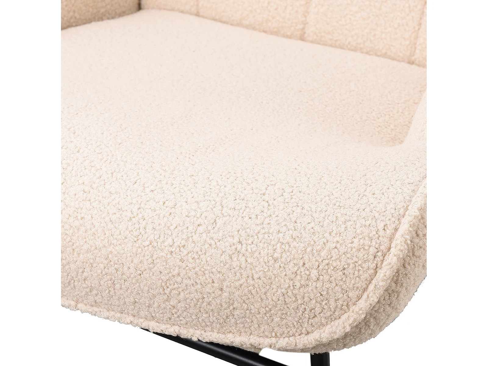 Fauteuil à bascule rocking chair design - structure acier piètement bois tissu effet laine bouclé beige