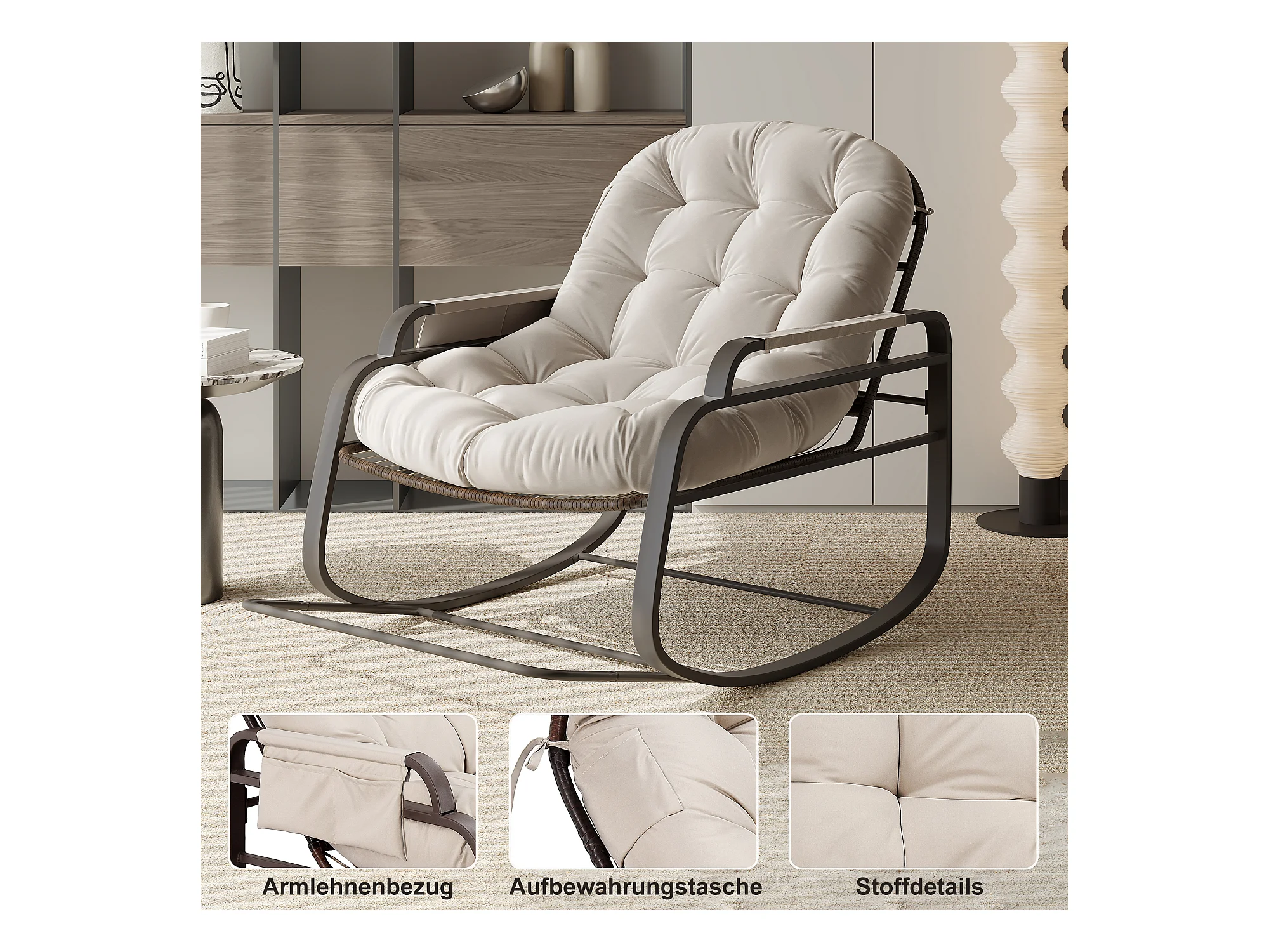Fauteuil à bascule en rotin, Rembourrée Rocking Chair, Confortable Grande Chaise bascules, pour Chambre à Coucher, Salon, Beige