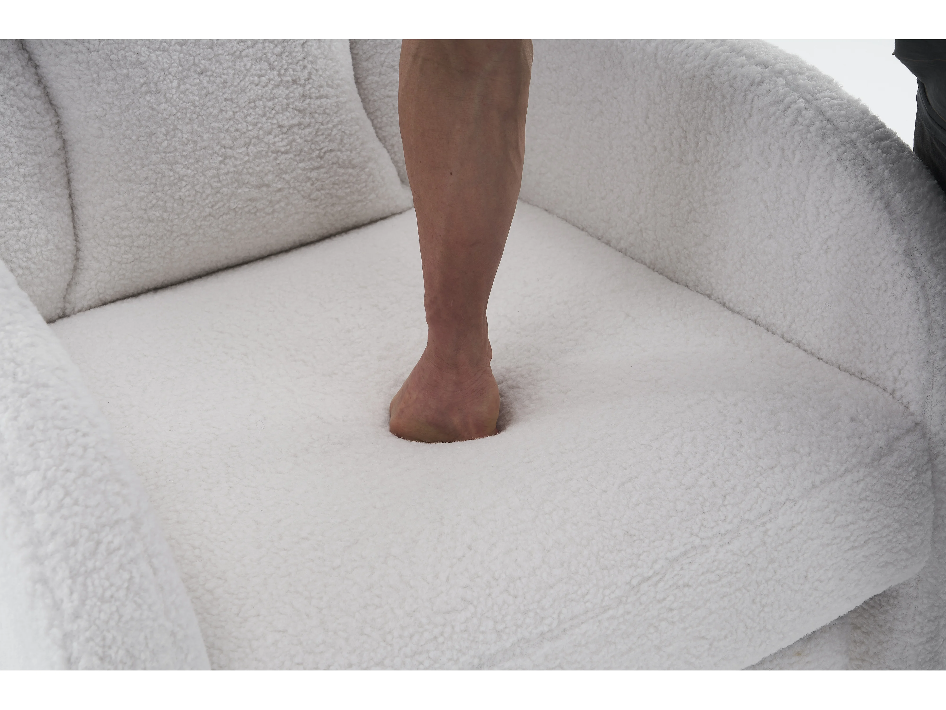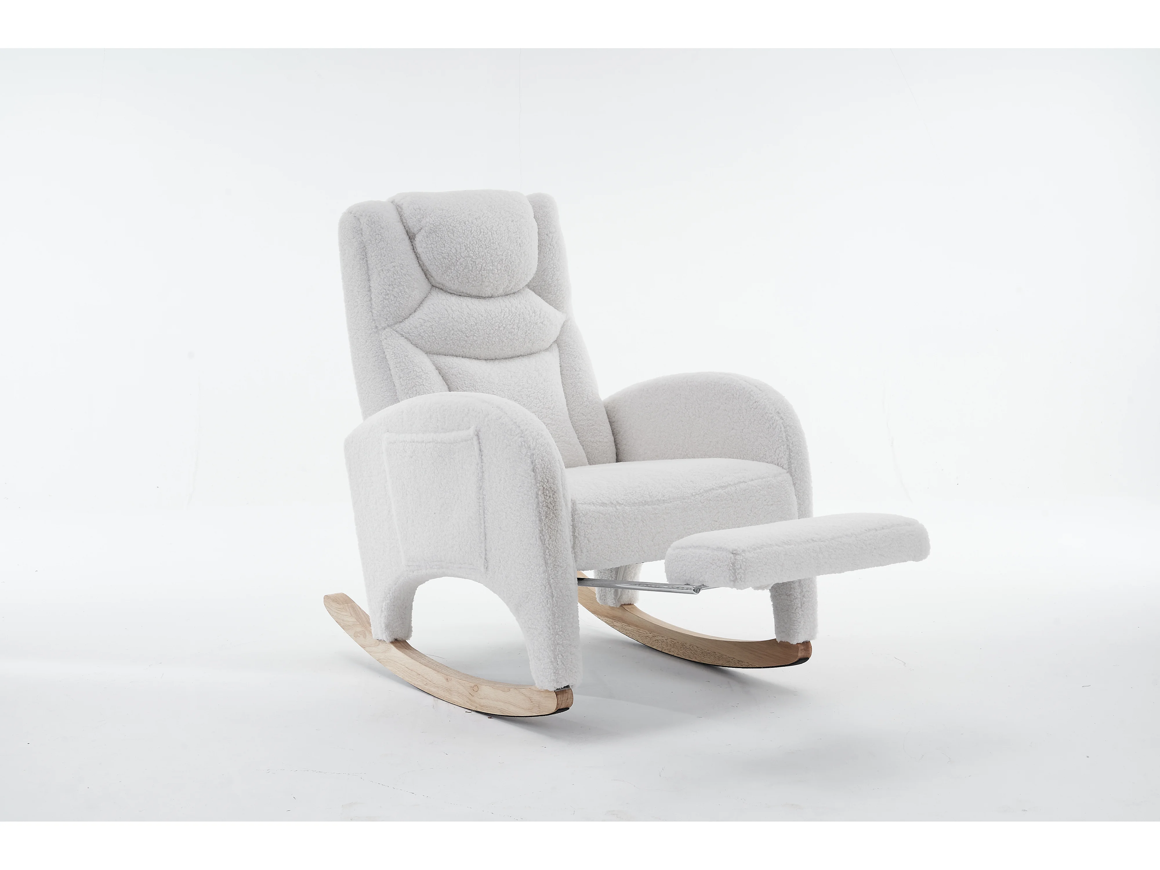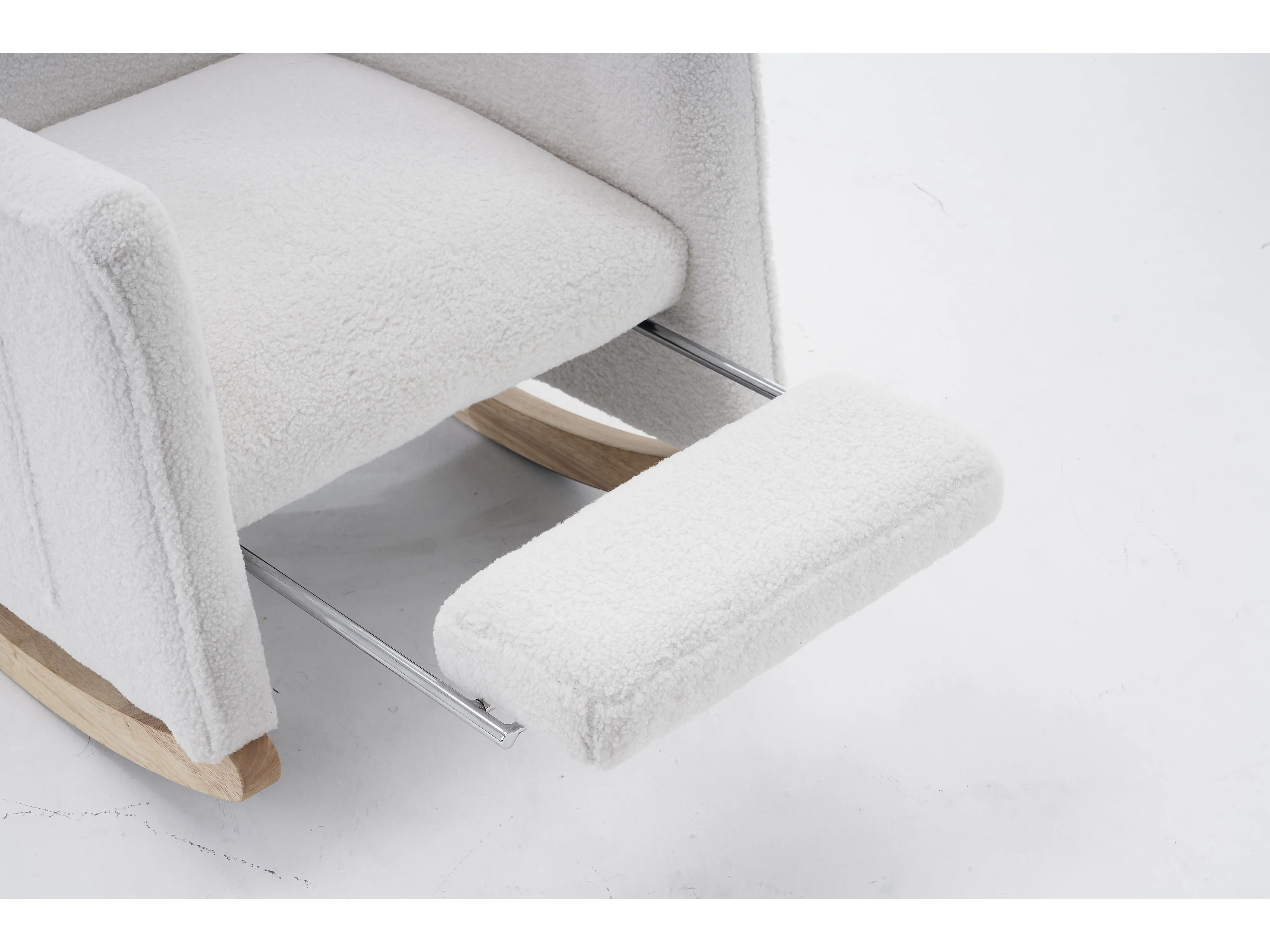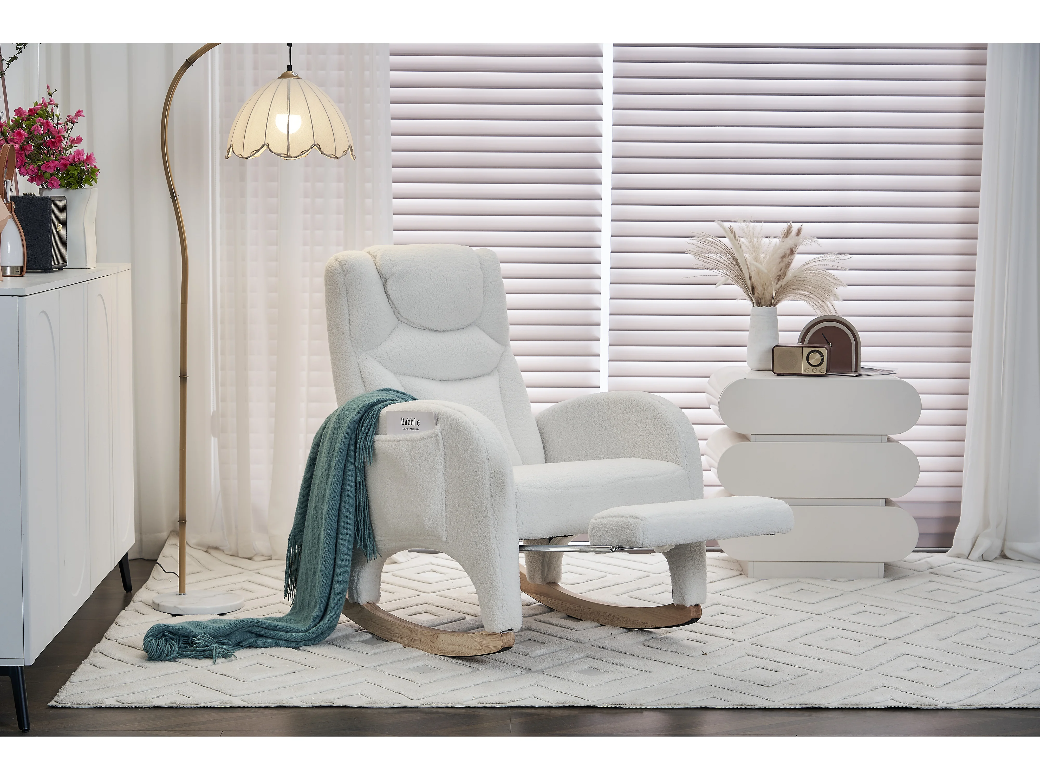 Fauteuil à bascule en tissu Teddy blanc - Rocking chair avec repose-pieds