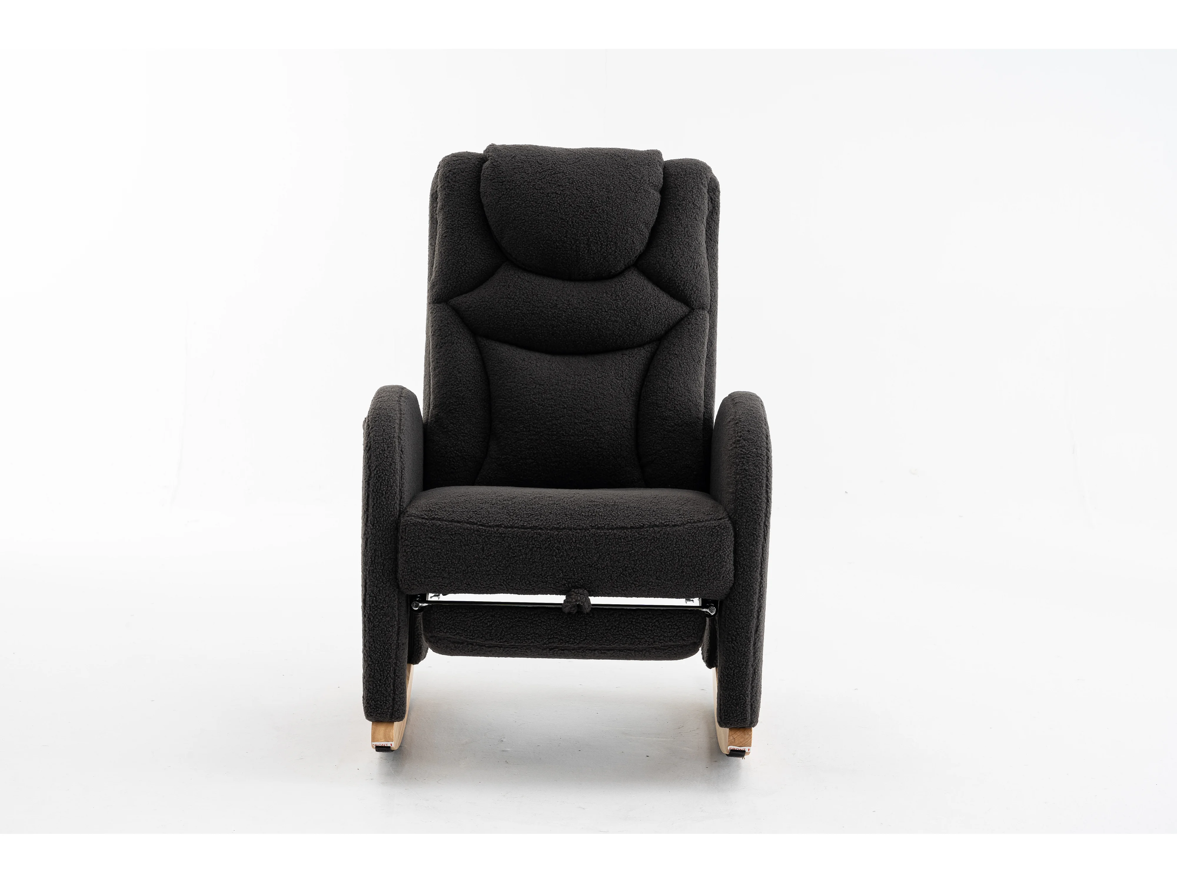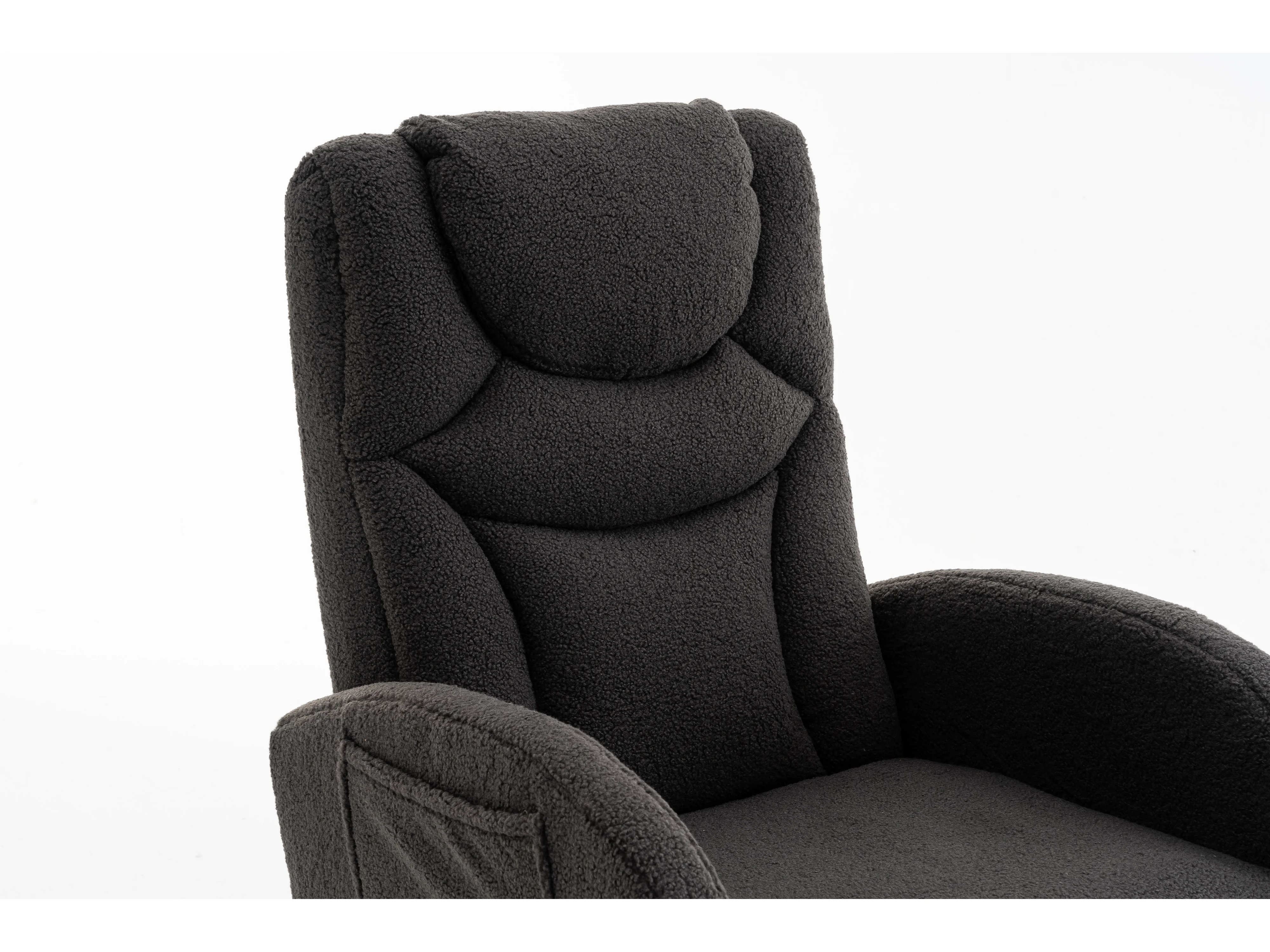 Fauteuil à bascule en tissu Teddy gris foncé - Rocking chair avec repose-pieds