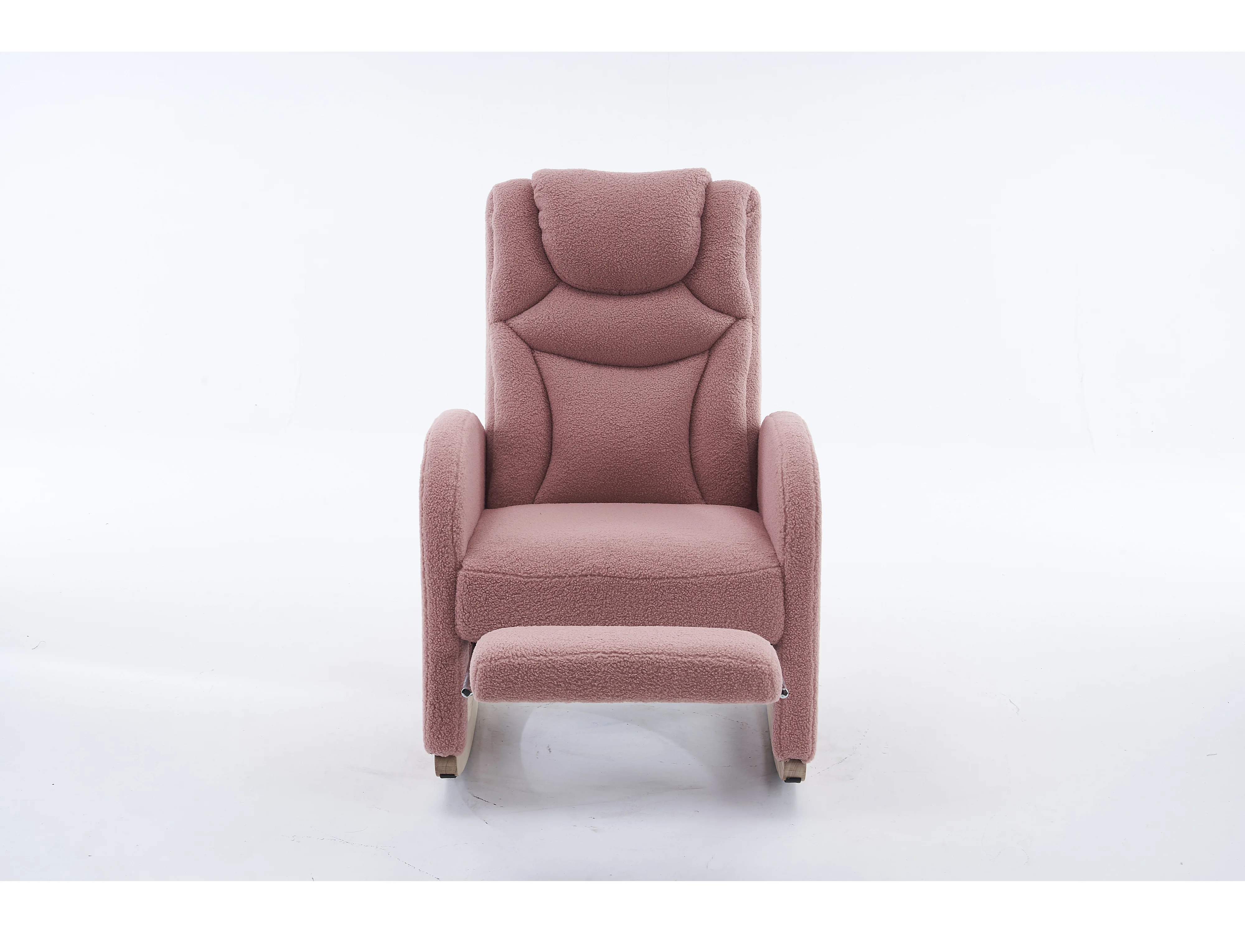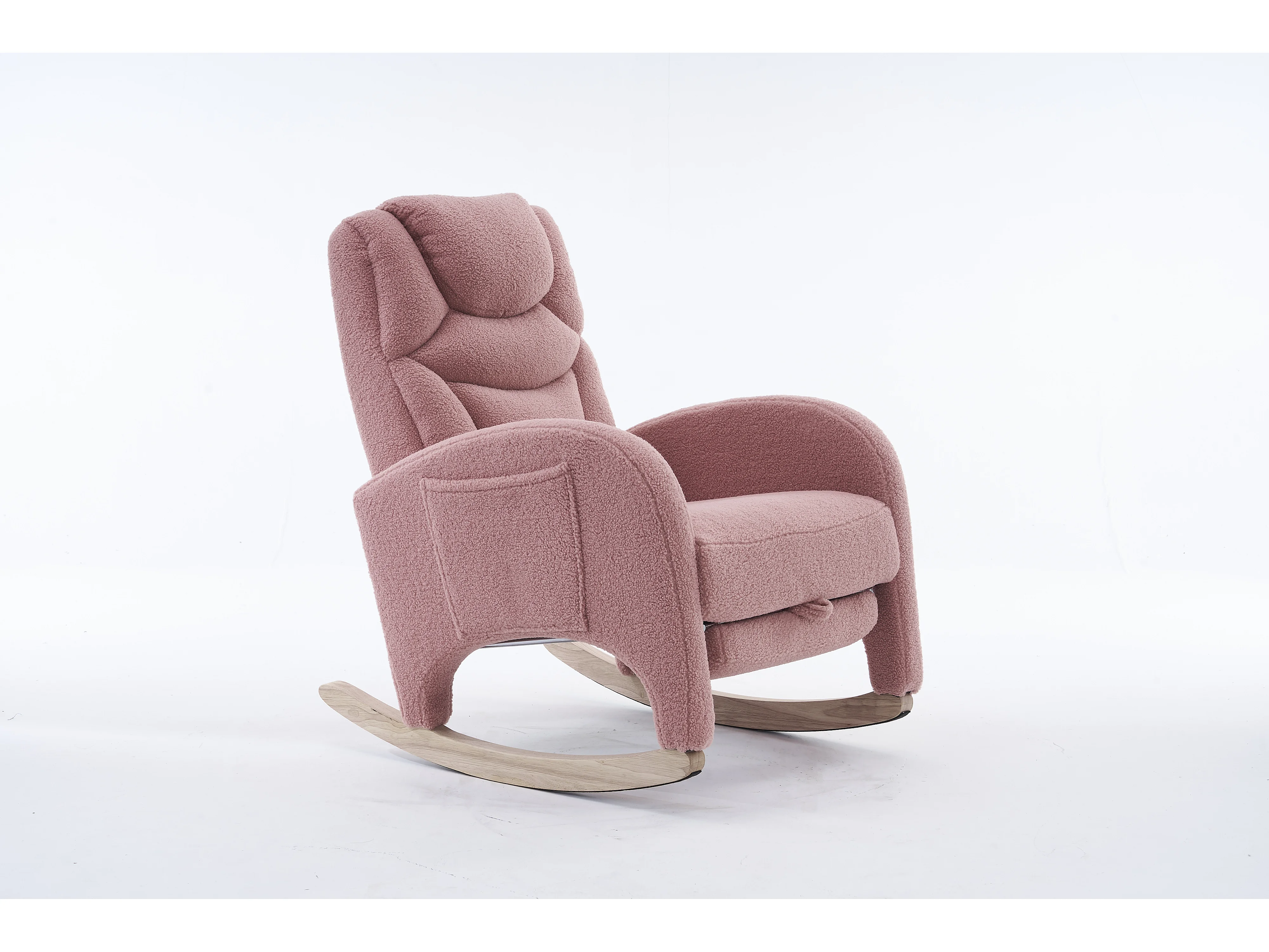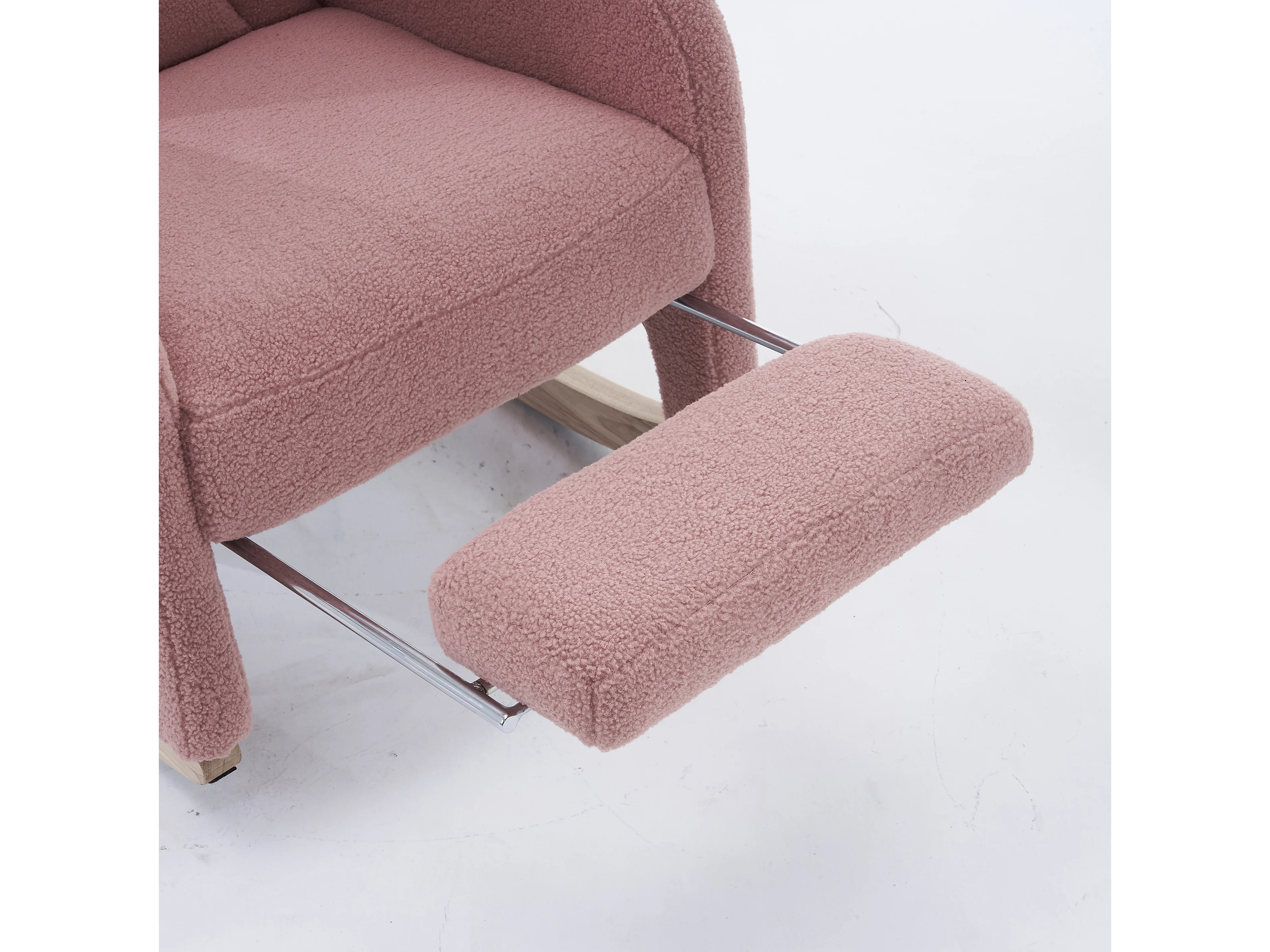 Fauteuil à bascule en tissu Teddy rose- Rocking chair avec repose-pieds