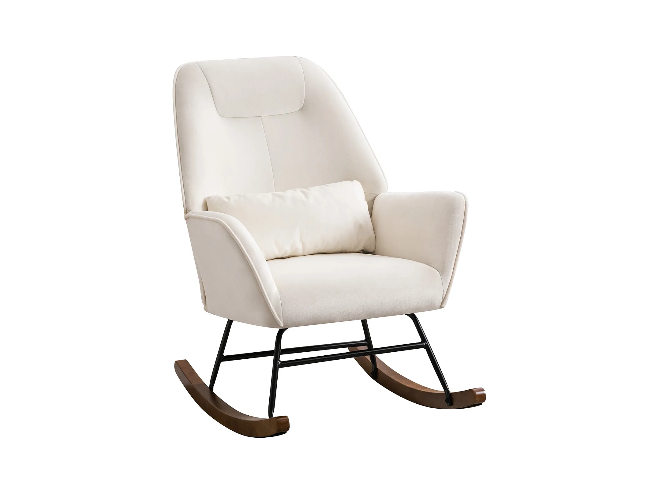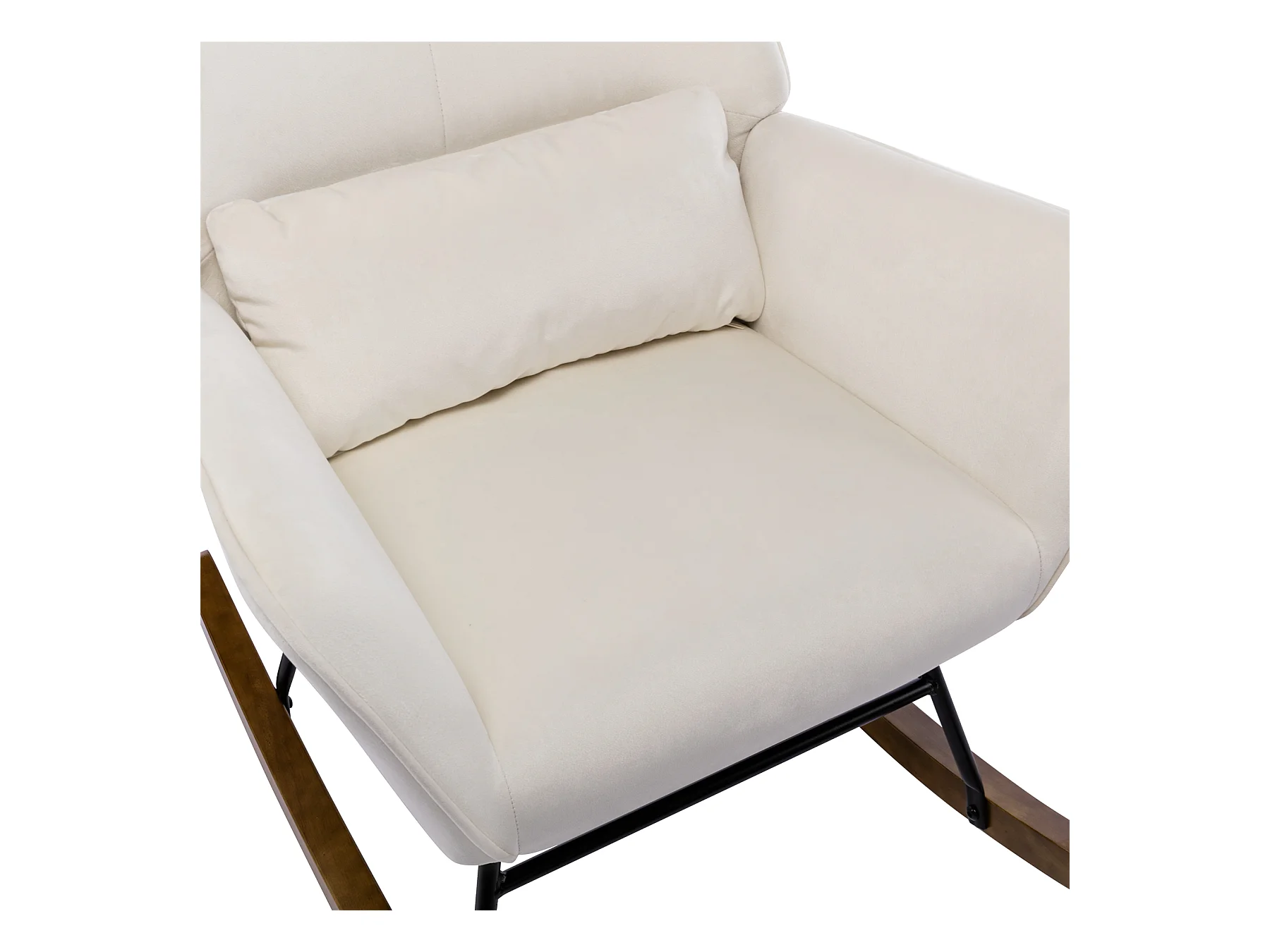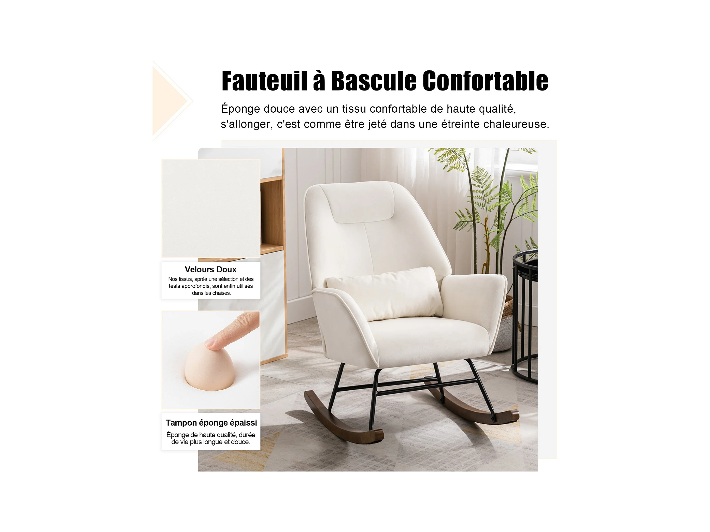 Fauteuil à Bascule en Velours Rembourré avec Support Lombaire, Fauteuil Allaitement à Bascule pour Salon, Chambre d'enfant, Beige