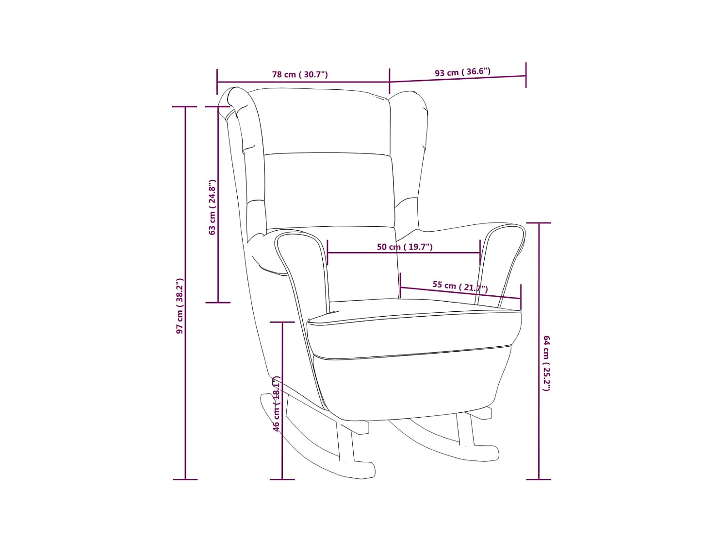 Fauteuil à bascule et pieds en bois d'hévéa Gris foncé Velours
