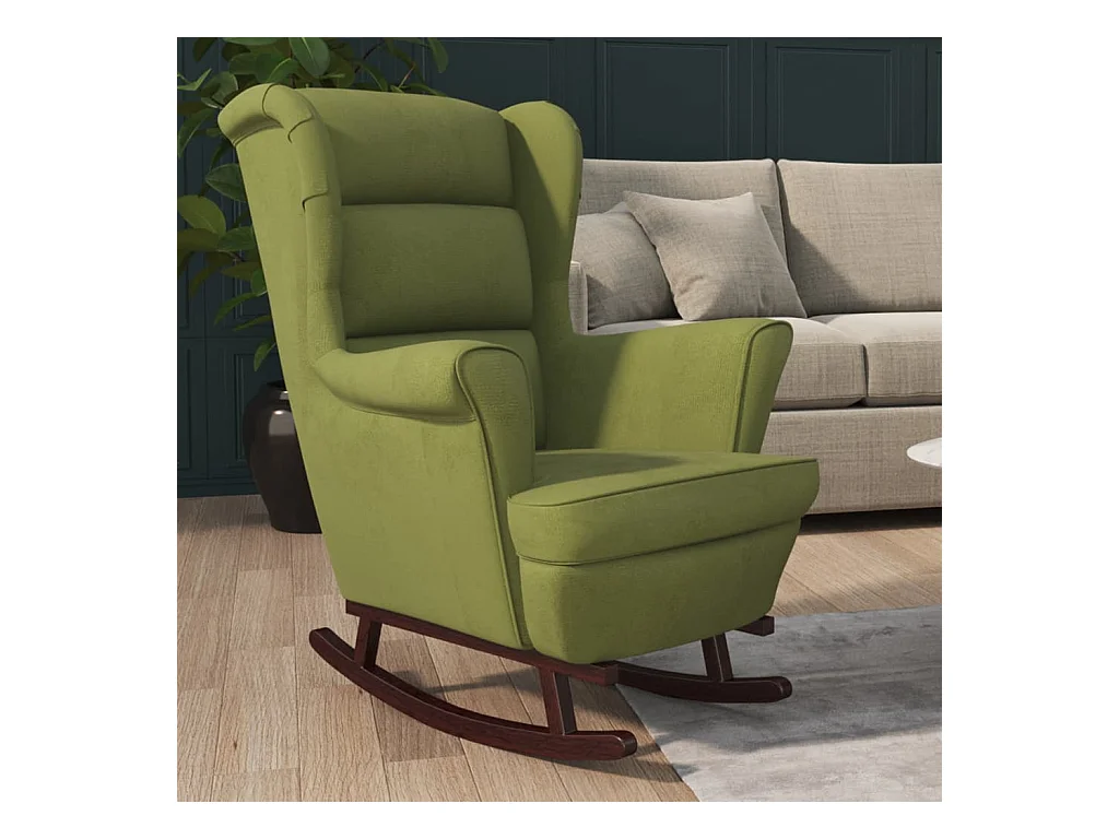Fauteuil à bascule et pieds en bois d'hévéa Vert clair Velours