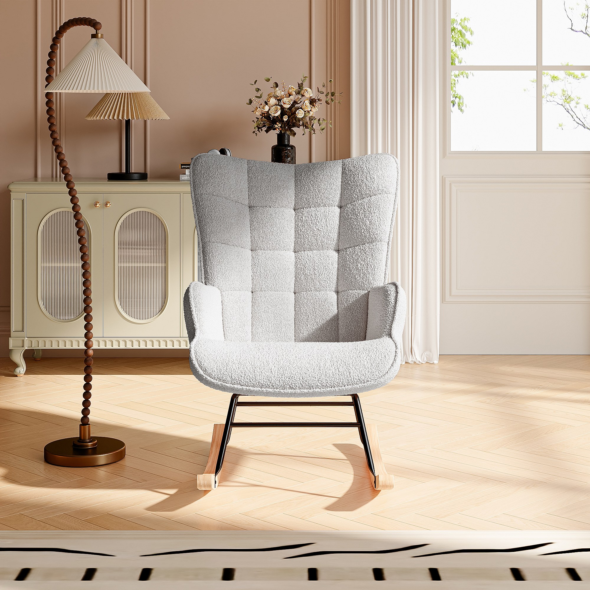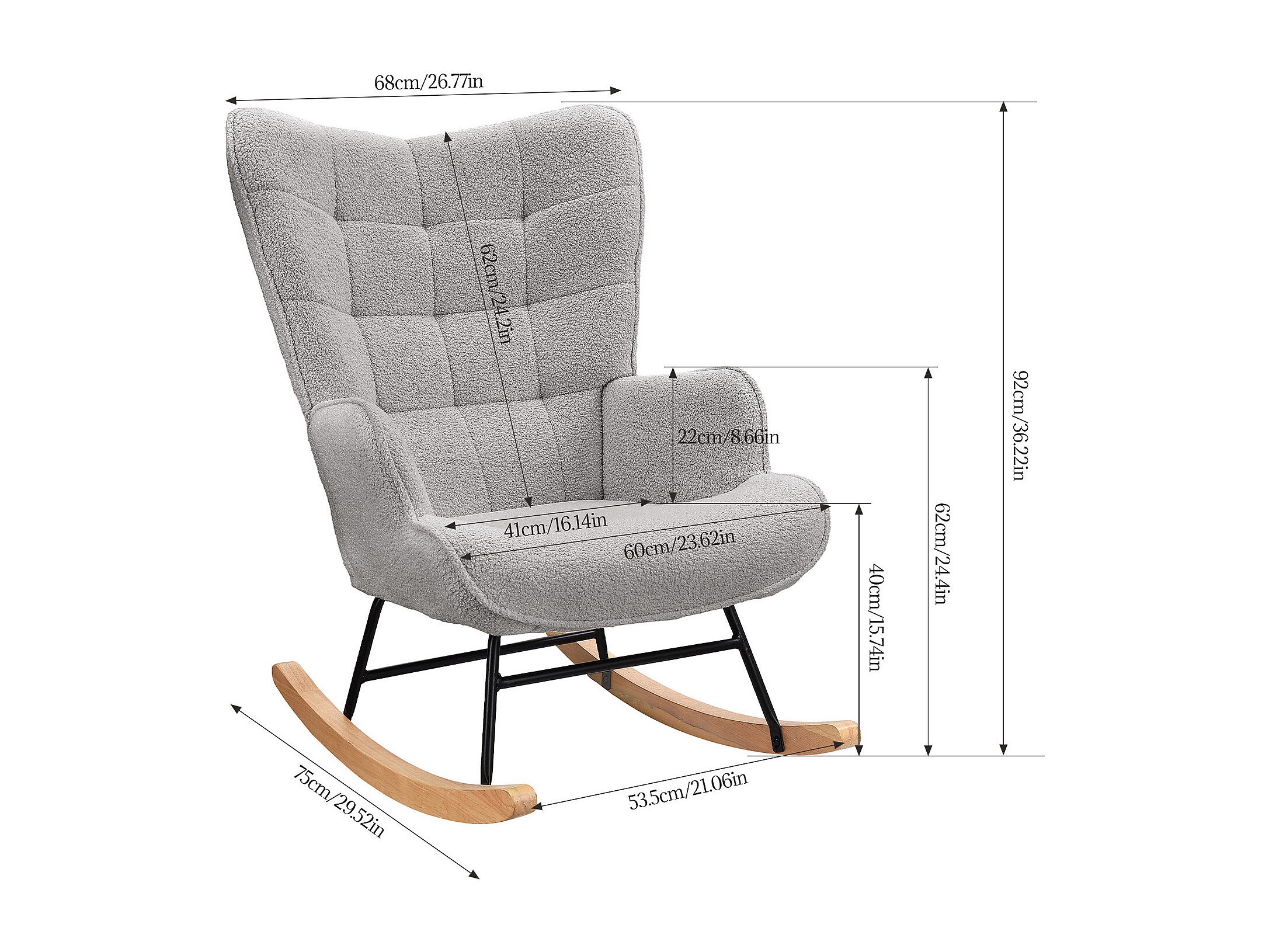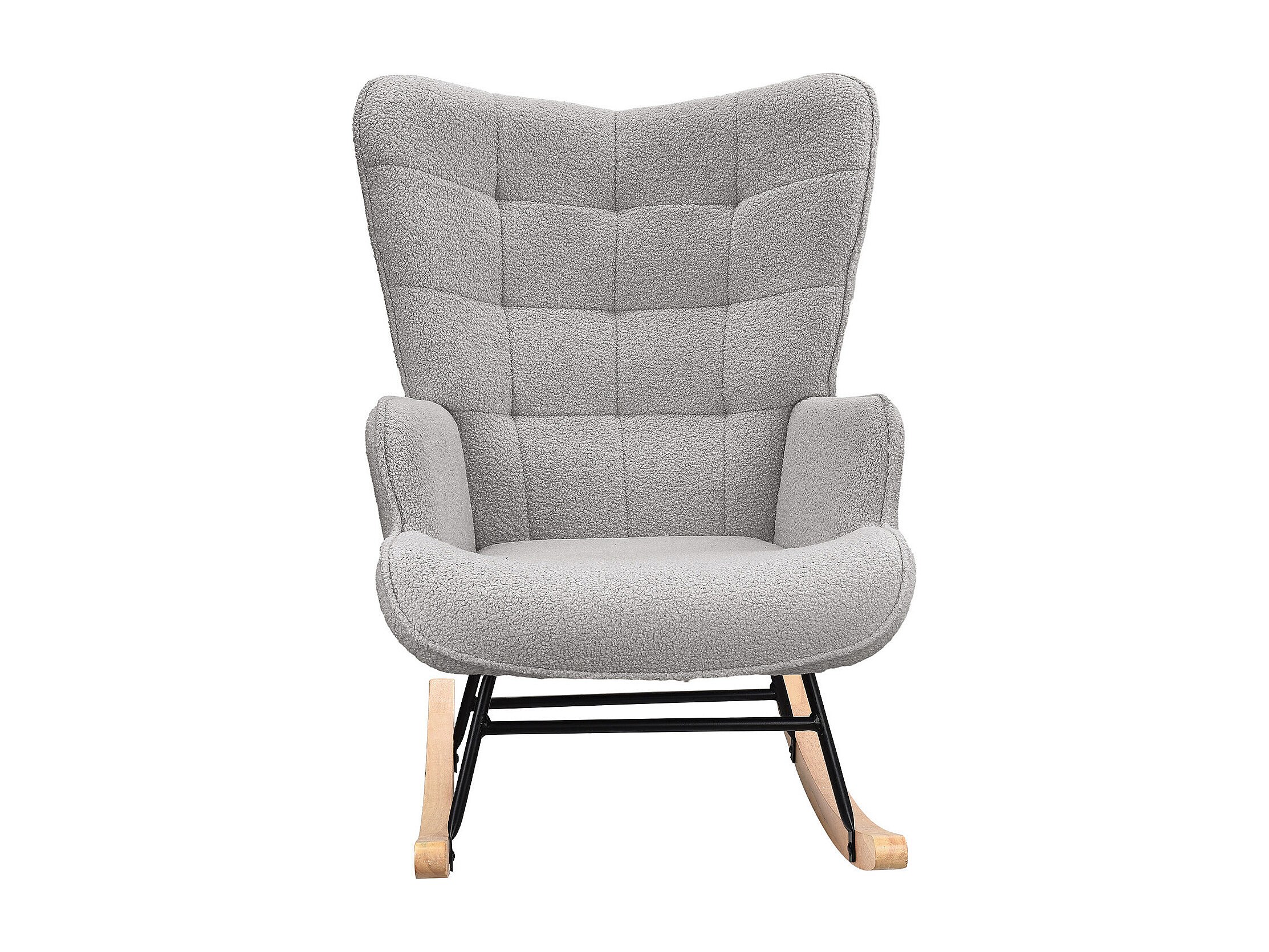 Fauteuil à Bascule - Fauteuil à Oreilles Rembourré - Pieds en Métal et en Bois Massif - Velours Teddy