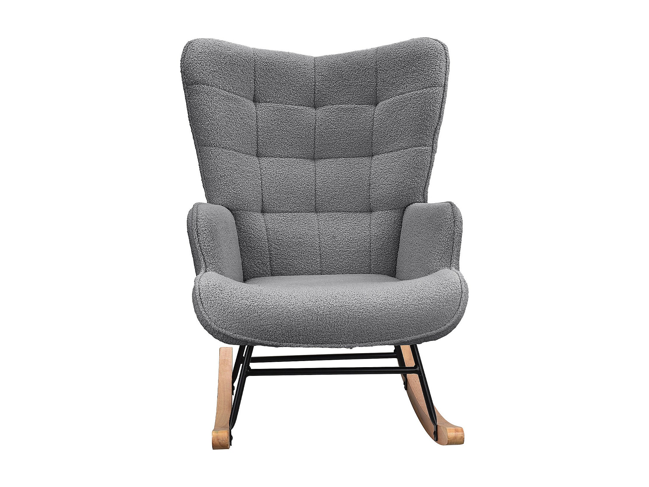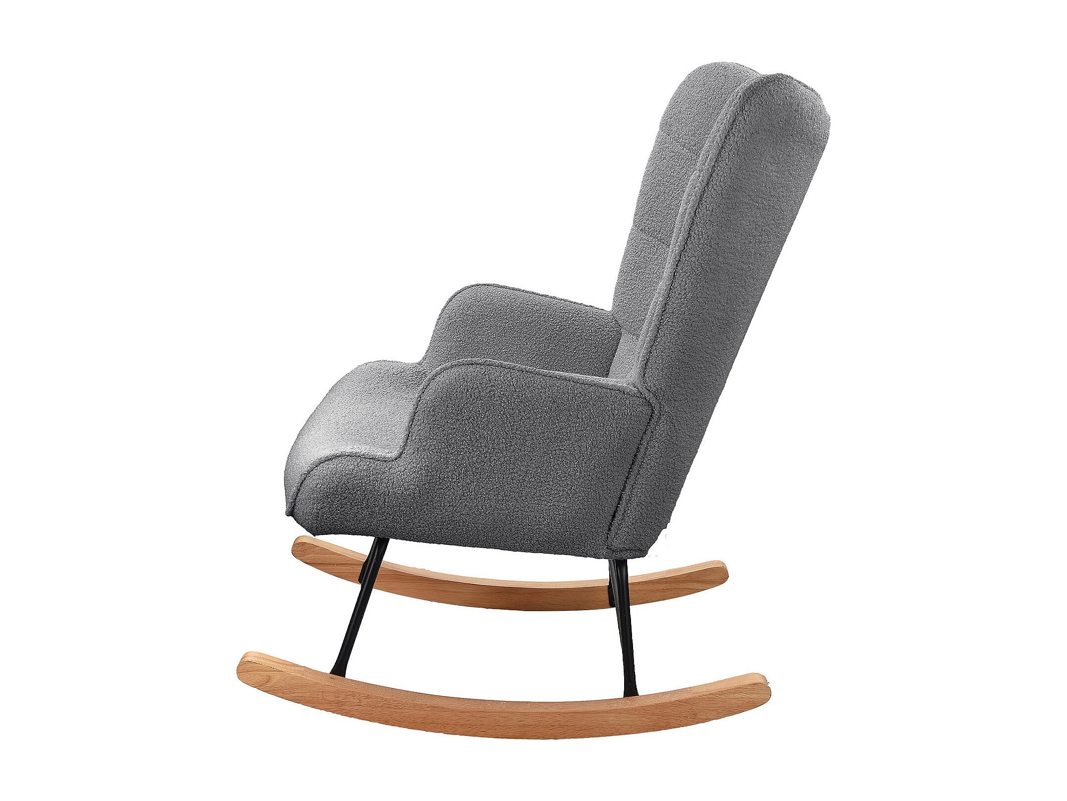Fauteuil à Bascule - Fauteuil à Oreilles Rembourré - Pieds en Métal et en Bois Massif - Velours Teddy