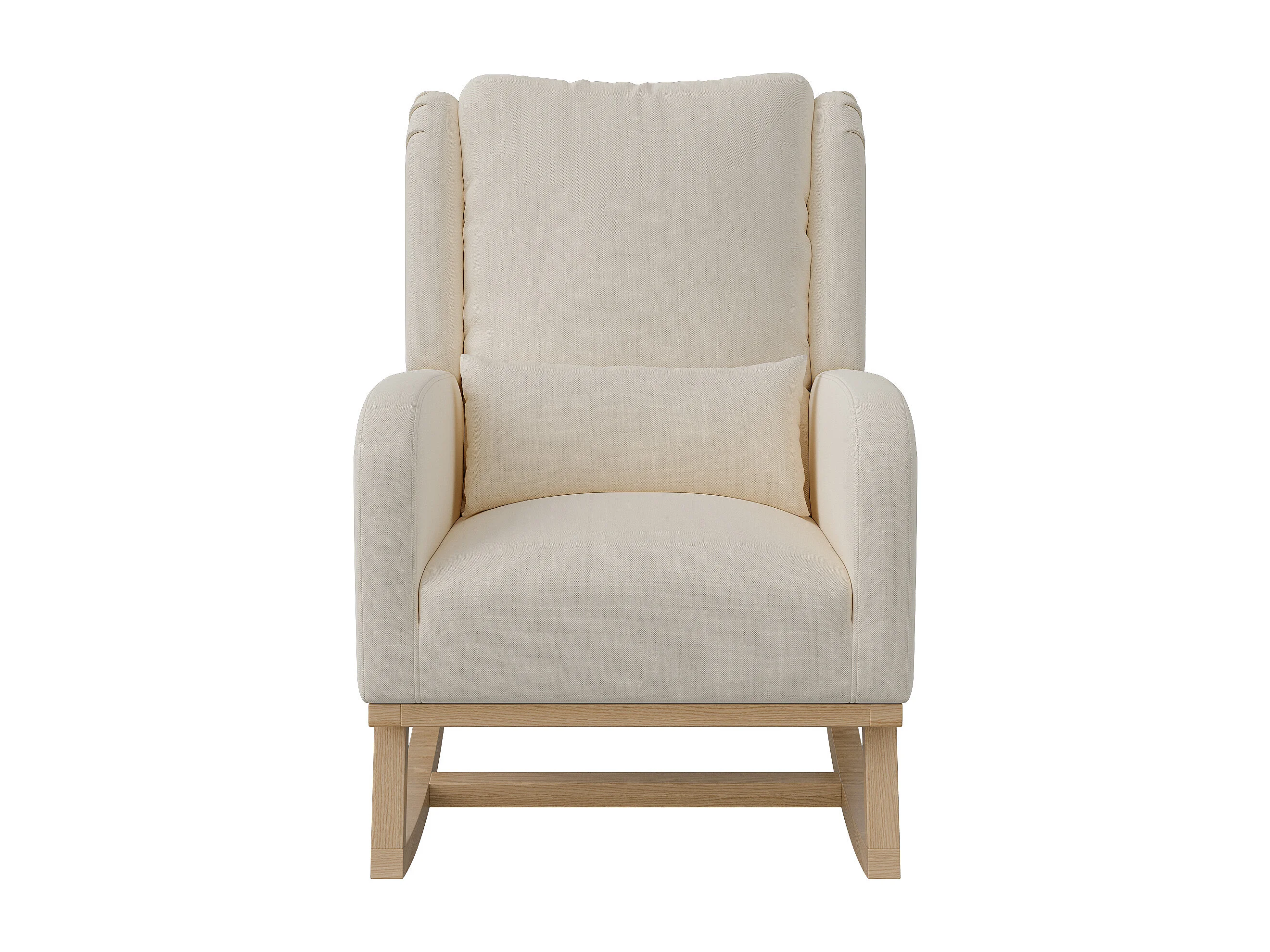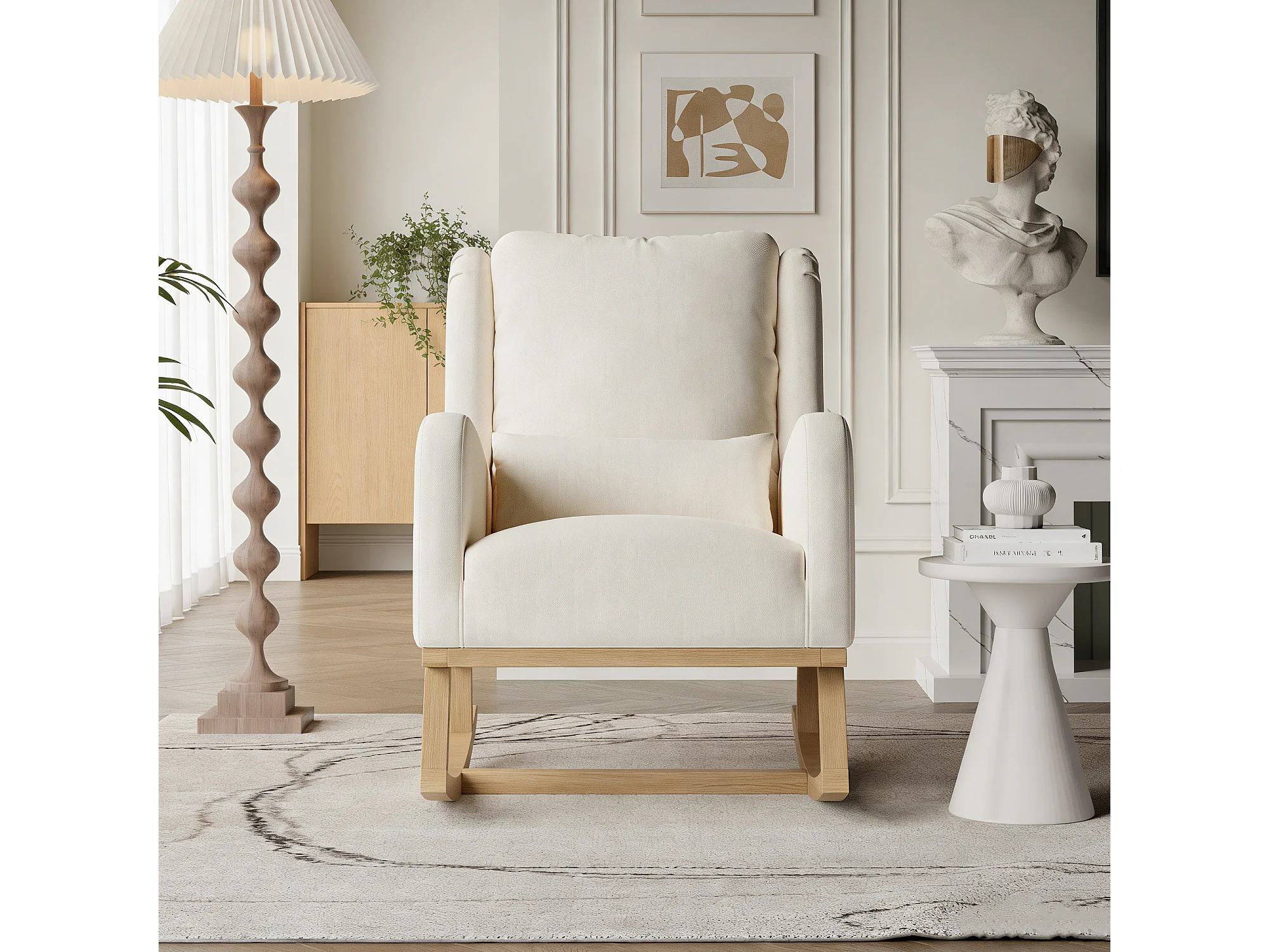 Fauteuil à bascule avec coussin - chaise à bascule dossier haut - poches latérales - Pieds En Bois - Style Scandinave - lin - beige