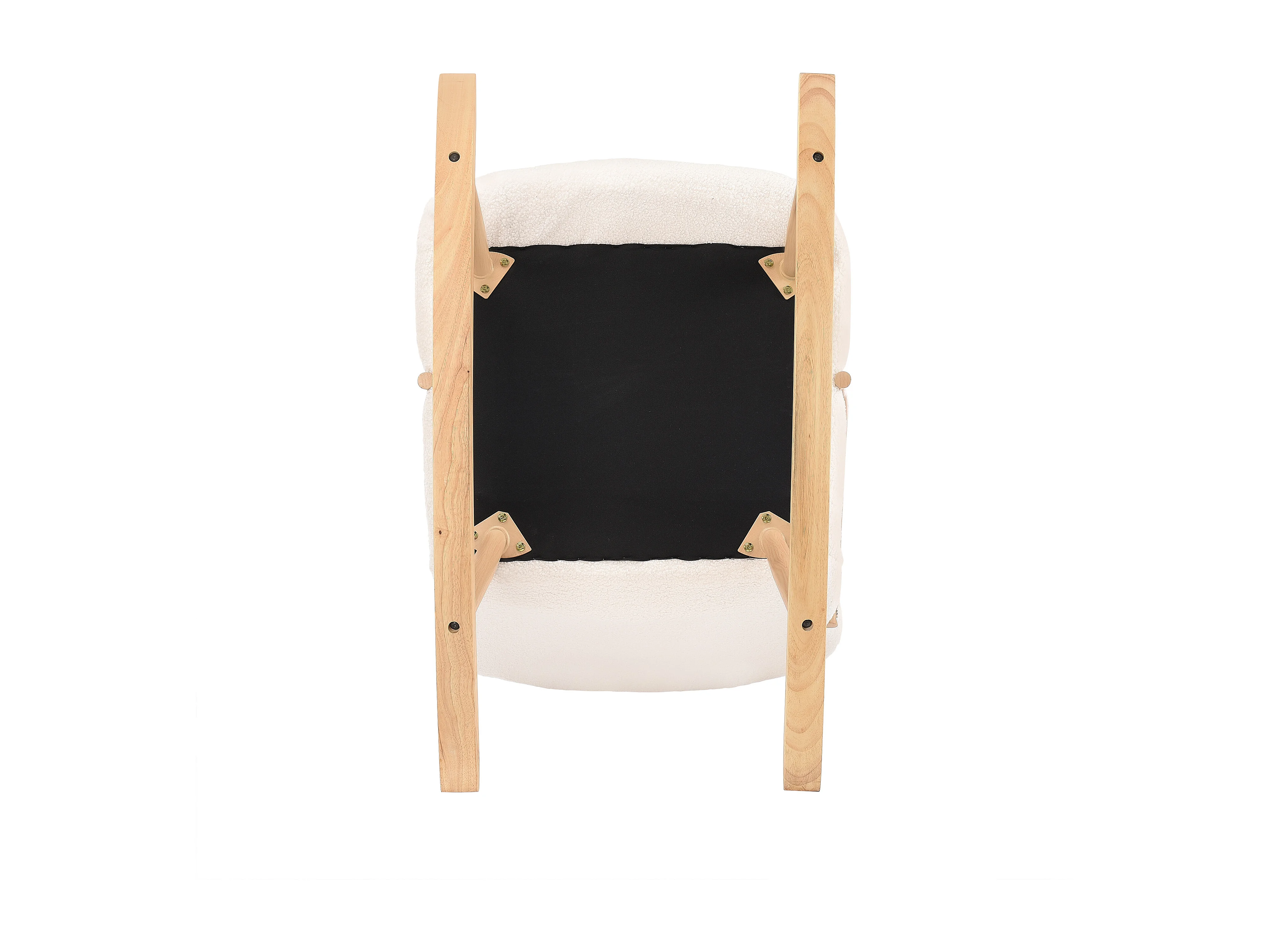 Chaise à bascule avec accoudoirs en bois, structure en acier et pieds en hêtre, Laine d'agneau blanc