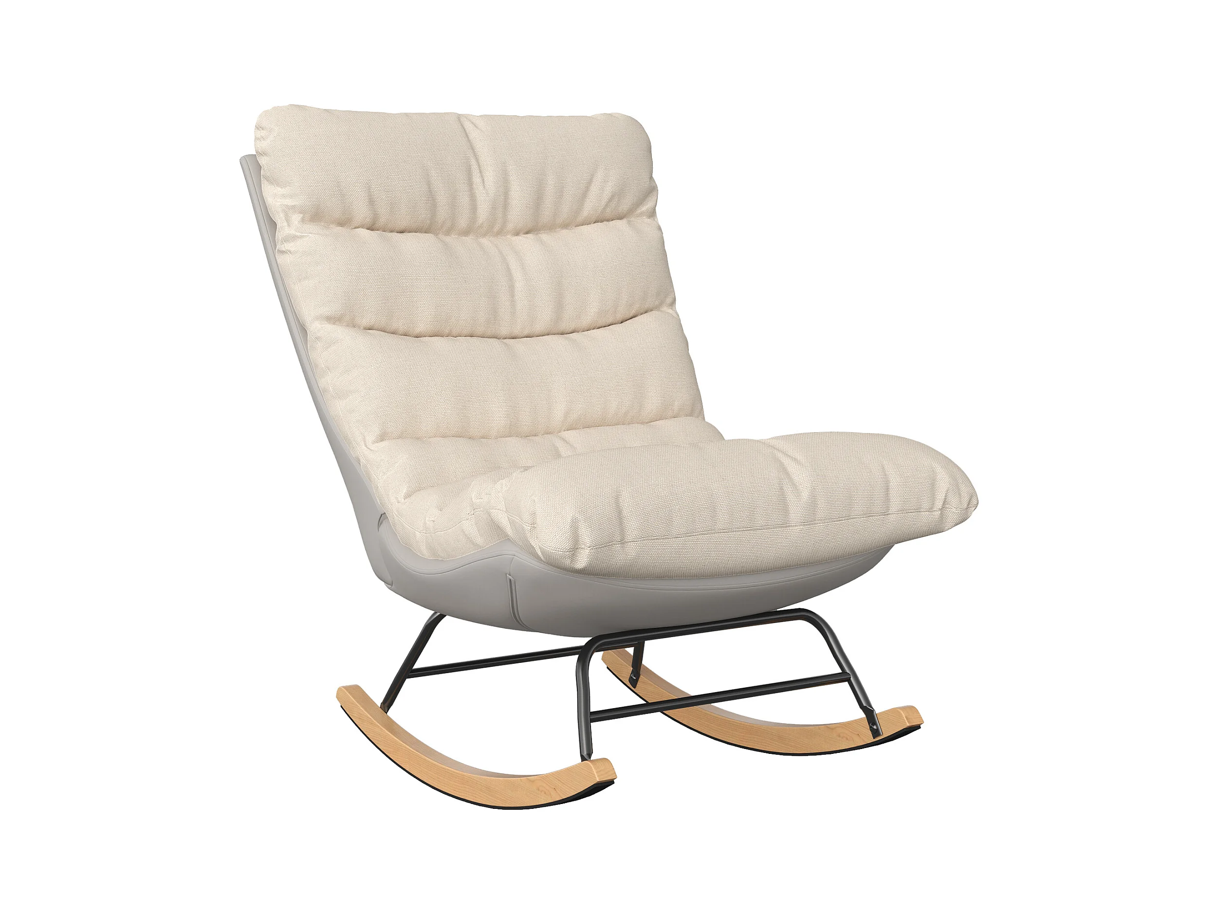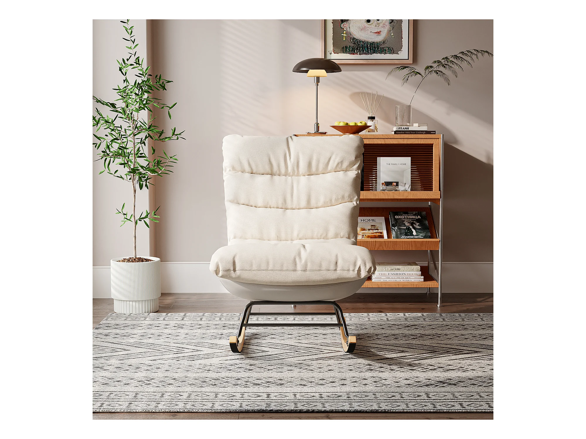 Fauteuil à Bascule - Pieds en Bois - lin et tissu technique - pour Salon,Chambre - beige