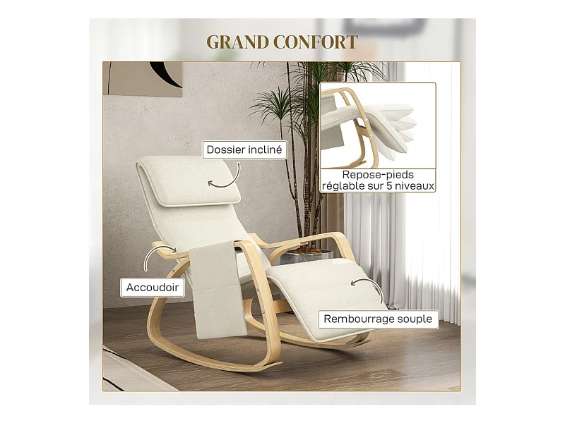 Fauteuil à bascule relax repose-pied réglable bois tissu