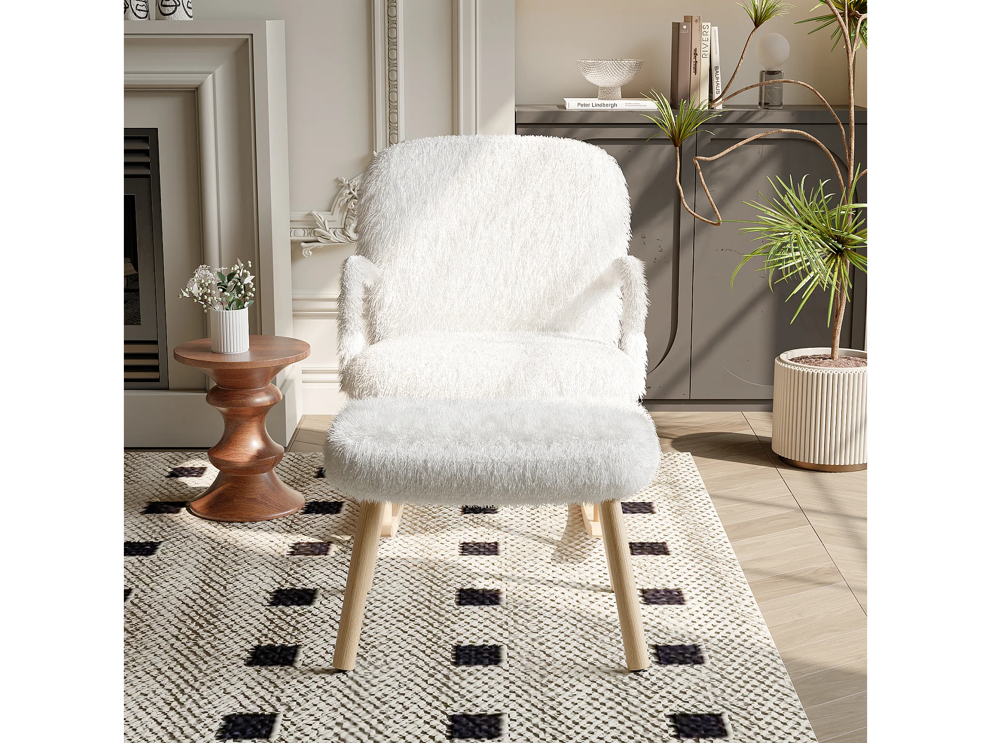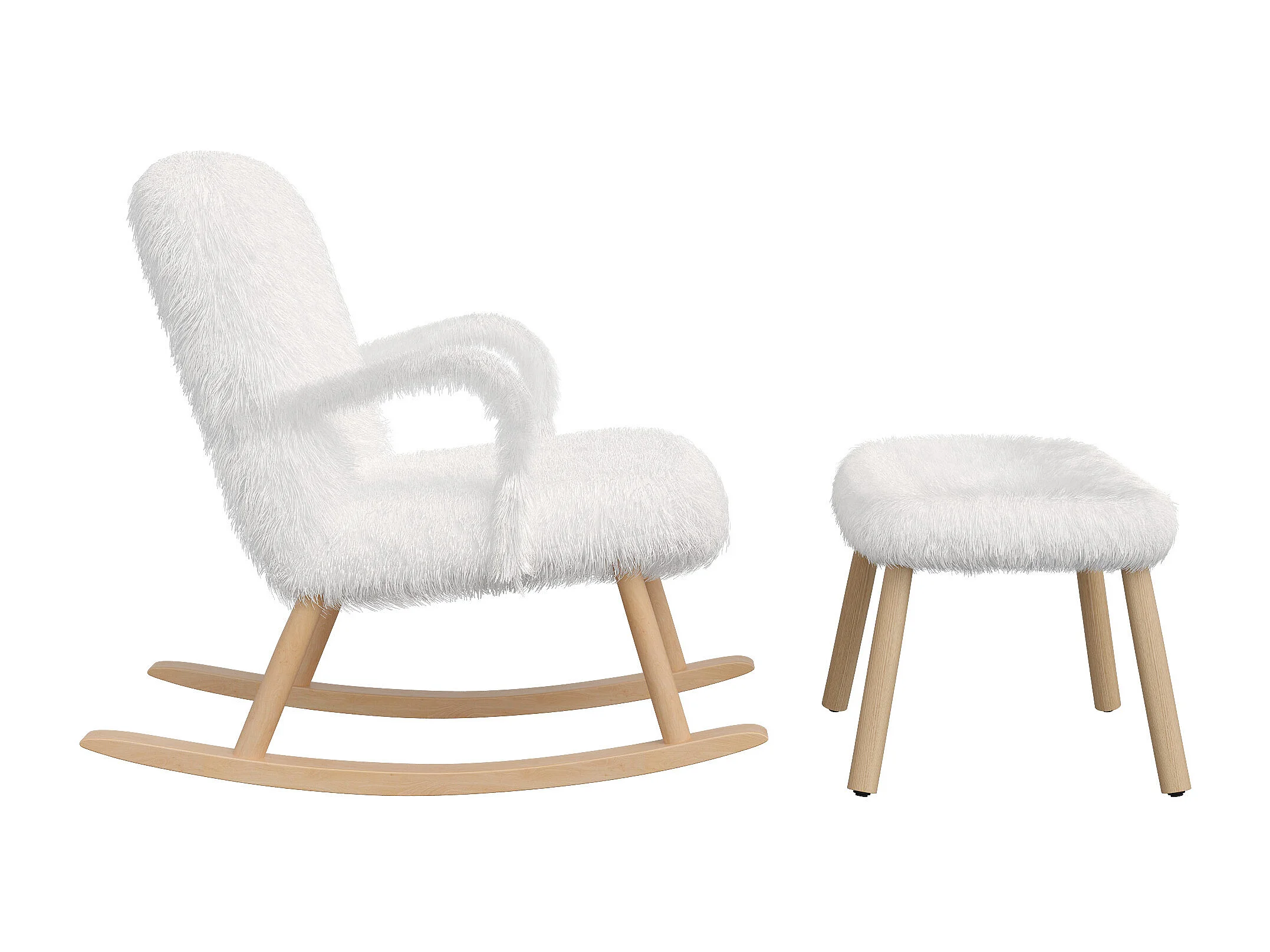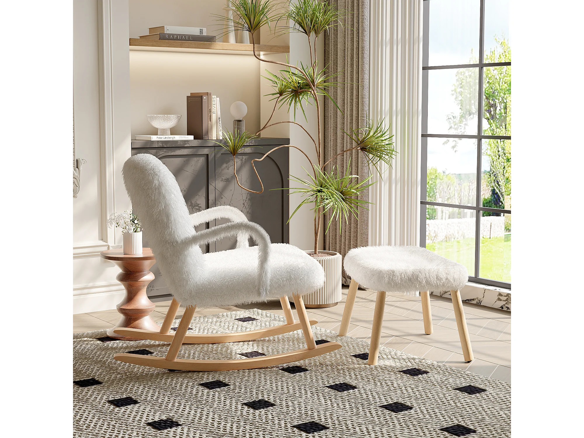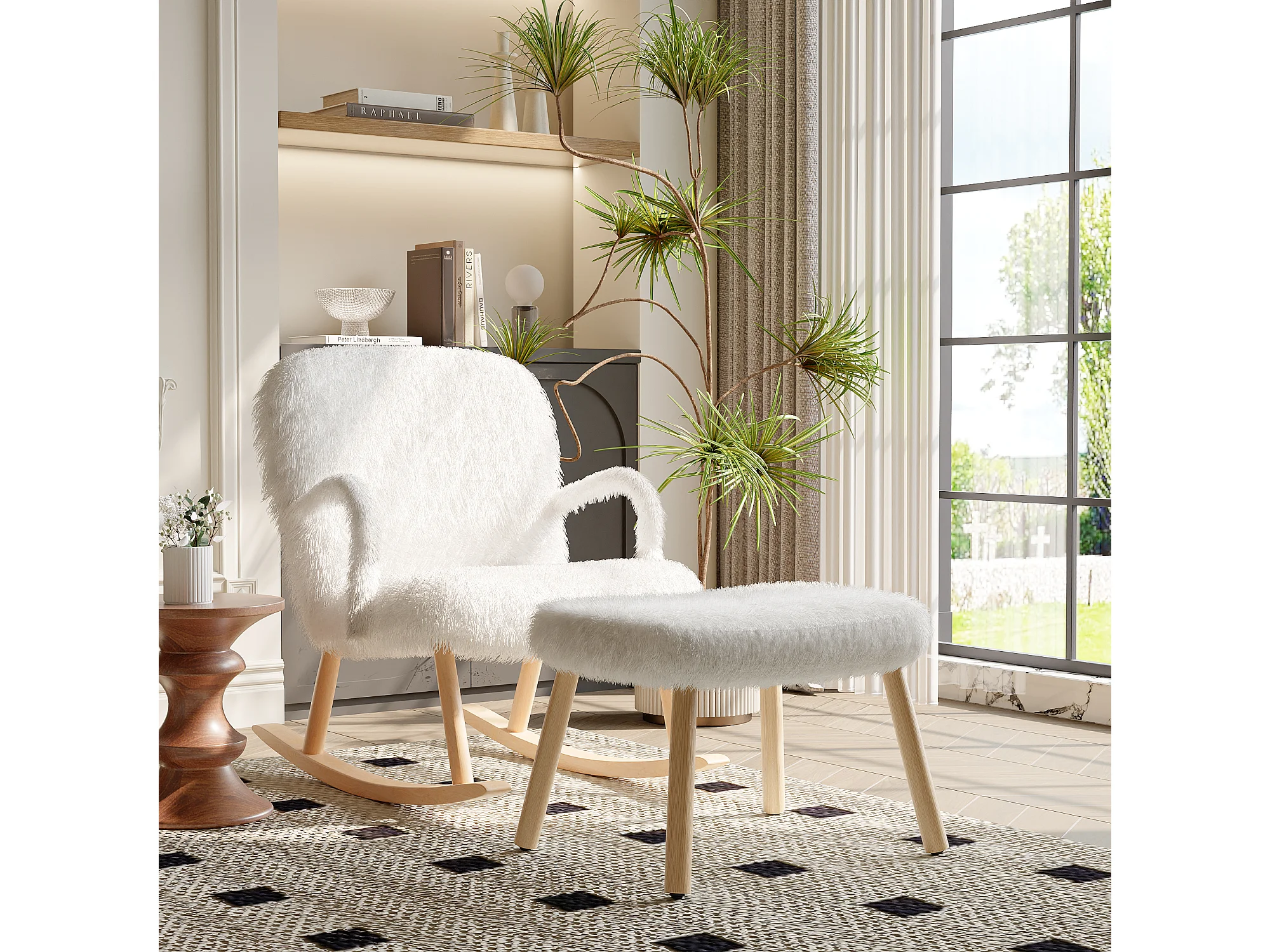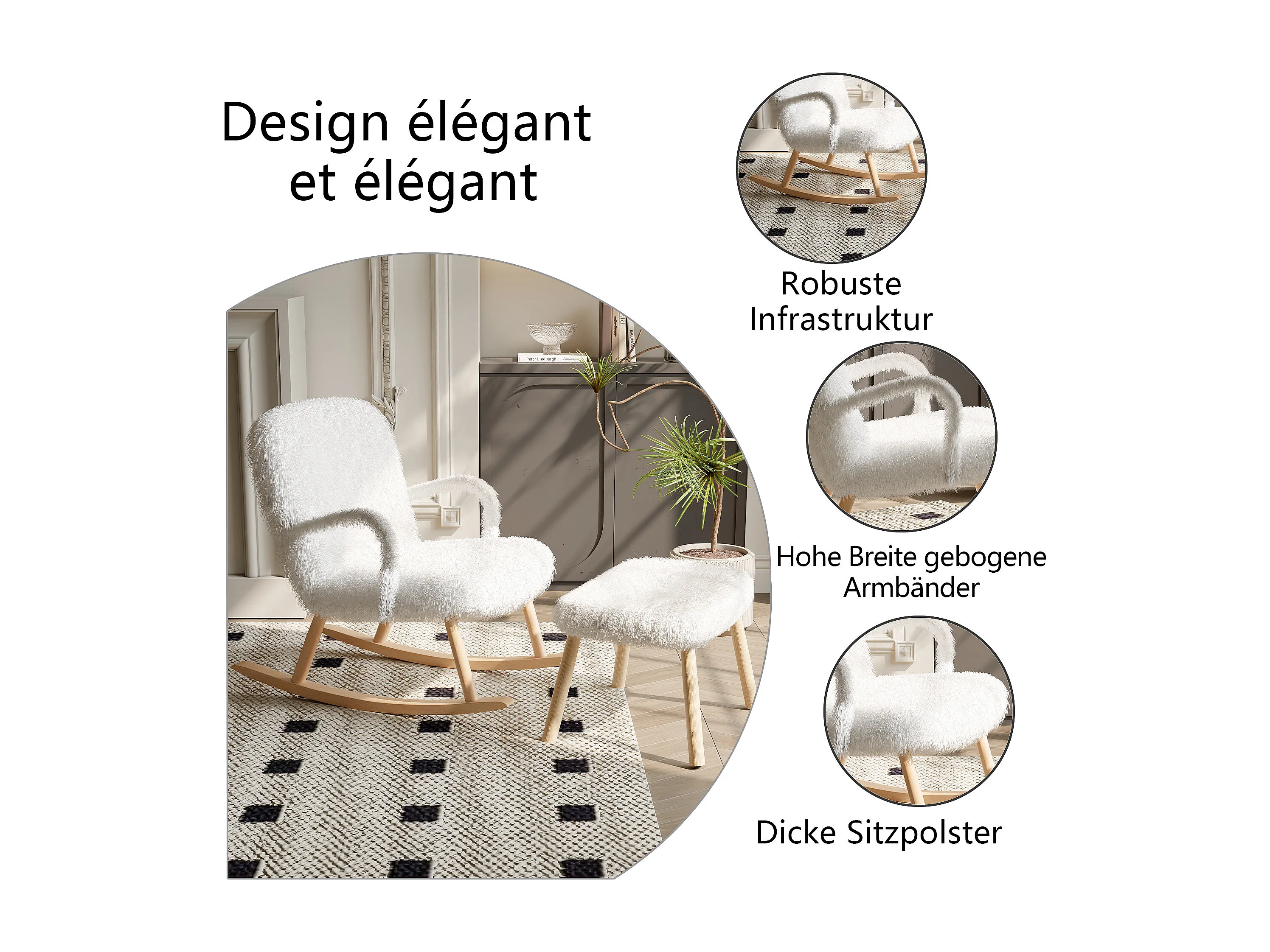 Fauteuil à bascule,Salon de relaxation,Chaise longue avec repose-pieds,pour le salon, la chambre à coucher,Laine d’agneau,blanc