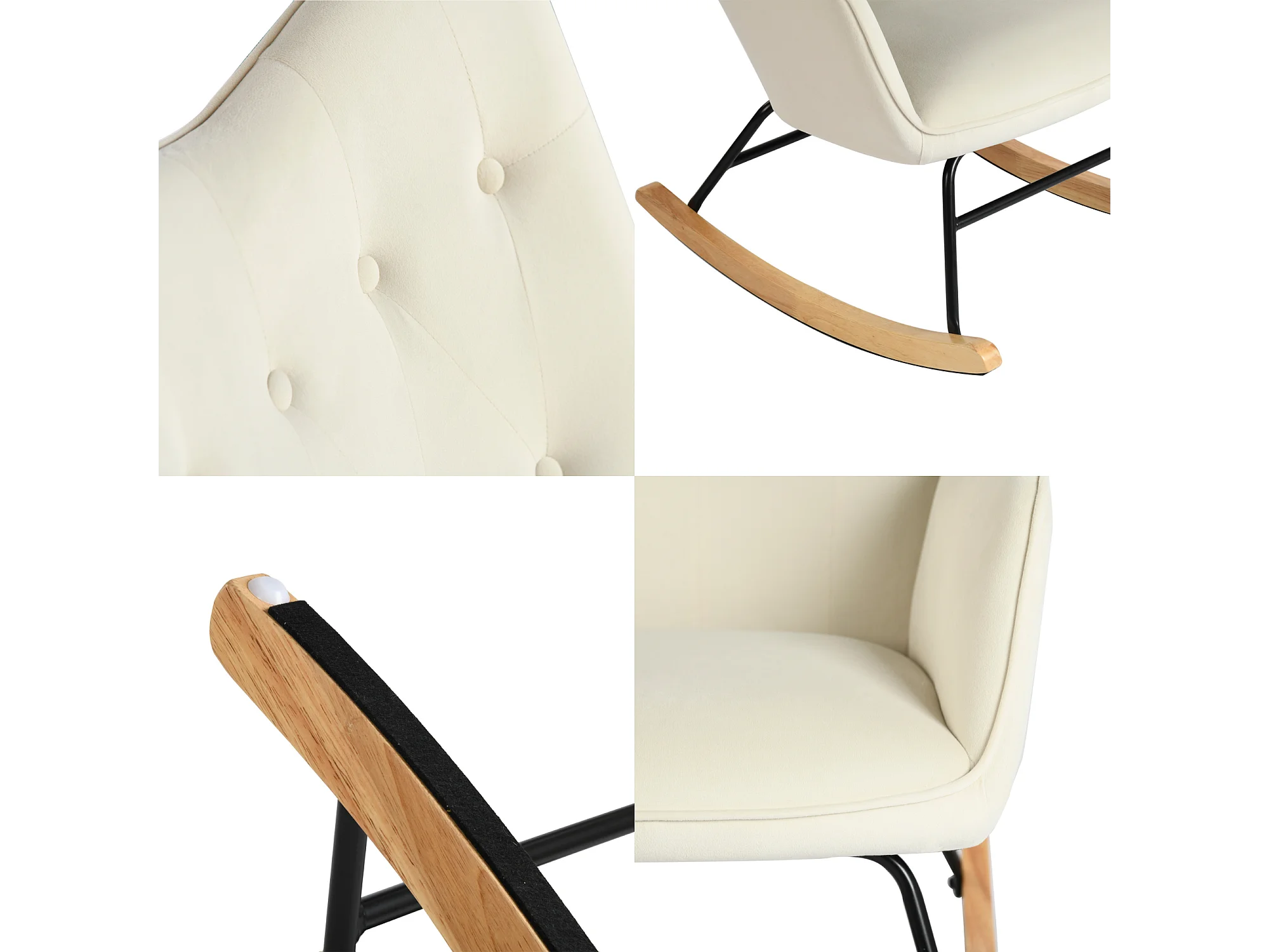URBAN MEUBLE Fauteuil à bascule Scandinave velours beige Pieds en bois de hêtre