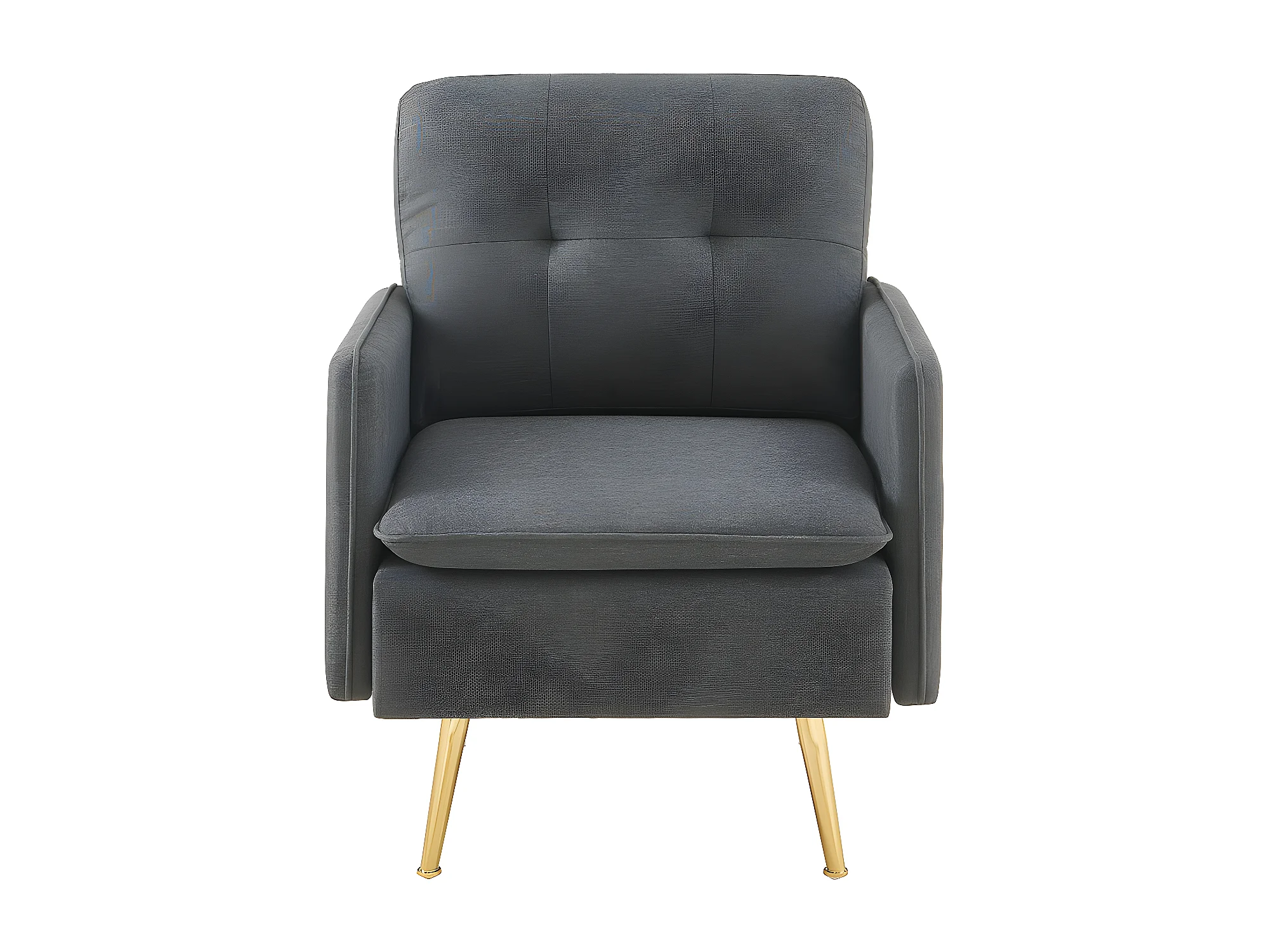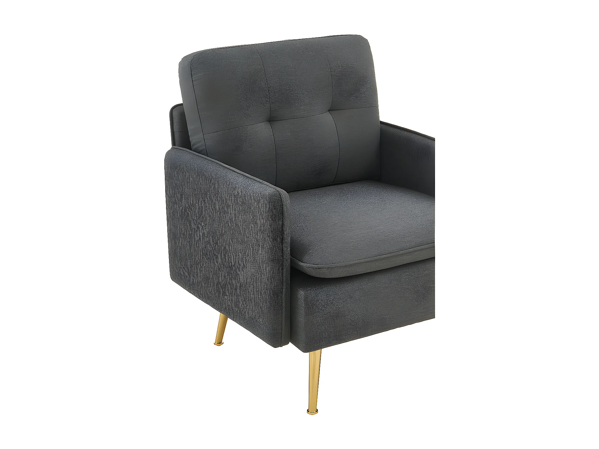 Fauteuil ADAM tissu anthracite avec piètement en métal doré