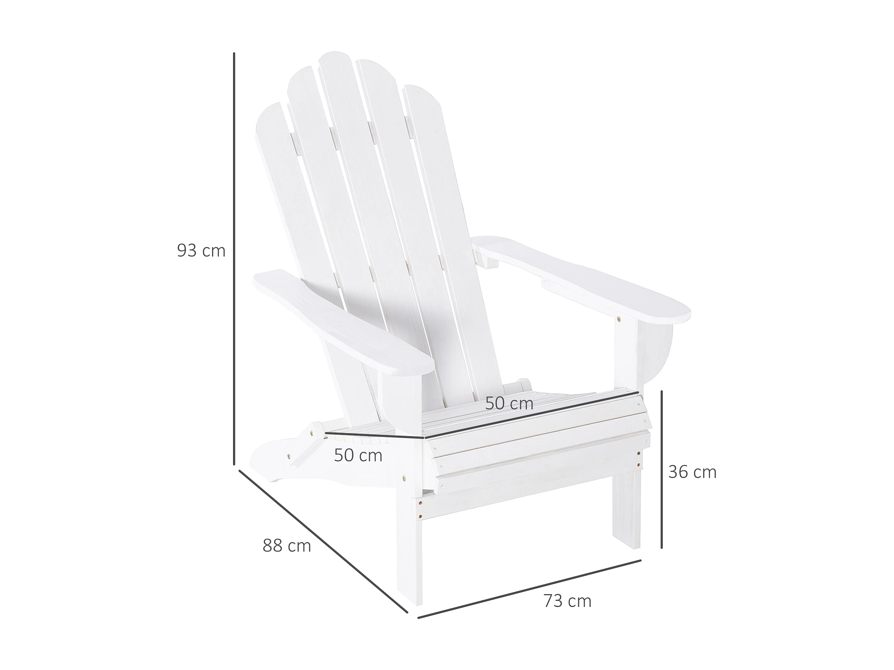 Fauteuil Adirondack pliable de jardin grand confort dossier incliné assise profonde bois de sapin traité peint blanc