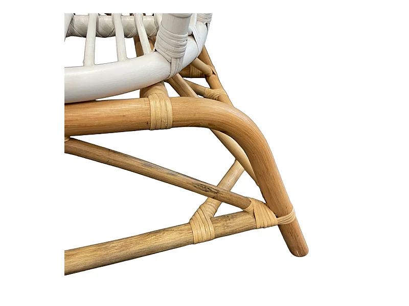 Fauteuil arrondi en rotin tressé blanc et couleur naturelle – VIOLA