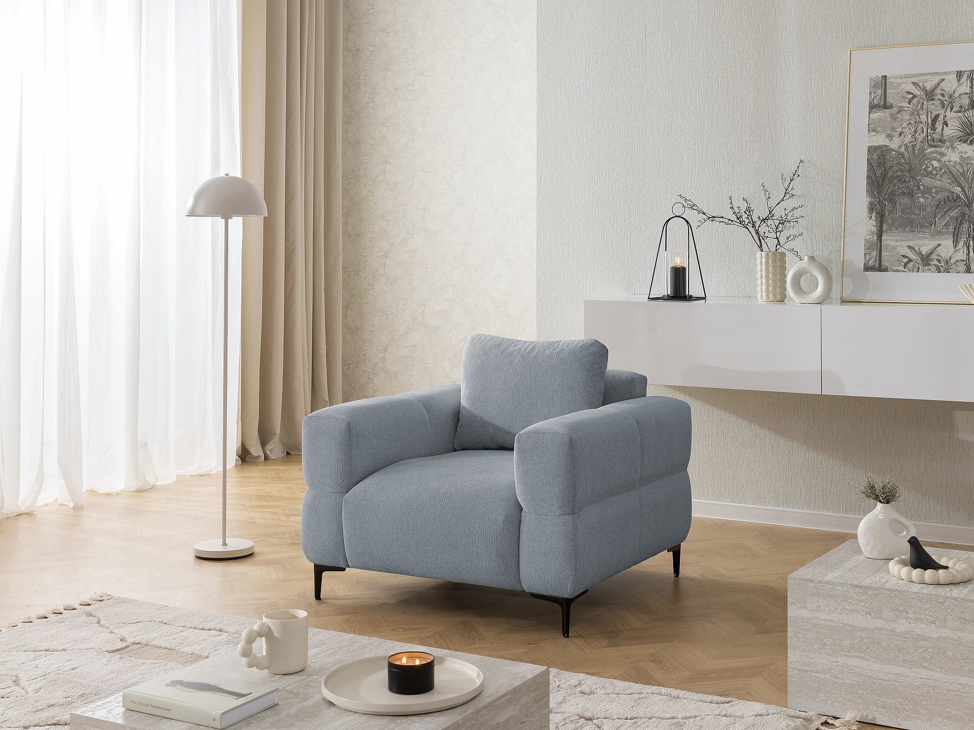 Fauteuil au design bubble en tissu texturé doux de couleur gris, offrant un grand confort d’assise CARDEA