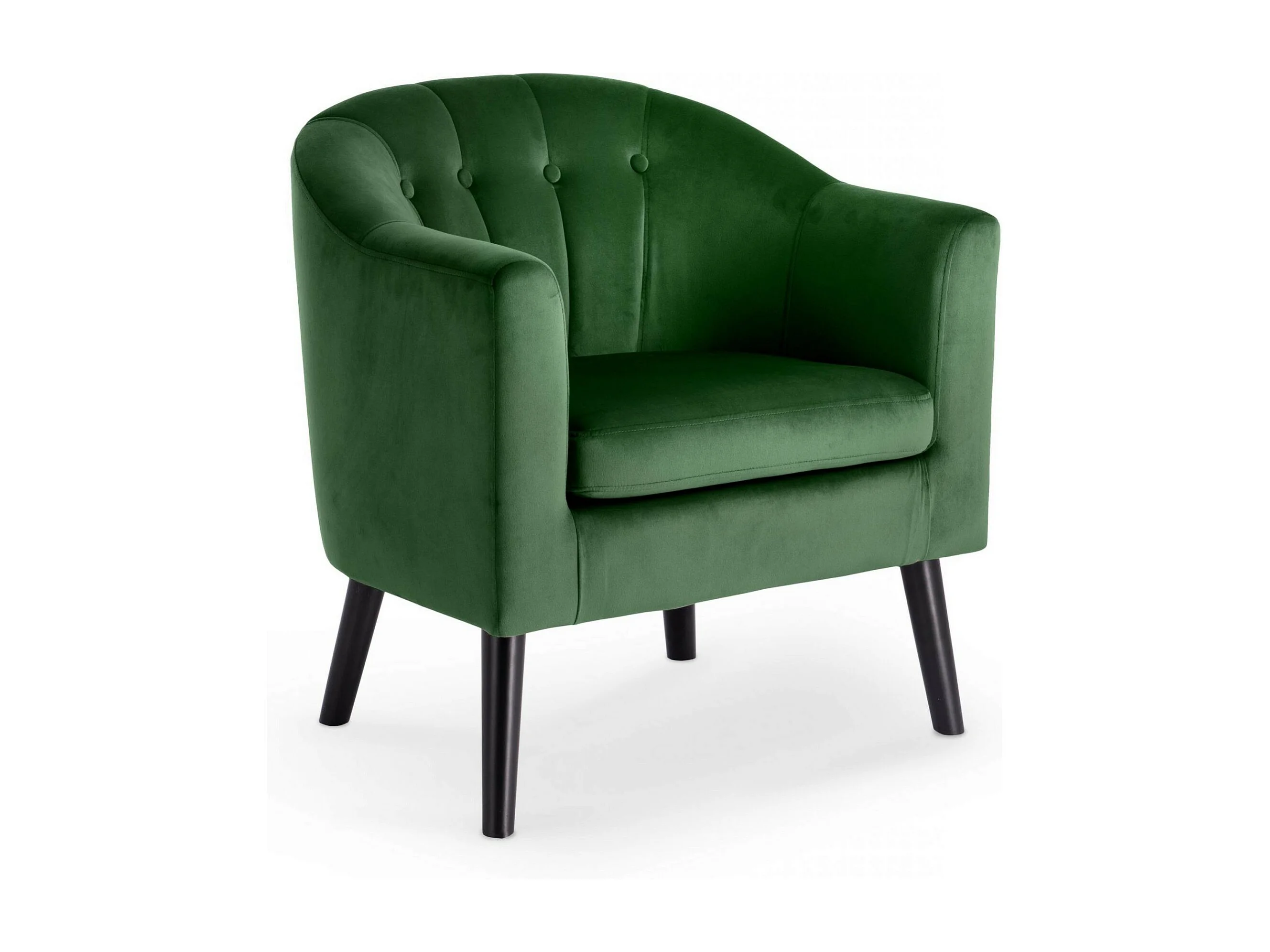 Fauteuil avec dossier arrondi à boutons en tissu vert foncé avec pieds en bois peints en noir RENO