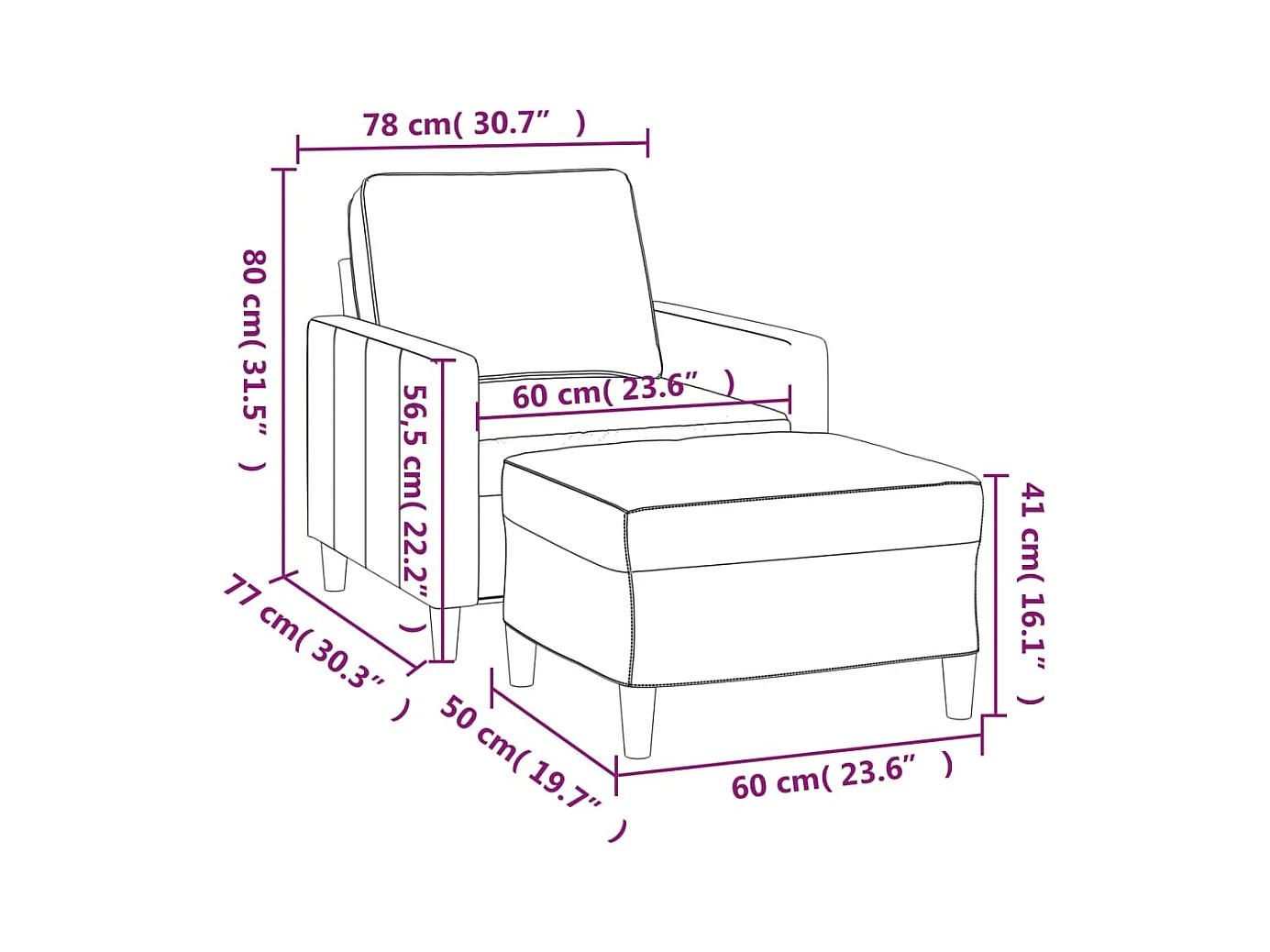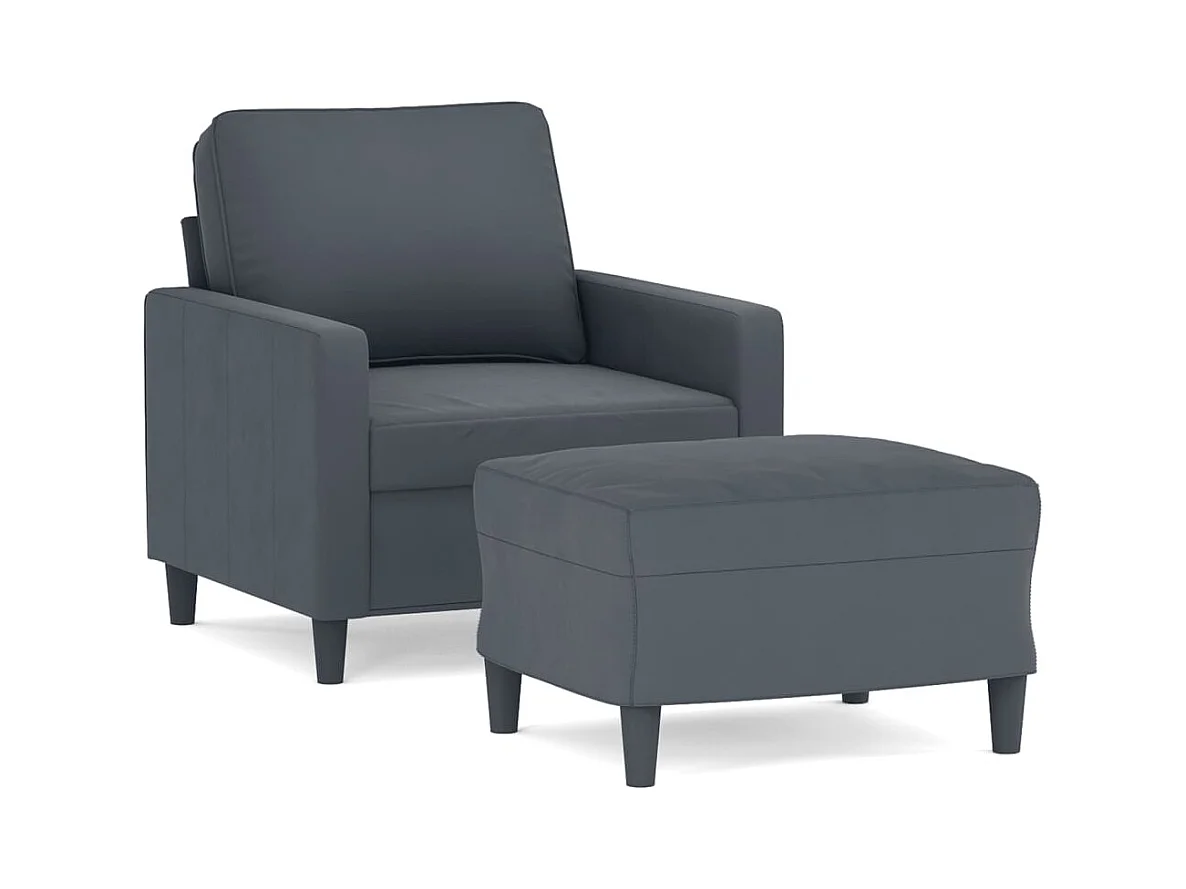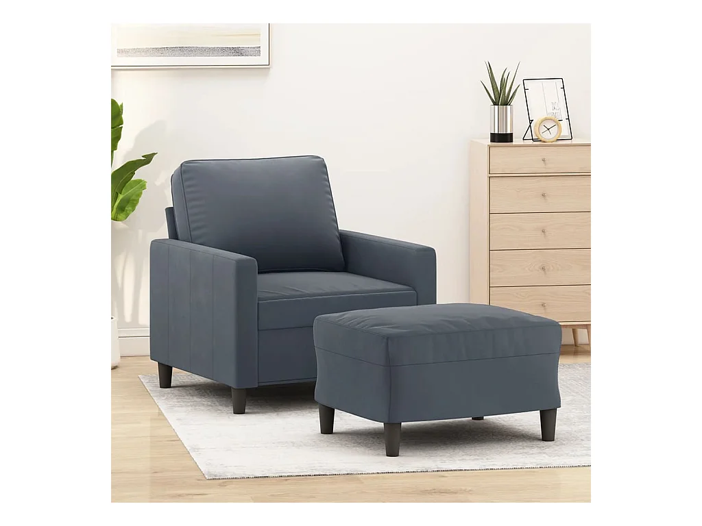 Fauteuil avec repose-pied Gris foncé 60 cm Velours