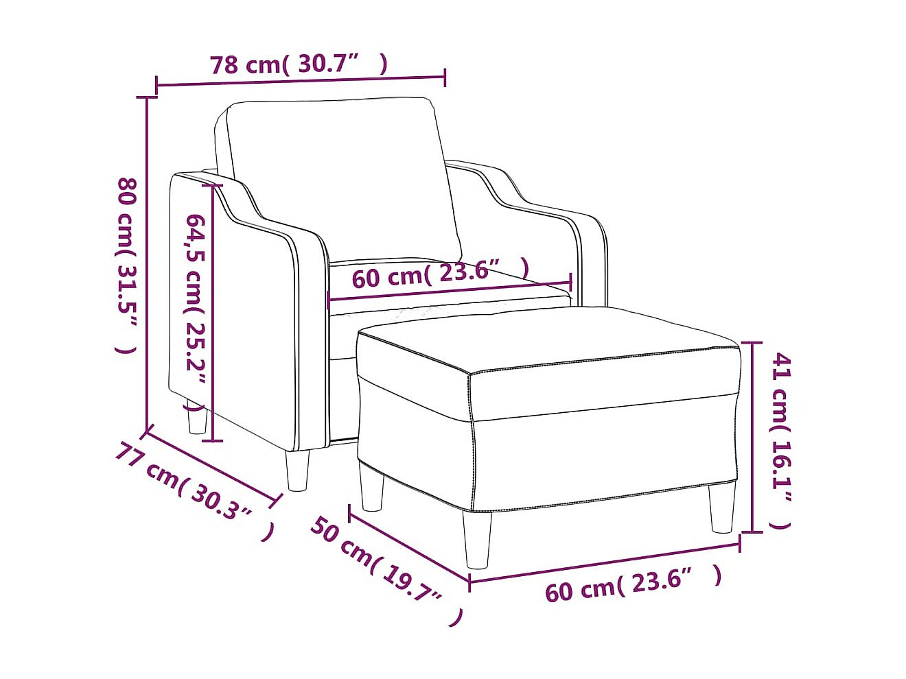 Fauteuil avec repose-pied Marron 60 cm Tissu