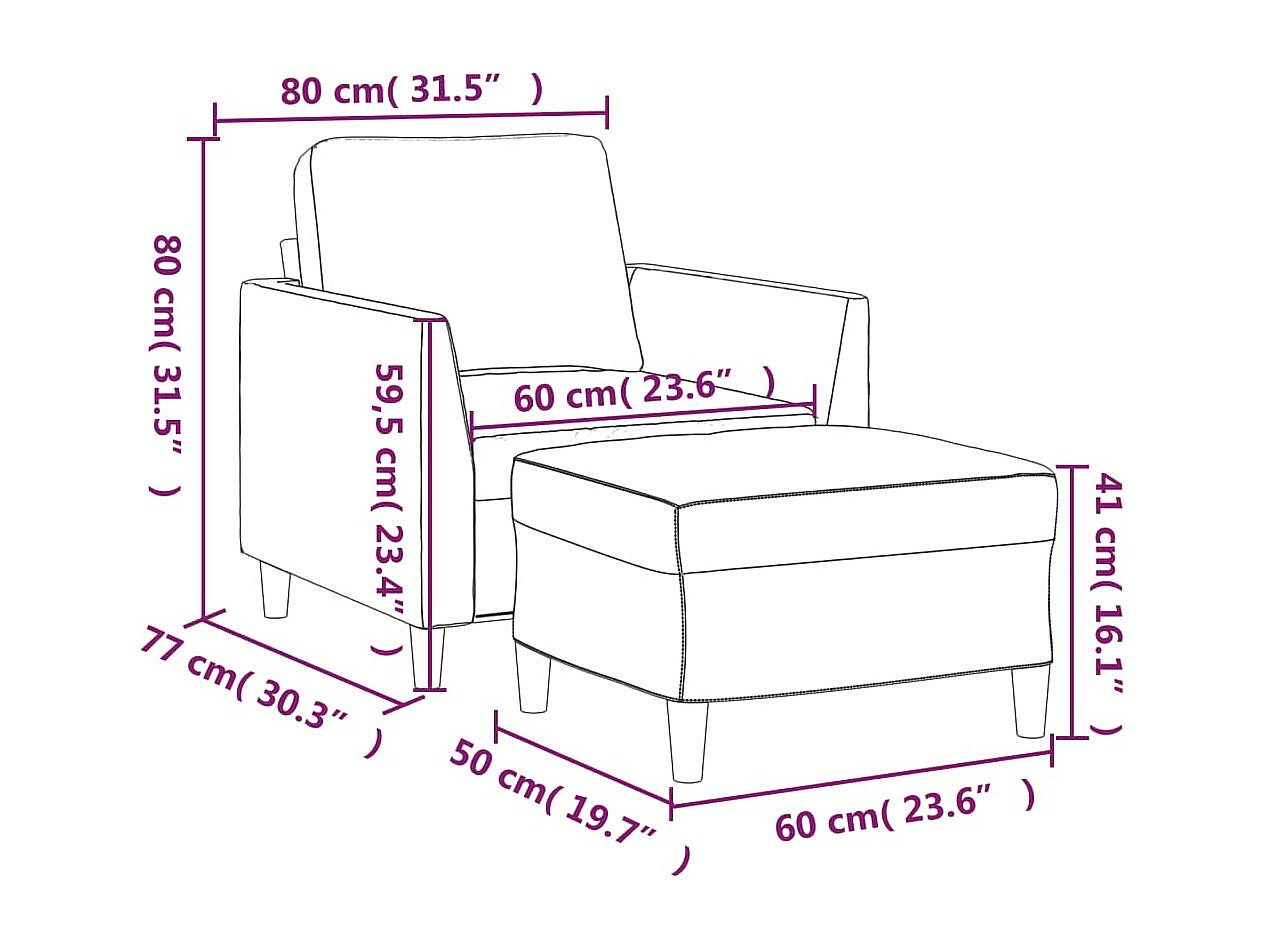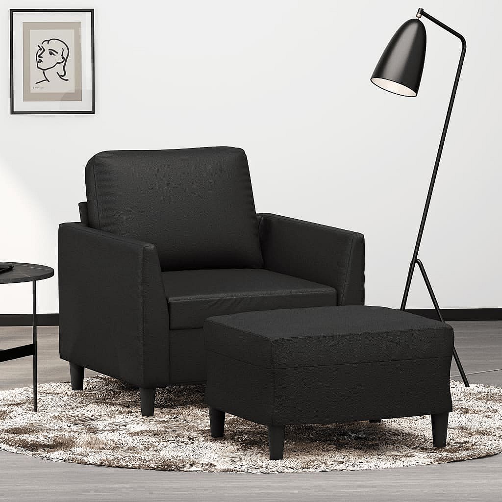 Fauteuil avec repose-pied Noir 60 cm Similicuir