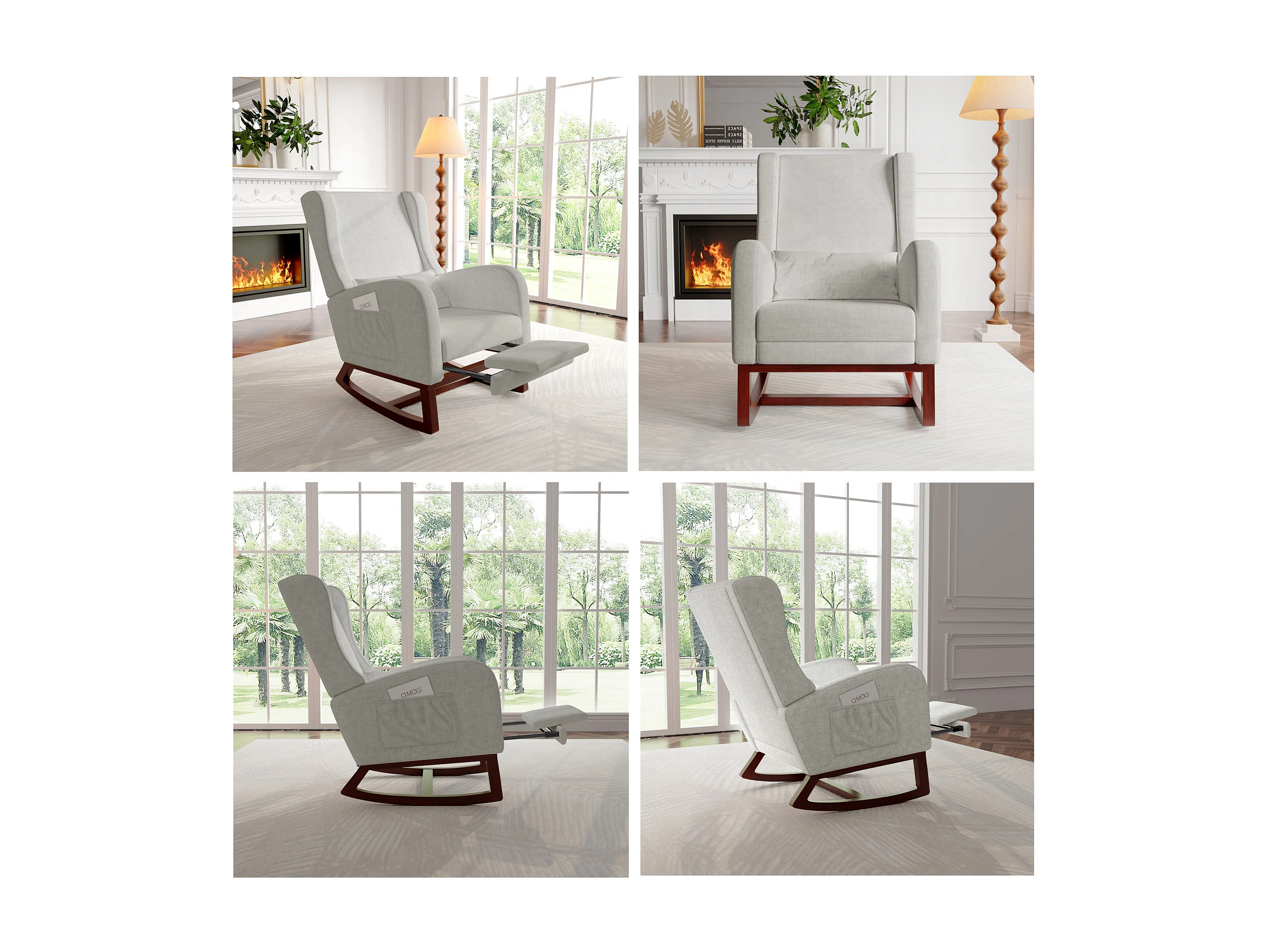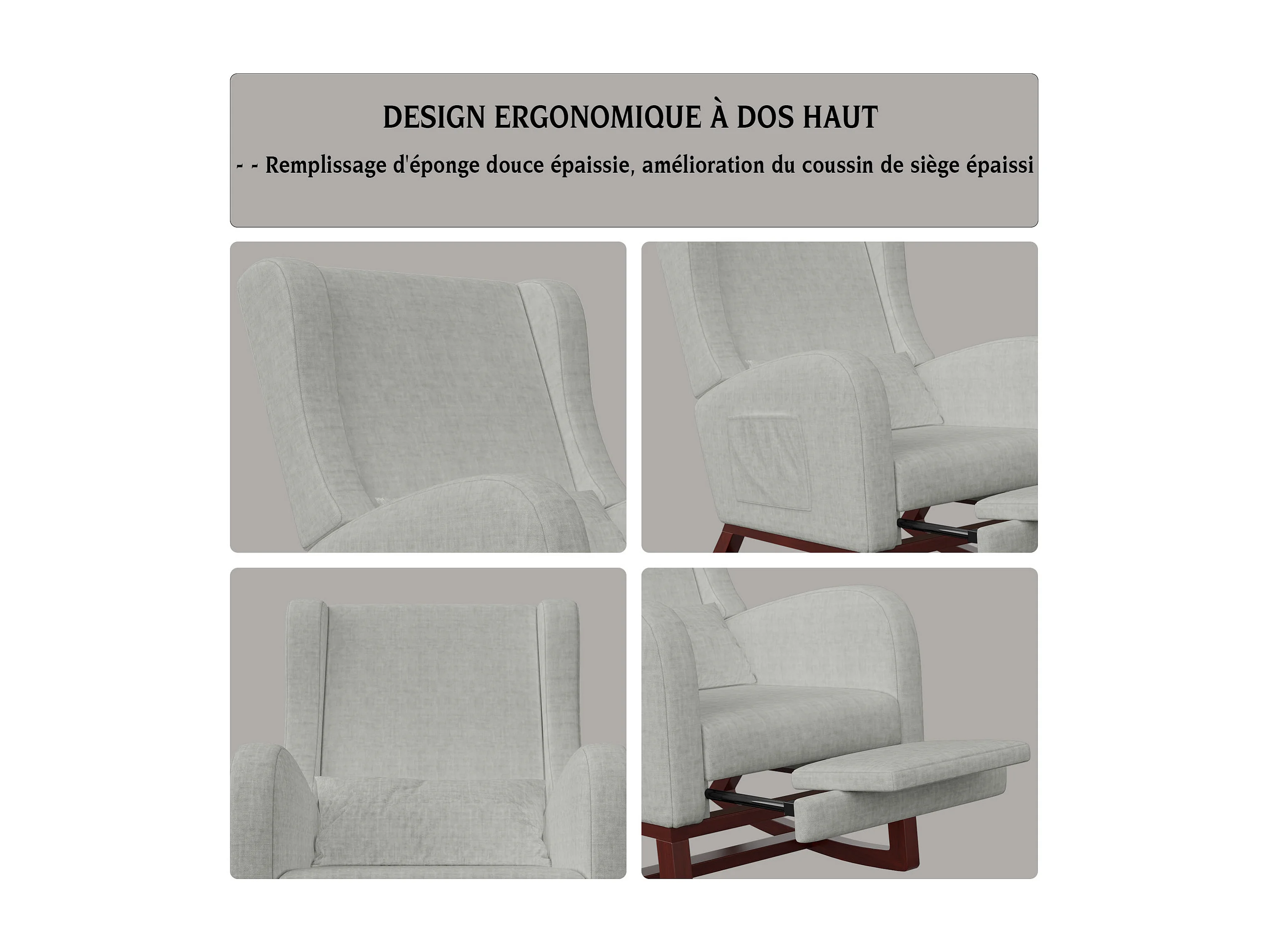 Fauteuil - avec repose-pieds - Fauteuil balançant avec coussin lombaire et poches latérales - gris - Tissu velours glacé