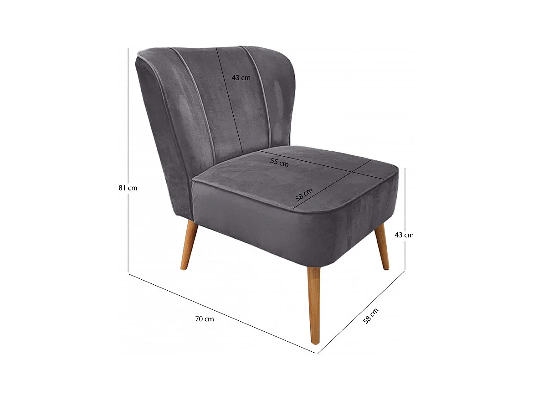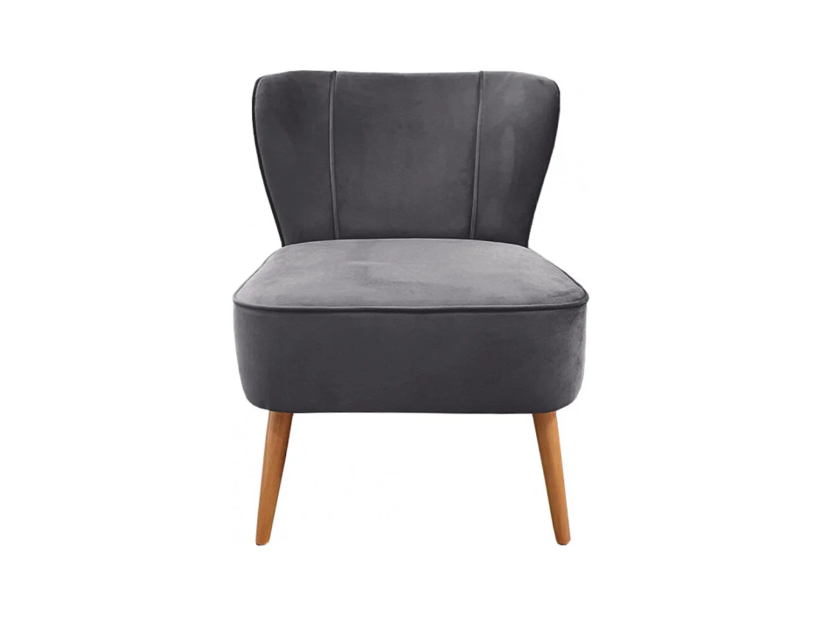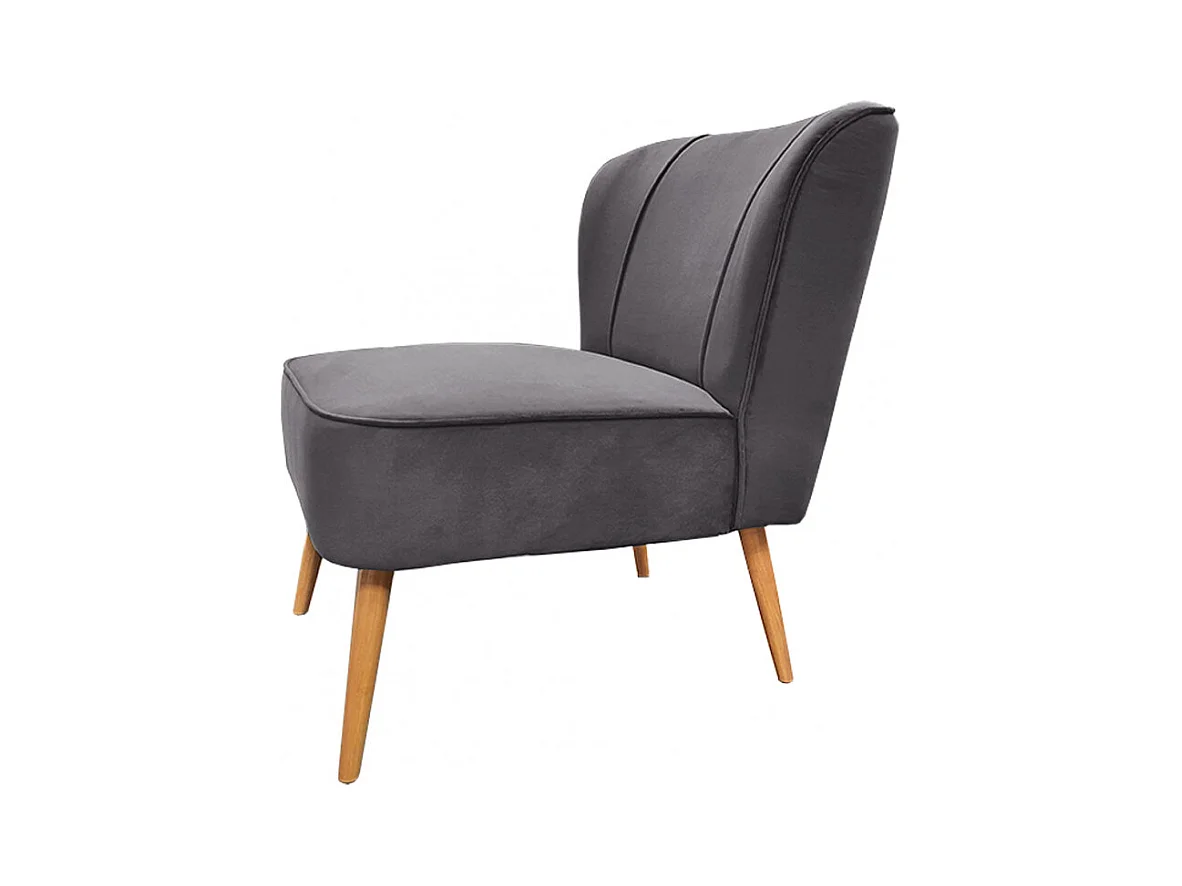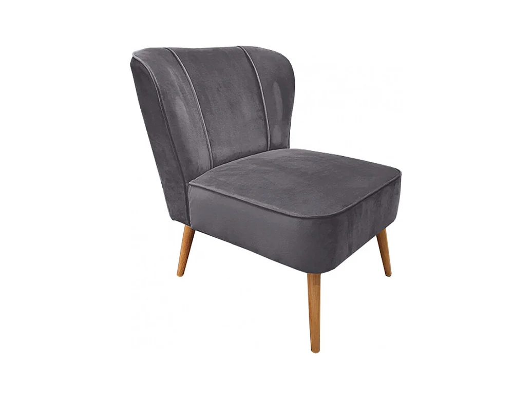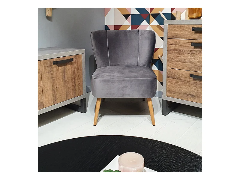 Petit fauteuil bas en velours gris style crapaud - KARLA
