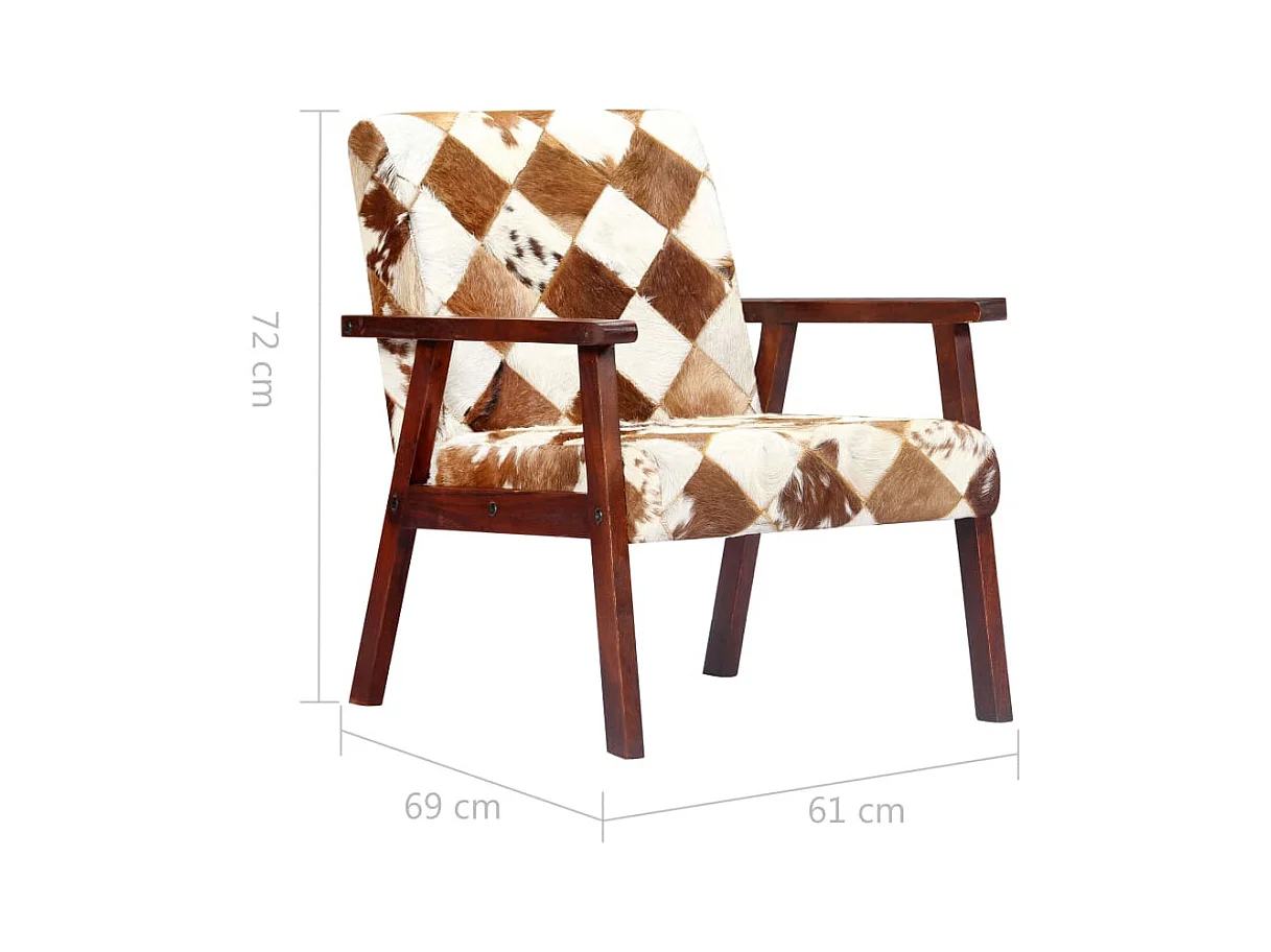 Fauteuil Blanc et marron Cuir véritable de chèvre