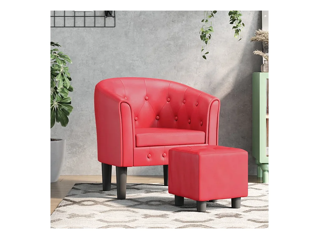 Fauteuil cabriolet avec repose-pied rouge similicuir