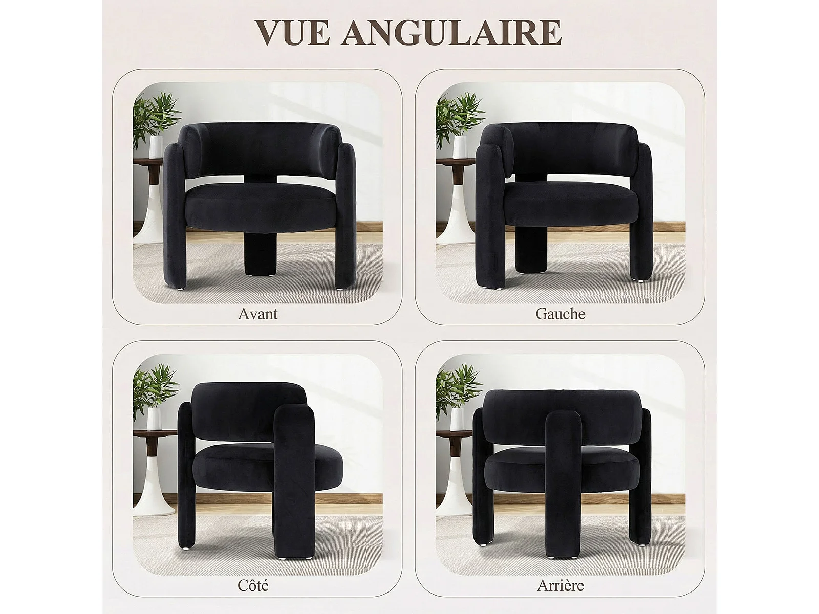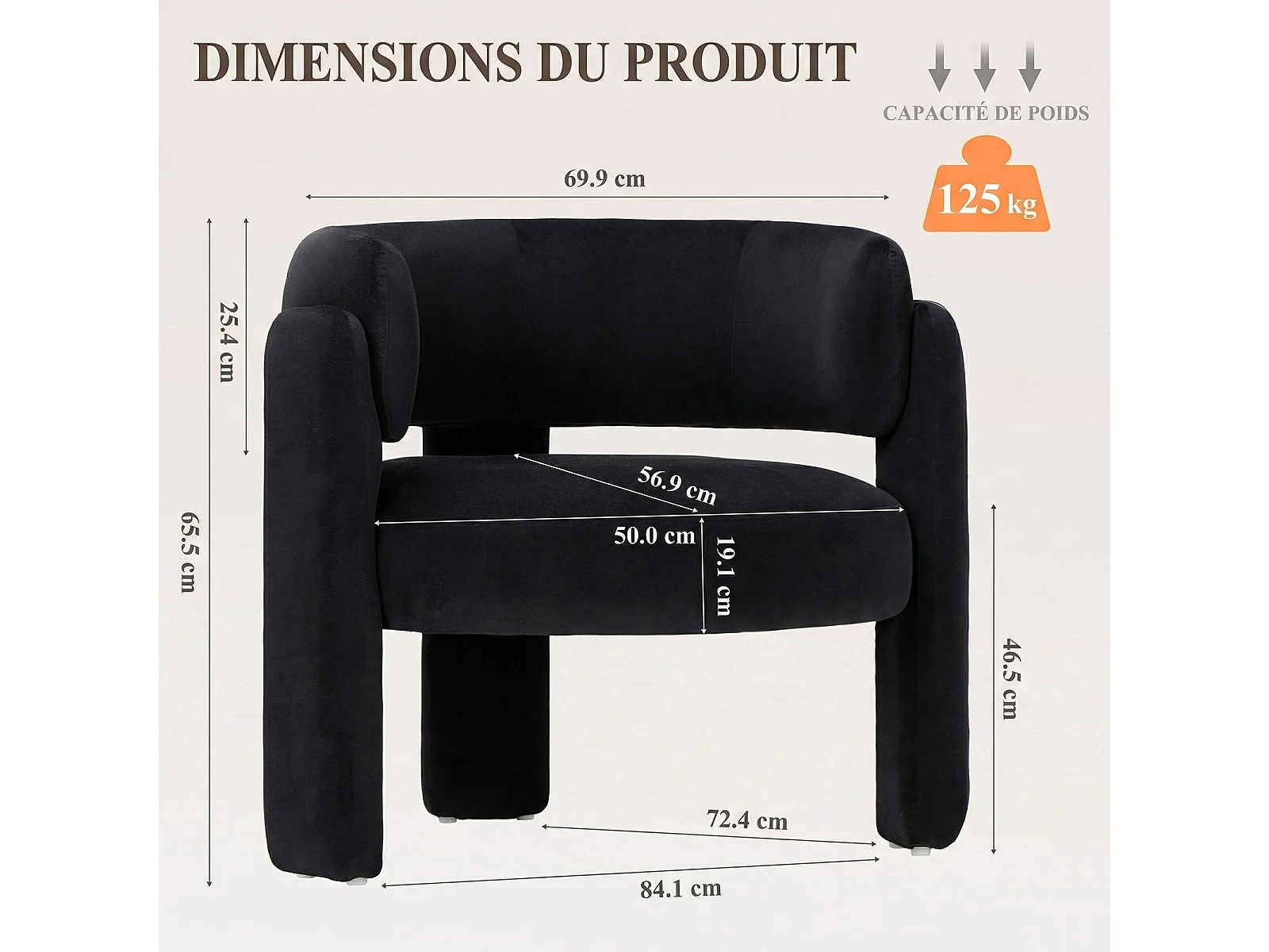 Fauteuil baril moderne en bois solide, mousse haute densité, tissu hypoallergénique – Noir